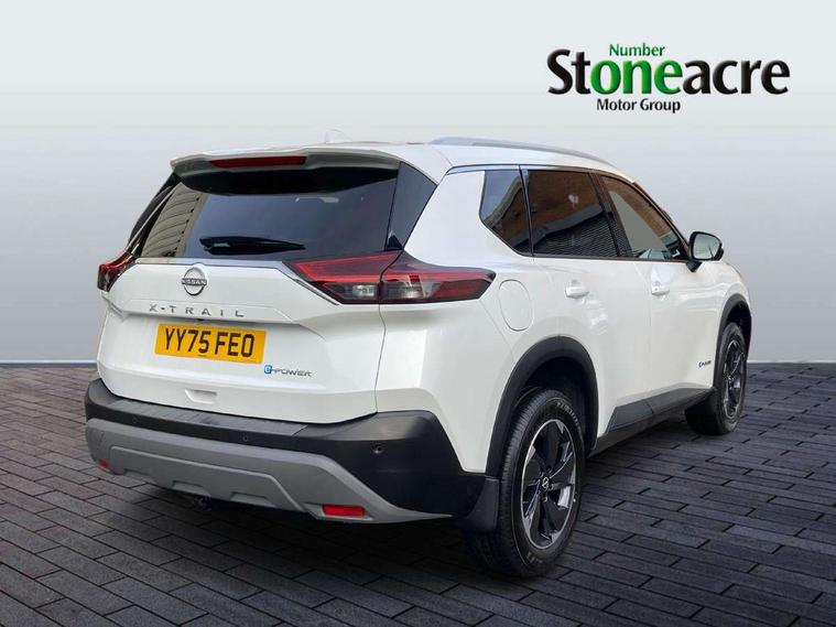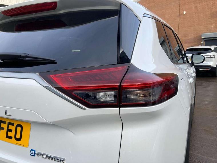Android auto wireless, Blind spot warning, Drive assist custom mode, Drive modes (sport, normal, eco), Driver drowsiness and attention warning, e-Pedal step, Electric speed sensitive power steering, Emergency and breakdown call, Event data recorder, Front and rear parking sensors, Full Digital 12.3" TFT Digital Combimeter, Google maps services - search, weather, 3D maps and Google street view, Hands free power tailgate, Idle stop/start system, Intelligent around view monitor, Intelligent Cruise control (ICC), Intelligent driver alert system, Intelligent forward collision warning, Intelligent lane departure warning, Intelligent lane intervention, Intelligent lane keep assist, Maximum speed limiter, Moving object detection, Nissan connect 12.3 inch touchscreen infotainment system, Nissan connect nav with TomTom traffic, Propilot assist with Navi-Link, Push button starter, Rear cross traffic alert, Rear view camera, Remote control services - door locks, lights, horn and car locator, Reversing detection, Telematics - notifications and connectivity services, Traffic jam pilot, Traffic sign recognition with legal speed adjustment, Trip computer, Virtual personal assistant and firmware over the air capability, Wireless apple carplay, Wireless charging pad, 6 speakers, AM/FM audio system with DAB, Bluetooth audio streaming, Front USB connections (Type-A and Type-C), Rear USB charging only ports 2 Type-C, Auto dimming rear view mirror, Auto rear wiper when reversing, Body colour mirror caps, Body coloured door handles, Bodyside mouldings, Chrome side window finisher, e-POWER badging, Electric auto folding door mirrors, Electrically adjustable and heated door mirrors, Follow me home headlights, High beam assist, Intelligent auto headlights, LED 3rd brake light, LED daytime running lights, LED Headlights, LED rear lights, One touch front and rear electric windows with remote opening and closing, Partially body coloured bumpers, Rain sensing wipers, Rear reversing light (bulb lighting), Rear roof spoiler, Rear side wing doors, Rear styling plate, Shark fin antenna, Splash free wipers, Three blink turn signal, 12v power socket in dashboard and luggage, 3 bench rear seats in 2nd row, 3 rear headrests, 60/40 split folding rear seat bench, Butteryfly console, Chrome interior door handles, Cloth monoform upholstery, Driver and front passenger sunvisors with illuminated vanity mirrors, Driver seat back pocket, Dual zone automatic climate control with pollen filter, Front centre console and armrest, Front cupholders, Front door with bottle holders, Height adjustable driver's seat, Height adjustable front headrests, Height adjustable passenger seat, Leather shift knob, Leather steering wheel, Luggage board system, Luggage space lighting, Multifunction steering wheel, Passenger seat back pocket, Rear armrest with 2 cupholders, Rear door bottle holders, Single front passenger seat, Tilt/telescopic adjustable steering wheel, Two rear isofix child seat anchorage points with top tether, 3x3 point rear seatbelt pretensioners + load limiters, ABS with EBD and brake assist, Active brake limited slip, Auto hold function, Child locks on rear doors, Curtain and front side, far side airbags, Driver and passenger airbags, Driver, passenger and 2nd row rear seat belt reminder, Electronic parking brake, Front seatbelt pretensioners + load limiters, Height adjustable front seatbelts, Hill start assist, Intelligent blind spot intervention, Intelligent front emergency braking with pedestrian, cyclist recognition and junction assist, Intelligent rear automatic braking, Tyre pressure monitoring system, Vehicle dynamic control, Approach unlock and walk away lock, Engine immobiliser, Intelligent Key, Remote central door locking with deadlocking, Thatcham Cat.1 alarm, 18" Diamond cut alloy wheels, Tyre puncture repair kit,