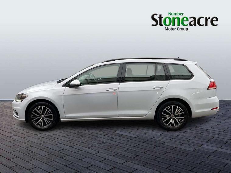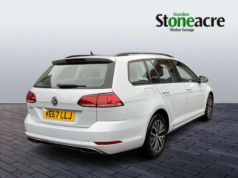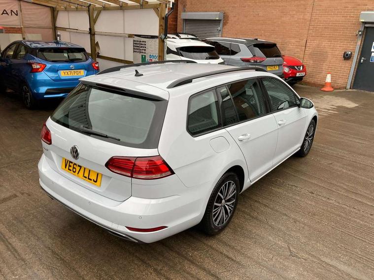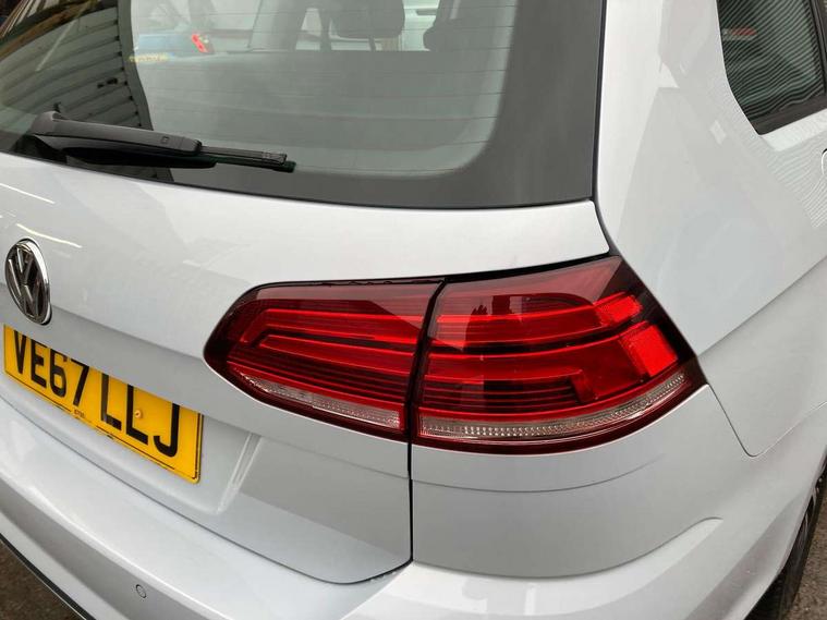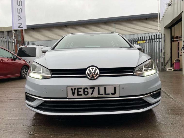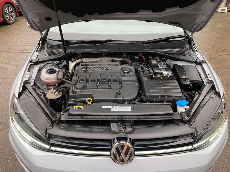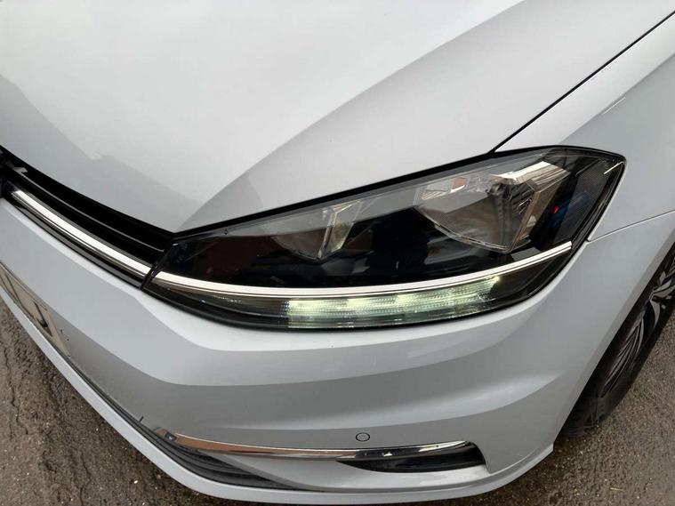 'Lights On' Reminder warning buzzer, 8" touch screen, Adaptive Cruise Control with pedestrian detection and speed limiter, Bluetooth hands free telephone connection, Brake pad wear indicator warning light, Driver alert system, Driver profile selection, Exterior temperature gauge, Instrument cluster in white, Multifunction computer, PAS - speed related, Rev counter, Trip and service interval display, Ultrasonic front and rear optical and audible parking sensors, Warning buzzer and light for front seatbelts unfastened, Diesel particulate filter, XDS electronic differential lock, CD/MP3/WMA, USB and SD card reader, aux-in, Composition media system, DAB Digital radio, Auto dimming rear view mirror, Automatic coming/leaving home lighting function, Automatic headlights, Black front air intake and radiator grille with chrome insert, Black rear diffuser, Black roof rails, Body colour bumpers, Body colour door handles, Body colour door mirrors, Electric front windows, Electric rear windows, Electrically adjustable and heated door mirrors, Heated rear windscreen, LED daytime running lights, LED rear lights, Rain sensor, Rear roof spoiler, Rear windscreen washer and wiper with interval delay, 12V socket in luggage compartment, 3 rear headrests, 3 spoke steering wheel, 60/40 split folding rear seat, Bag hook in luggage compartment, Boot lashing points, Cooled glovebox, Courtesy light delay, Cover for storage compartment in centre, Dust/pollen filter, Front and rear reading lights, Front centre armrest with storage box and rear air vents, Front passenger seat height adjust, Front seat back storage pockets, Grab handles, Height/reach adjust steering wheel, Illuminated vanity mirrors, Isofix preparation for 2 rear child seats, Load through provision with rear centre armrest and cupholders x2, Luggage compartment cover, Luggage compartment lighting, Multifunction leather steering wheel with leather gear knob/handbrake grip, Overhead storage box, Pearl grey headlining, Storage compartments in doors, Sun visors, Variable boot floor, height adjustable and removable, Mirror pack - Golf, 3 point height adj front seatbelts + pretensioners, 3 rear 3 point seatbelts, ABS, Automatic post collision braking, Child locks on rear doors, Driver/Front Passenger airbags, Driver/Passenger whiplash optimised head restraints, Drivers knee airbag, Electronic parking brake with auto hold, ESP with EDL + ASR, Front and rear curtain airbags, Front assist including city emergency braking, Front passenger airbag deactivation, Front side airbags, Pre crash system, Tyre pressure monitor, Alarm with interior protection, Electronic engine immobiliser, Locking wheel bolts, Remote central locking with 2 remote folding keys, Brushed dark metal decorative inserts in dash and front door panels, Chrome-plated light switch surround, Polar night black centre console, Steel space saver spare wheel,