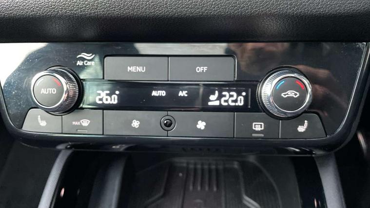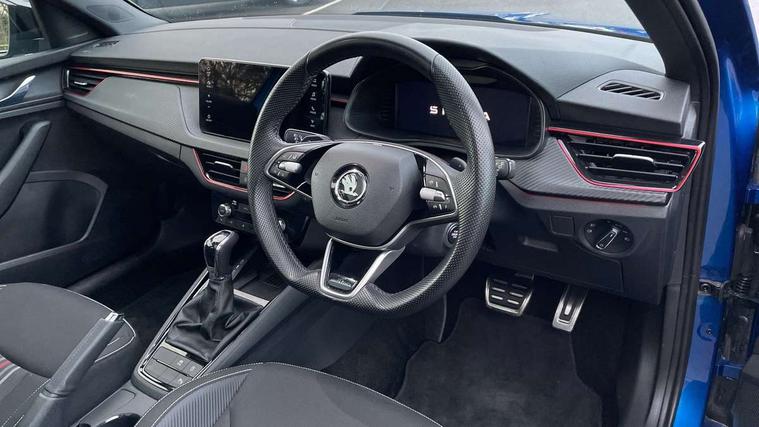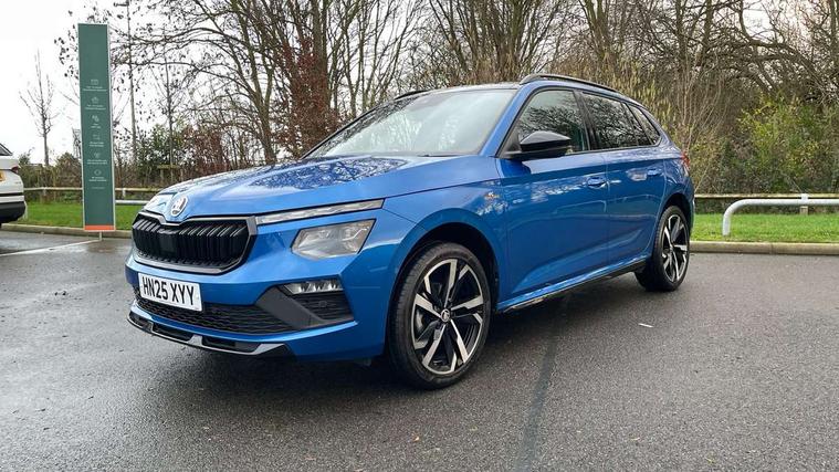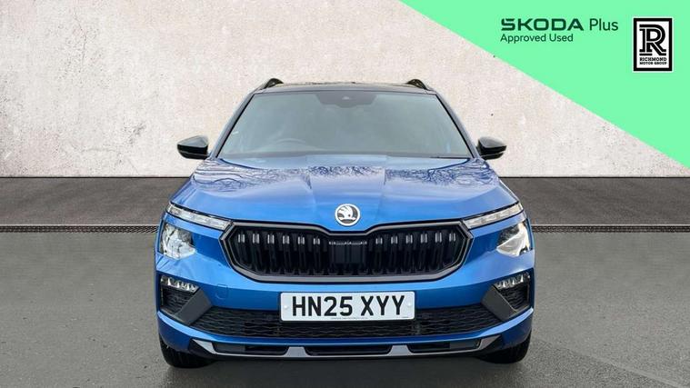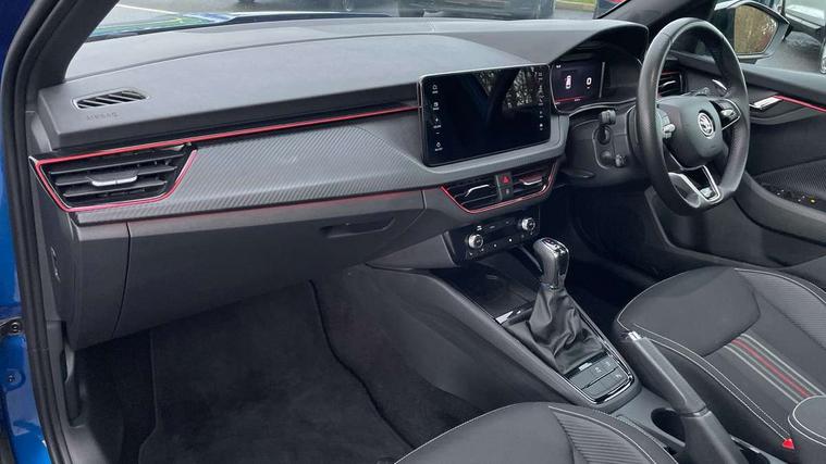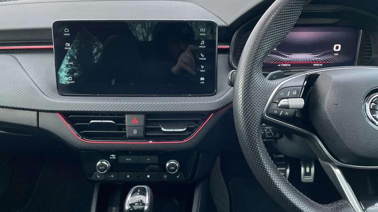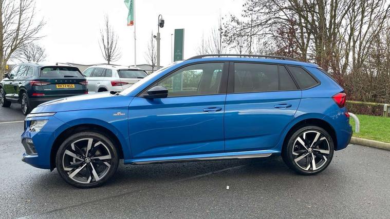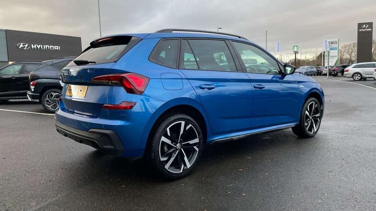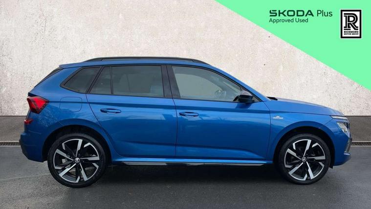 Advanced driver attention and drowsiness monitor, Bluetooth system, E-call, Front assist system, PAS, Rear parking sensors, Rear view camera, Service indicator, Speed limiter, Traffic sign recognition, Virtual cockpit with 10.25" display, Voice control system, Wireless smartlink, 4 USB C ports, 8 Speakers, 9.2" Skoda navigation display, DAB Digital radio, Auto dimming rear view mirror, Automatic headlight control with coming home and leaving home feature, Black door mirrors, Black radiator grille, Black rear diffuser, Black roof spoiler, Body colour bumpers, Body colour door handles, Boot lettering in black, Extended tailgate glass, Fixed panoramic sunroof with black roof rails, Front and rear electric windows, Heated rear window, LED daytime running lights, LED high beam, LED low beam, LED third brake light, Light sensors, Monte carlo plaque, Privacy glass, Rear side wing doors, Rear wiper, Ticket holder inside windscreen, 12V socket in luggage compartment, 3 seat bench in 2nd row, Aluminium pedals, Ambient lighting in white/red, Art leather carbon decor inserts, Art leather carbon door inserts, Black roof lining, Cargo elements, Chrome inner door handles, Driver and passenger sun visors with vanity mirror, Dual zone climate control, Front and rear roof lights, Front centre armrest, Front head restraints, Glove compartment with illumination, Height adjustable driver seat, Height adjustable front passenger seat, Ice scraper, Inner circulation control with pollen filter, ISOFIX on front passenger seat, Isofix preparation for back seats, Leather gearknob and handbrake lever, Manual lumbar support for front seats, Monte Carlo cloth upholstery, Net package and top tether hooks in boot space, Net under rear shelf, Pocket on the back of both front seats include mobile phone pockets, Rake/reach adjustable steering wheel, Reading lights, Rear centre armrests, Red hotstamping, Single front passenger seat, Sports seats, Textile floor mats, Third rear headrest, Top tether for front passenger seat, Umbrella in driver's door, Light and view plus package - Kamiq, 3x3 point rear seatbelts, Airbags - driver and front passenger, Disc brakes, ESP, Extended and predictive pedestrian/cyclist protection, Front passenger airbag deactivation switch, Front side airbags with curtain airbags, Hill hold control, Manual leather parking brake, Manual rear child locks, One tone horn, Seatbelt reminder for driver an co-driver, Traction control, Tyre pressure monitor, Anti-theft alarm system with interior monitoring, backup horn, towing protection and remote central locking with SAFE system, Anti-theft wheel bolts, Electronic engine immobilizer, 18" Ursa black diamond cut alloy wheels,