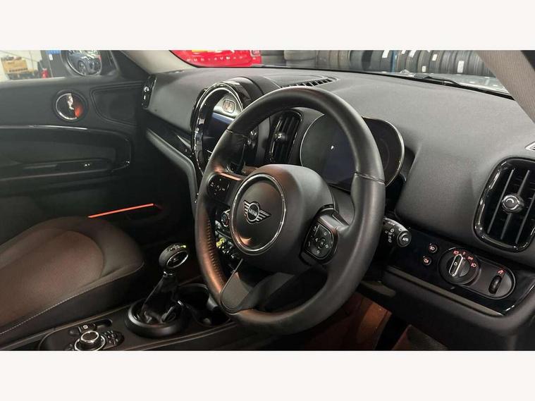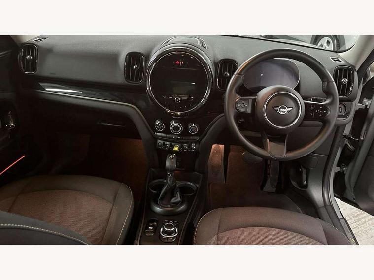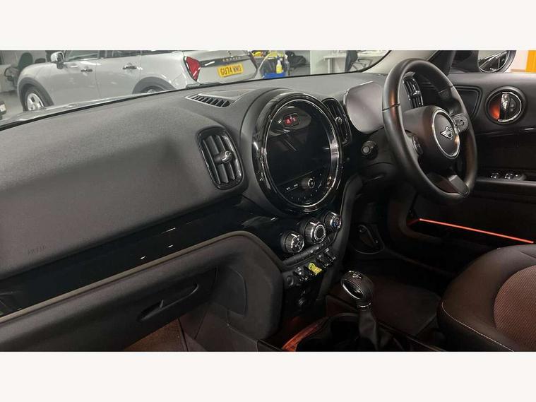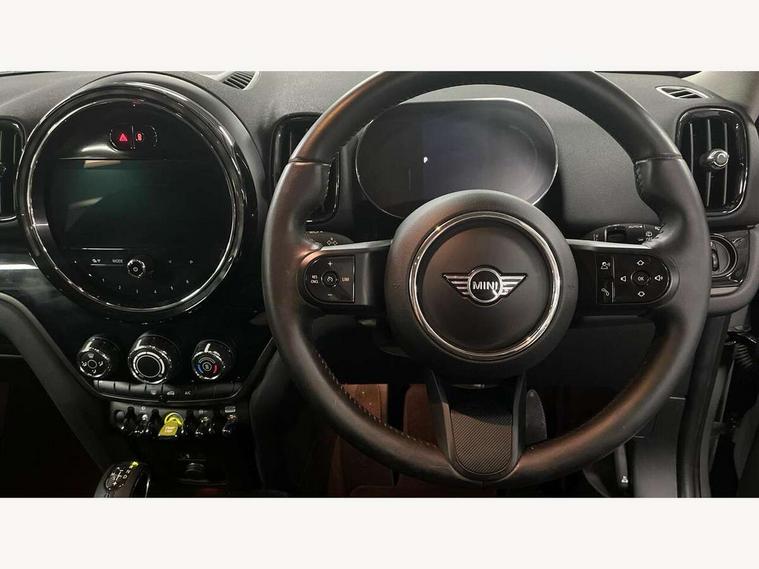Active Guard incl speed limiting and lane departure functions with auto steering, and front collision warning with brake intervention, Automatic start/stop function with brake energy recuperation, Compatible mobile phone bluetooth with audio streaming, Cruise control with brake assist, eDrive button, Electro-mechanical speed dependant steering assistance, Instrument cluster, On board computer, Rear parking distance control, 36L fuel tank, Automatic transmission, Charging flap on front left lower A-panel, Double Vanos system, Fully variable valve control, High precision injection, Home charging cable, Performance Control, Public charging cable, FM tuner and DAB digital radio, Bonnet scoop, Chrome border honeycomb structure radiator grille with S badge, Chrome fuel filler cap, Day time driving lights, Dynamic brake lights, Electric windows, Heated rear window, Heated windscreen washer jets, LED fog lights, LED Headlights, Metal door sill strips with Cooper S imprint, Model logo, Model logo on Tailgate, Rain sensor with auto headlights, Rear fog lights, Rear window wiper, Side scuttle panel with integrated indicator, Split rear doors, Sun/heat protection glass, Twin exhaust tailpipe, White indicator lenses, 12V socket in centre console, 3 spoke sport leather steering wheel + limiter function and audio controls, 360L luggage compartment capacity, 4 lashing eyes in luggage compartment, 40:20:40 split folding rear seats, Chrome interior highlights, Colour line - Carbon black, Cupholders, English handbook, Floor mats, Front headrests, Glove compartment, Headliner with grab handles and clothes hooks, Height and length steering column adjustment, Interior lighting with 12 basic colours selectable via toggle switch in roof, Isofix rear child seat preparation, Leather gearshift lever and handbrake gaiters, LED reading lights, vanity mirror lights, front foot well light and spotlight on front seats, Manual air conditioning, Mechanical seat adjustment, driver seat height adjust, forward/back and front seats backrest, Multifunction steering wheel, Passenger seat height adjuster, Rear headrests, Storage compartments in doors, Sunvisors with vanity mirrors, Excitement pack - Countryman, Navigation pack - Countryman, 2 tone horn, 3 point seatbelts on all seats, 6 Airbags - front, side, head and seat belt tensioners, Acoustic pedestrian protection, Anti-lock braking system (ABS), DSC - Dynamic Stability Control, Electronic handbrake, Front and rear disc brakes, Hill start assist, Tyre pressure monitoring system, Alarm system with tilt sensor, monitoring doors, bonnet interior and tailgate, Auto drive away locking, Deadlocking function, Electronic vehicle immobiliser, Locking wheel bolts, Start/stop toggle with keyless go, Piano black interior trim, Tool kit,