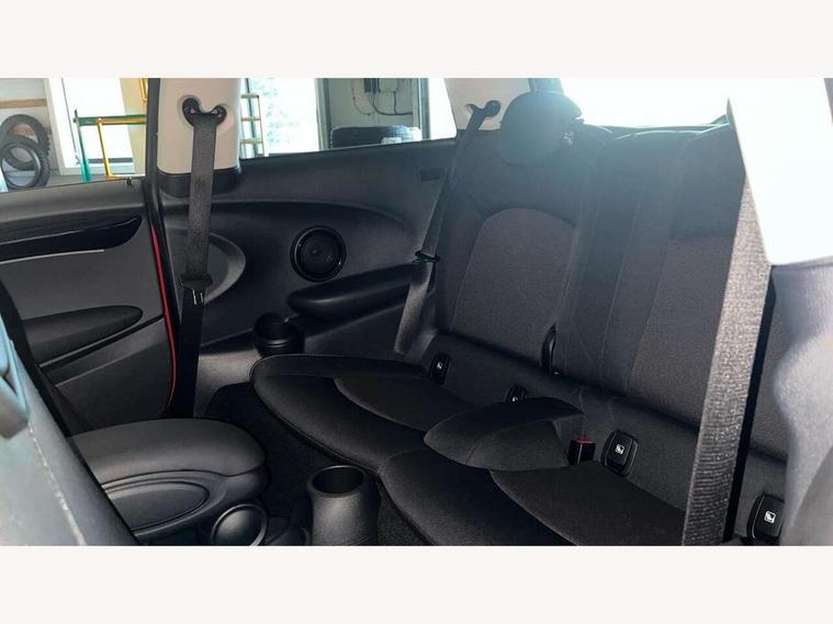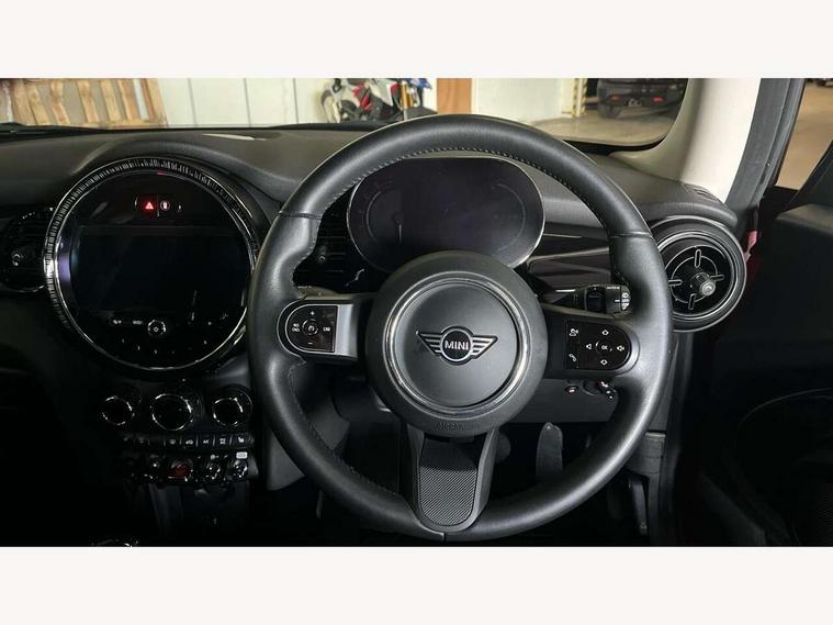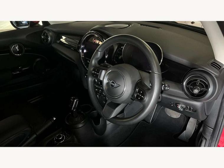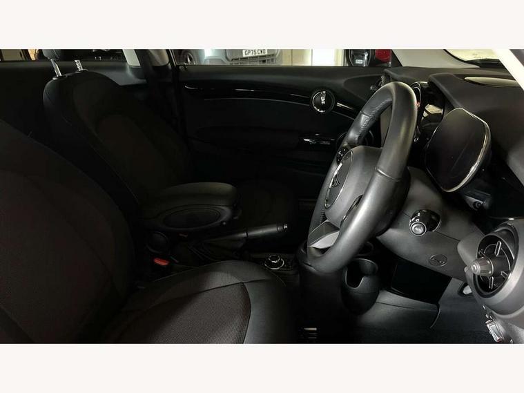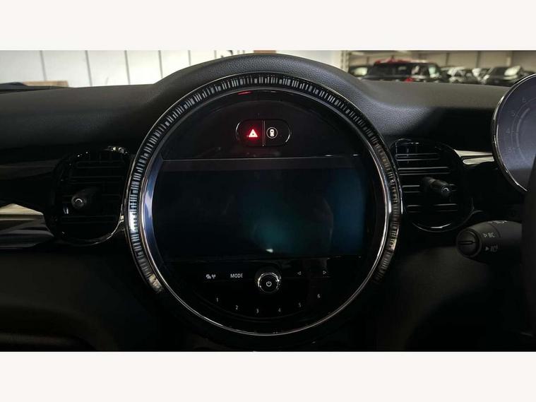 Apple CarPlay, Automatic start/stop function with brake energy recuperation, Compatible mobile phone bluetooth with audio streaming, Cruise control with brake assist, Electro-mechanical speed dependant steering assistance, Flexible car sharing preparation, Instrument cluster, Mini E-call, MINI TeleServices, On board computer, Service interval indicator, Double Vanos system, Fully variable valve control, High precision injection, Performance Control, Steptronic transmission with double clutch, 8.8" touchscreen with LED ring, FM tuner and DAB digital radio, 3rd brake light, Automatic headlight activation switch, Body colour fuel filler cap, Chrome border high gloss black slats radiator grille, Dynamic brake lights, Electric front windows, Exhaust tailpipe on left with chrome finisher, Heated rear window, Heated windscreen washer jets, LED headlight with closed ring and daytime driving lights, Metal door sill strips with MINI imprint, Model logo Cooper on right of tailgate, Rain sensor window wipers, Rear fog lights, Rear LED lights with union jack design, Rear window wiper, Side scuttle panel with integrated indicator, Sun/heat protection glass, White indicator lenses, 12V Accessory socket in centre console, 2 seat bench in 2nd row, 4 lashing eyes in luggage compartment, 60/40 split folding rear seat, Ambient lighting, Carbon black colour line - Knee roll and door armrest, Chrome interior highlights, Cupholders, Front and rear head restraints, Front and rear isofix with front passenger airbag deactivation, Front floor mats in velour, Glove compartment, Height and length steering column adjustment, Interior lighting with 12 different colours across the dashboard, underneath door bezel with illuminated laser-engraved design on central display, Leatherette gearshift lever and handbrake gaiters, LED reading lights, vanity mirror lights, front foot well light and spotlight on front seats, Manual air conditioning, Mechanical seat adjustment - forward/back & backrest for front seats and driver seat height adjust, Multifunction steering wheel, Passenger seat height adjuster, Satellite grey headlining including grab handles and clothes hooks, Single front passenger seat, Sport leather steering wheel with speed limiter and audio/communication controls, Storage compartments in doors, Sunvisors with vanity mirrors, 3 point seatbelts on all four seats, 6 Airbags - front, side, head and seat belt tensioners, Anti-lock braking system (ABS), DSC - Dynamic Stability Control, Front and rear disc brakes, Single tone fanfare horn, Tyre pressure monitoring system, Alarm system with tilt sensor, monitoring doors, bonnet interior and tailgate, Electronic vehicle immobiliser, Start/stop toggle with keyless go, Piano black interior trim, Tool kit, Tyre repair kit,