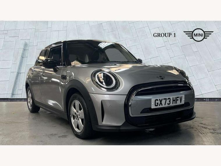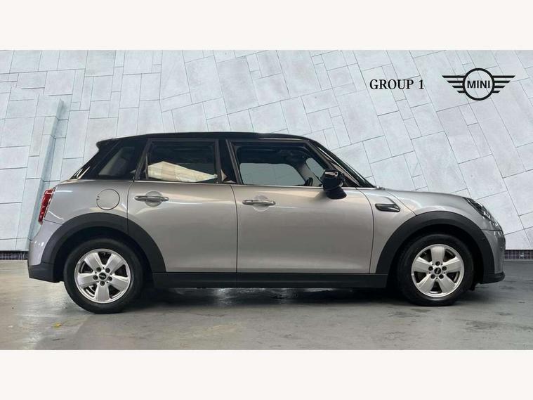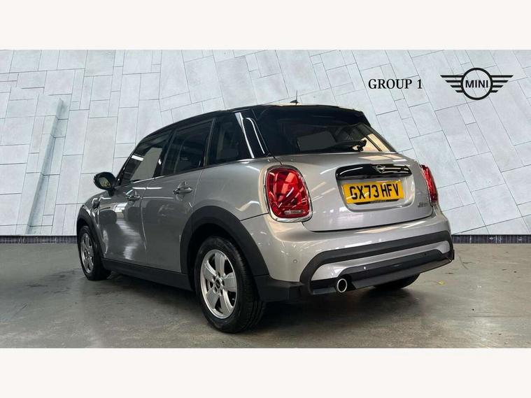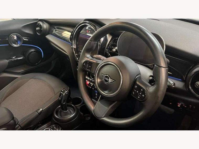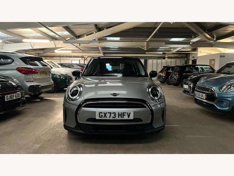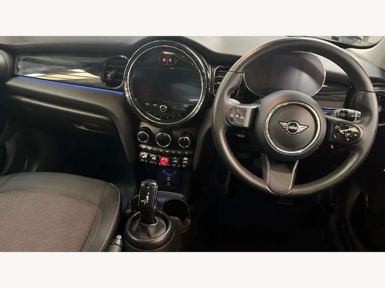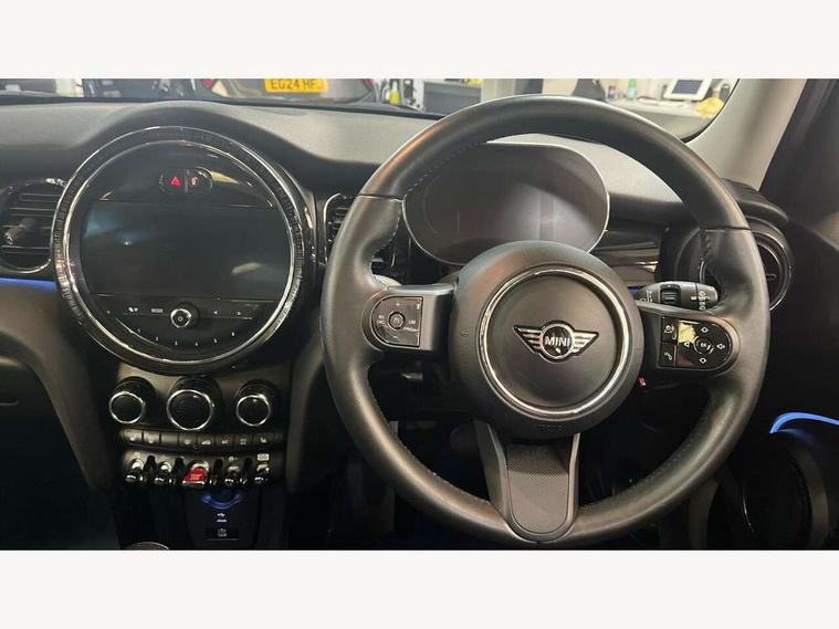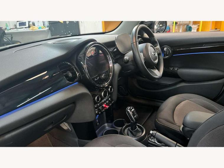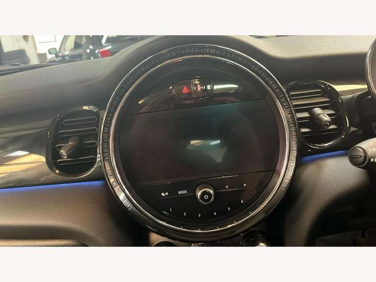 Apple CarPlay, Automatic start/stop function with brake energy recuperation, Compatible mobile phone bluetooth with audio streaming, Electro-mechanical speed dependant steering assistance, Flexible car sharing preparation, Mini E-call, MINI TeleServices, On board computer, Service interval indicator, Double Vanos system, Fully variable valve control, Gear change indicator display, High precision injection, Performance Control, Steptronic transmission with double clutch, 8.8" touchscreen with LED ring, FM tuner and DAB digital radio, 3rd brake light, Automatic headlight activation switch, Body colour fuel filler cap, Chrome border high gloss black slats radiator grille, Dynamic brake lights, Electric front+rear windows, Exhaust tailpipe on left with chrome finisher, Heated rear window, Heated windscreen washer jets, Metal door sill strips with MINI imprint, Model logo Cooper on right of tailgate, Rain sensor window wipers, Rear fog lights, Rear LED lights with union jack design, Rear side wing doors, Rear window wiper, Side scuttle panel with integrated indicator, Sun/heat protection glass, White indicator lenses, 12V Accessory socket in centre console, 3 seat bench in 2nd row, 4 lashing eyes in luggage compartment, 60/40 split folding rear seat, Ambient lighting, Carbon black colour line - Knee roll and door armrest, Chrome interior highlights, Cupholders, Front and rear head restraints, Front and rear isofix with front passenger airbag deactivation, Front and rear velour floor mats, Glove compartment, Height and length steering column adjustment, Interior lighting with 12 different colours across the dashboard, underneath door bezel with illuminated laser-engraved design on central display, Leatherette gearshift lever and handbrake gaiters, LED reading lights, vanity mirror lights, front foot well light and spotlight on front seats, Mechanical seat adjustment - forward/back & backrest for front seats and driver seat height adjust, Multifunction steering wheel, Satellite grey headlining including grab handles and clothes hooks, Single front passenger seat, Sport leather steering wheel with speed limiter and audio/communication controls, Storage compartments in doors, Sunvisors with vanity mirrors, 3 point seatbelts on all five seats, 6 Airbags - front, side, head and seat belt tensioners, Anti-lock braking system (ABS), Child locks on rear doors, DSC - Dynamic Stability Control, Front and rear disc brakes, Hill start assist, Single tone fanfare horn, Tyre pressure monitoring system, Alarm system with tilt sensor, monitoring doors, bonnet interior and tailgate, Electronic vehicle immobiliser, Start/stop toggle with keyless go, Piano black interior trim, Tool kit, Tyre repair kit,