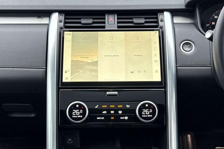 11.4" touchscreen, 3D surround camera, Adaptive cruise control, Android Auto, Apple car play, Blind spot assist, Driver condition monitor, Electric power assisted steering (EPAS), Emergency services call system, Front and rear parking aid, Interactive driver display, Lane keep assist, Power inner tailgate, Power tailgate/boot lid, Push button start, Rear collision monitor, Rear traffic monitor, Remote, Remote boot release, Service interval indicator, Speed proportional steering, Sportshift selector, Stop/start system, Traffic sign recognition with adaptive speed limiter, Trip computer, Wade Sensing, Adaptive dynamics, Dynamic stability control, Electronic air suspension, Front axle open differential, Digital Audio Broadcast radio-DAB, Dynamic volume control, Pivi pro connected, USB/aux input socket, Acoustic laminated windscreen, Animated directional indicators, Auto dimming interior rear view mirror, Automatic headlight levelling, Automatic headlights, Body colour bumpers, Body colour door handles, Centre high mounted stop light, D300 badge, Electric heated/power fold memory door mirrors with approach lights and auto dimming driver side, Electric windows with one touch open/close and anti-trap, Heated rear window, Heated windscreen, LED darkend tail lights, Matrix LED headlights with signature DRL, Narvik black Discovery script, Privacy glass, Puddle lights, Rain sensing windscreen wipers, Rear fog lights, Rear side wing doors, Rear wash/wipe, Trailer stability assist, Variable intermittent wiper, 12V power sockets, 12V USB charging socket in loadspace, 2 seat bench in 3rd row, 3 seat bench in 2nd row, 60/40 electric heated folding rear seats with manual slide and powered recline, centre headrest and armrest, Central hinged twin lidded storage, Configurable cabin lighting, Ebony morzine headlining, Electric adjustable steering column, First and second row door bins, Footwell lights, Front and rear 12V with front USB, Front passenger seat isofix location point, In-facia storage, Isofix child seat preparation for front passenger seat, Leather steering wheel, Loadspace cover, Loadspace Hook, Loadspace light, Lockable glovebox, Lower centre console storage, Luggage tie downs in loadspace, Multi function steering wheel, Overhead lighting console, Premium carpet mats, Rear ISOFIX, Shopping bag hook, Single front passenger seat, Storage glovebox, Sunvisors with illuminated vanity mirrors, Third row storage, Treadplates with metal inserts, Twin front cupholders with cover, USB with 12V socket in centre console, Black exterior pack - Discovery Dynamic SE/HSE, Online pack with data plan - Discovery, 3x3 point rear seatbelts, Anti-lock braking system (ABS), Brake pre-fill technology, Cornering brake control, Curtain airbags, Customer configurable autolock, Driver and passenger airbags, EBD - Electronic brakeforce distribution, Electronic traction control, Emergency brake assist, Emergency braking, ESP, Front side airbags, Gradient acceleration control, Hill descent control, Hill launch assist, Power operated child locks, Rear airbags, Roll stability control, Seat belt reminder, Torque vectoring brake, Tyre pressure monitoring system, Immobiliser, Intrusion sensor, Keyless entry, Locking wheel nuts, Remote central locking, All terrain tyres,