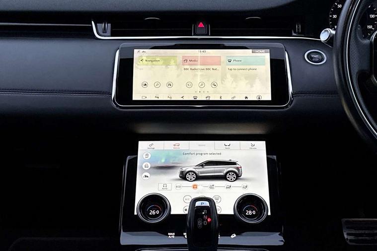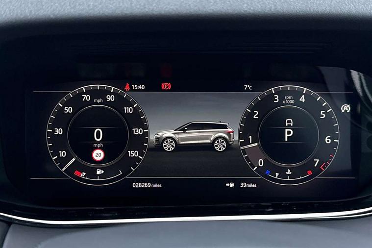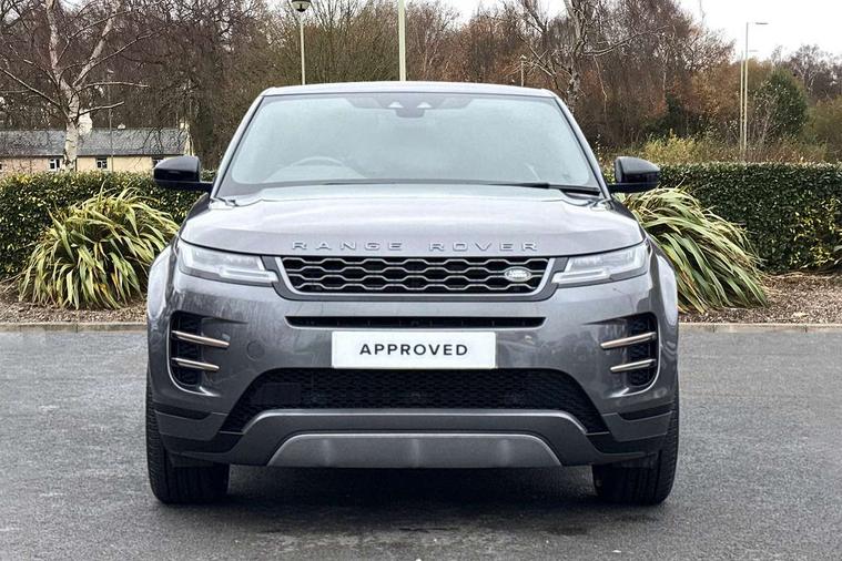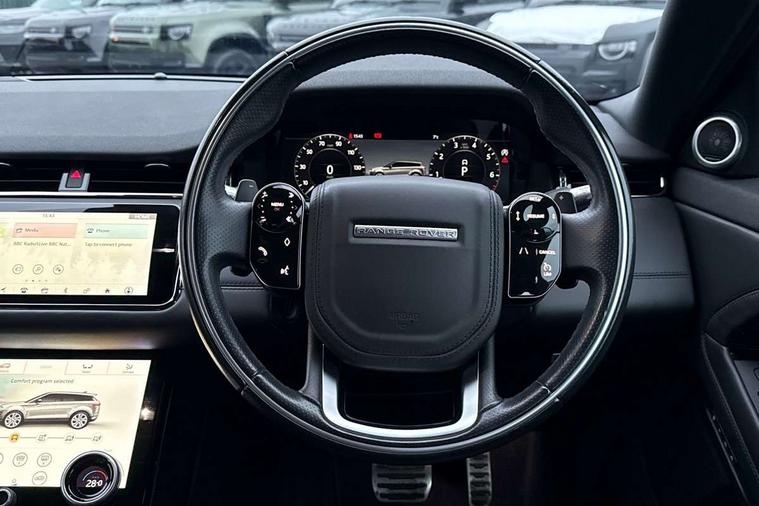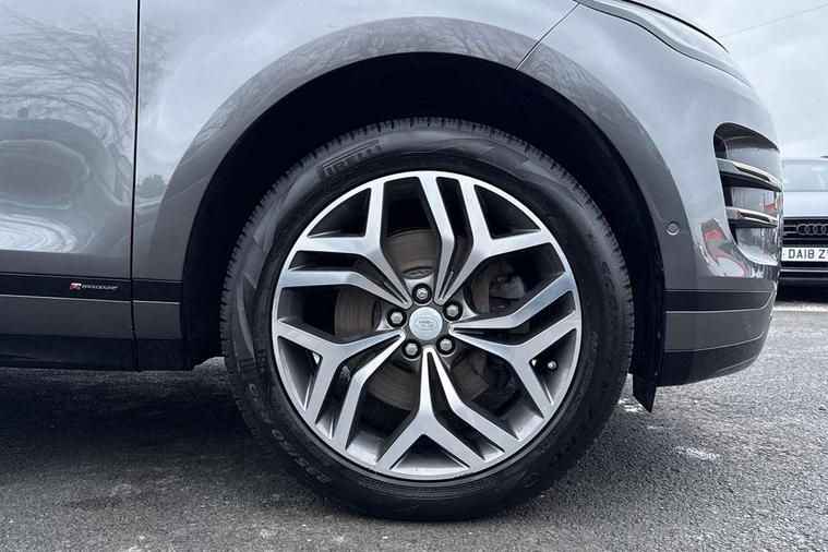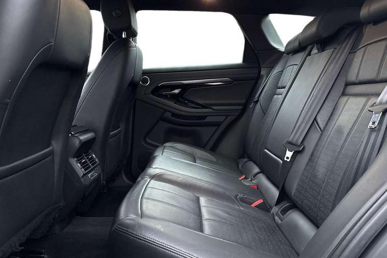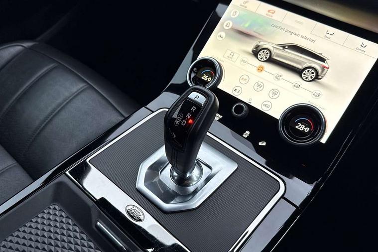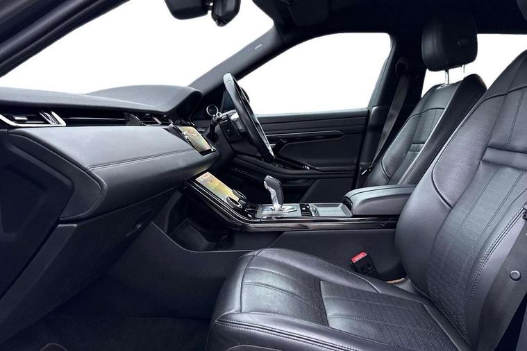 360 degree parking aid, Adaptive cruise control, Android Auto, Apple car play, Blind spot assist, Bluetooth connectivity, Brake pad wear indicator warning light, Clear exit monitor, Driver condition monitor, Duo touch pro, Electronic power assisted steering (EPAS), InControl remote, Interactive Driver display instrument cluster, Land Rover InControl apps, Lane keep assist, Navigation pro system, Park assist - Parallel, perpendicular and parking exit, Powered gesture tailgate/boot lid, Pro services and wifi hotspot, Push button starter, Rear traffic monitor, Smart settings, Traffic sign recognition with adaptive speed limiter, Voice control system, All terrain progress control, Efficient Driveline, Large fuel tank, Passive suspension, Terrain Response 2 Auto, Digital Audio Broadcast radio-DAB, Steering wheel mounted controls, Automatic headlight levelling, ClearSight interior rear view mirror, Electric windows with one touch open/close and anti trap, Evoque and R-Dynamic badge, Flush deployable exterior door handles, Heated rear window with timer, Heated washer jets, Heated windscreen, Power fold, auto-dimming, heated door mirrors with memory and approach lights, Rain sensing windscreen wipers, Rear fog lights, Shadow atlas bonnet and tailgate script, Tailgate spoiler, 40:20:40 split folding rear seats, Black gearshift paddles, Bright metal pedals, Isofix system on outer rear seats, Overhead lighting console, Overhead stowage for sunglasses, Passive front head restraints, Rear air vents, Rear centre headrest, Sunvisors with illuminated vanity mirrors, Twin front cupholders with cover, Twin sliding front centre armrest, Two zone climate control, Anti-lock braking system (ABS), Customer configurable autolock, DSC - Dynamic Stability Control, Electronic brake force distribution, Electronic parking brake, Electronic traction control, Front and rear seatbelt reminder, High speed emergency braking, Hill descent control, Hill launch assist, Low traction launch, Power operated child locks, Roll stability control, Six airbags - Driver and passenger airbags/driver knee airbag/front side airbag and curtain airbags, Torque vectoring brake, Tyre pressure monitoring system, Alarm, Immobiliser, Intrusion sensor, Keyless entry, Locking wheel nuts,