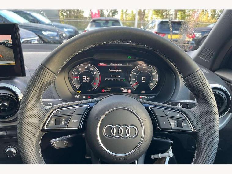 3D map display, Audi connect navigation and infotainment includes innovative services, Audi connect remote and control connects your vehicle to your smartphone, Audi drive select: S tronic - power steering assistance + engine + gearshift (modes: comfort, auto, dynamic, efficiency, individual), Audi smartphone interface - Apple carplay/Android Auto, USB connect, 2xSDXC card readers, voice control for navi, telephone, music and 3rd party apps, Audi virtual cockpit, Automatic start/stop system with recuperation, Bluetooth interface includes bluetooth audio streaming, Camera based traffic sign recognition, Cruise control, Distraction and Fatigue warning, E-call, Jukebox hard drive memory for music (10GB), Lane departure warning, MMI navigation plus with 8.8" touchscreen, Natural voice recognition, Power operated tailgate, Progressive steering, Rear parking sensors, Sport suspension, 6 passive loudspeakers, DAB Digital radio, USB type C port, Auto dimming rear view mirror, Black window trims, Body colour door mirrors, Electrically adjustable, folding, auto dimming and heated door mirrors with integrated LED side indicators, Front windscreen with grey tinted sunband, LED daytime running lights, LED headlights with dipped beam, high beam, position lights, indicators, LED rear lights, LED third brake light, Privacy glass - dark tinted rear and rear side windows from B-pillar backwards, Rear side wing doors, Rear wiper, S Line badges on the front wings, S Line body styling - front and rear bumpers, side skirts, radiator grille, rear diffuser insert and front air intakes, Variable front intermittent wipers, Wheel arch trims in manhattan grey, 12V socket in front, 3 seat bench in 2nd row, 3 spoke multi-function leather steering wheel with S badging, 4-way electric lumbar support for front seats including manual seat height adjustment for both front seats, 60/40 split folding rear seat bench, Black carpets, Black cloth headlining, Front and rear head restraints, Front centre armrest, Front sport seats, Front/rear floor mats, Height/reach adjust steering wheel, Illuminated door sill trims with S logo, ISOFIX child seat mounting in front passenger and rear outer seats, Manual air conditioning, Single front passenger seat, Stainless steel pedals, 3x3 point rear seatbelts, 6 airbags - Front, curtain and front side airbags, Electromechanical parking brake, Electronic stabilisation control including ABS, ASR and EDL, Front passenger airbag deactivation, Hill hold assist, Pre-sense front with pedestrian recognition, Seatbelt monitoring, Tyre pressure warning light with visual and acoustic warning, Warning triangle and first aid kit, Anti theft wheel bolts, Electronically operated child locks, Remote central door locking, Thatcham category 1 alarm, Aluminium interior element, Black dashboard, Gloss black centre console, Matt brushed aluminium trim inlays, Tool kit,