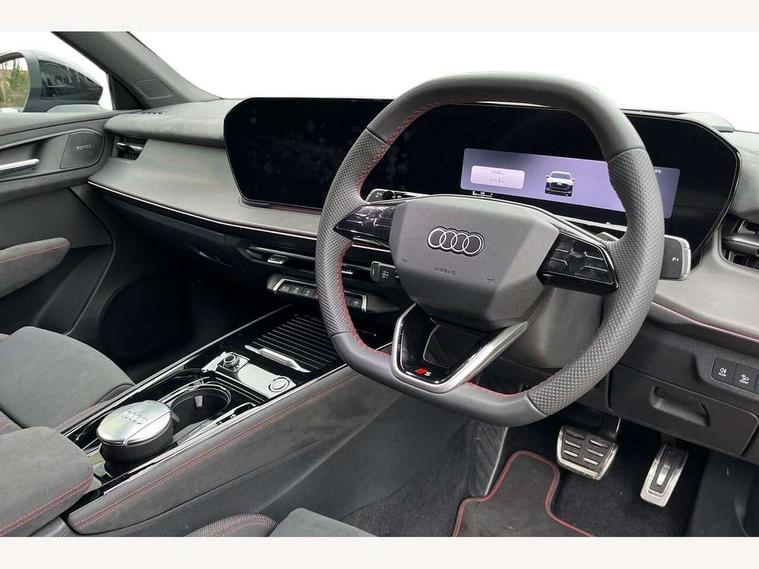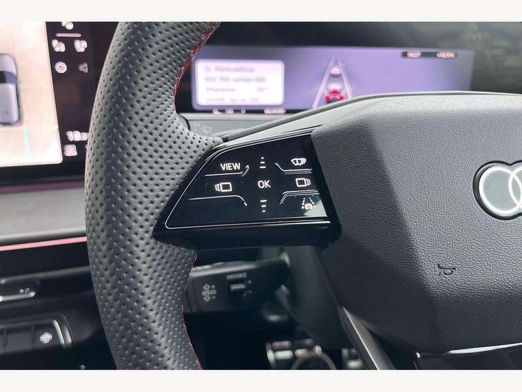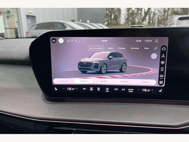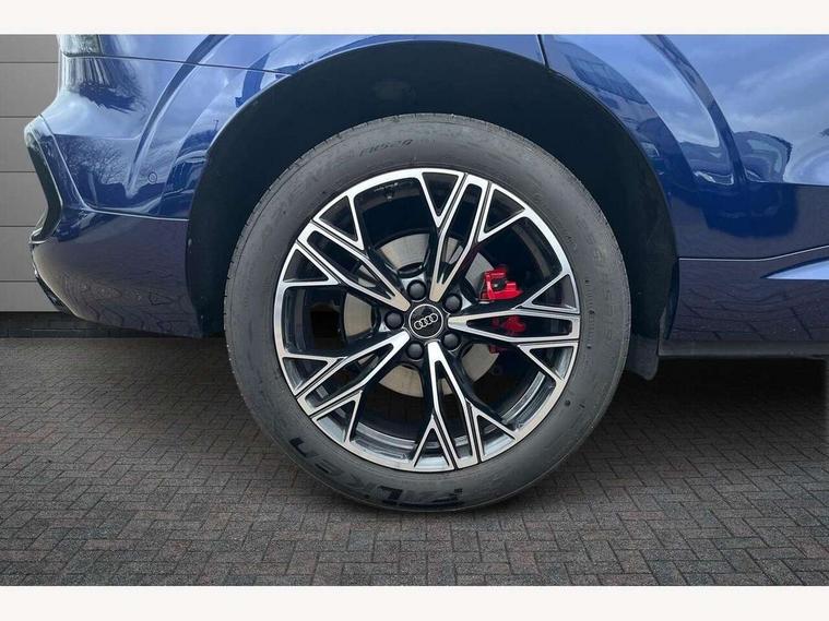 Adaptive cruise assist plus, Audi connect emergency call and service, Audi connect remote and controls, Audi drive select for suspension with damper control, Audi side assist with exit warning and rear cross traffic assist, Audi virtual cockpit plus - 11.9" display, Bluetooth interface, Camera based traffic sign recognition, Driver attention and fatigue monitor with driver monitoring, Emergency assist, Front cross traffic assist, Garage door opener, Head up Display, In-car-office assist, Panoramic curved display with 12.8" MMI navigation plus and MMI touch, Phonebox light with wireless charging, Progressive steering, Projection of a black ice warning, Smartphone interface includes wireless Apple carplay/Android Auto, Start/stop system, Surround view cameras, Swerve assist and turn assist, Traffic sign based speed limiter, Trained parking, Voice control system with natural language interaction, Petrol Particulate Filter, Sound actuator for interior drive sound, Suspension with damping control, 2 USB-C ports with charge and data functions, DAB digital radio module, SONOS premium sound system, USB interfaces with higher charging capacity, Acoustic glass for front door windows, Acoustic windscreen, Advanced dynamic light scenario of the coming home/leaving home function, Aluminium window trim, Audi Q3 lettering on the B-pillars, Auto dimming rear view mirror, Automatic dynamic headlight range control, Automatically dimming exterior mirrors with memory function, Contrasting finish in volcano grey, Cornering light, Digital matrix LED headlights, Digital OLED rear lights, Dipped beam, Dynamic indicators, Electrically folding, adjustable and heated door mirrors with integrated LED side indicators and kerb view function for passenger side, Full paint finish, Headlight cleaning system, High resolution main beam, Illuminated door sills with aluminium inserts at the front with S logo, Intersection light, Lane light with side assist and direction indicator, LED daytime running lights, LED third brake light, Loading sill protector in stainless steel, Manoeuvring light, Motorway light, Orientation light with lane departure warning, Position light, Privacy glass - dark tinted rear window, rear door and side windows, Projection light in the exterior mirrors - Projects a graphic element onto the ground, Q3 badging on the rear, Rain and light sensors, Rear side wing doors, Rear window, rear door windows and rear side windows in clear glass, Rear wiper, Solid paint, Sports bumpers, Turning light, 3 seat bench in 2nd row, 3 spoke heated flat top and bottomed leather multi function sport steering wheel with gear shift paddles and "S" badging, 3-zone deluxe automatic air conditioning, 4 way lumbar support for the front seats - electric with horizontal and vertical adjustment in four directions, Black cloth headlining, Electrically adjustable front seats with memory function for driver's side, Front and rear floor mats, Front and rear headrests, Front centre armrest, Heated front seats, Height and reach adjustable steering wheel, Interior storage compartment, Luggage compartment lid, electrically opening and closing, Microfibre upholstery with rhombus pattern and S emblem + front sports seats, Single front passenger seat, Stainless steel pedals, Steering wheel operating unit, gloss black, Storage compartment in front centre console, Ambient lighting package pro - Q3, Black styling pack with black door mirrors - Q3, Function pack - Q3, 3 point seat belts in front, with pretensioner and electric height adjustment, 3x3 point rear seatbelts, Convenience key with safelock, Downhill assist, Driver and front passenger airbag with passenger airbag deactivation, Electromechanical parking brake, Electronic stabilisation control including ABS, ASR and EDL, First aid kit with warning triangle and high visibility vests, Front and rear side airbags with head airbags and front interaction airbag, Front emergency brake assist, Hill hold assist, i - Size child seat mounting on the front passenger side and i - Size and top tether on the outer rear seats, Power operated child locks, Proactive occupant protection, front, side and rear, Rear side airbags, Red brake callipers, front and rear, Seatbelt monitoring, Tyre pressure loss indicator, Anti theft wheel bolts, Remote central locking, Thatcham approved category 1 anti theft alarm, Anthracite american whitewood natural inlay, Interior elements in dinamica microfibre, Interior trims in aluminium look, 19" 5 twin spoke peak design alloy wheels with gloss turned finish in metallic black, Tool kit and Jack, Tyre repair kit,