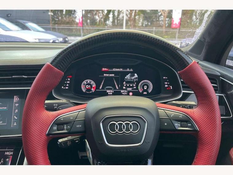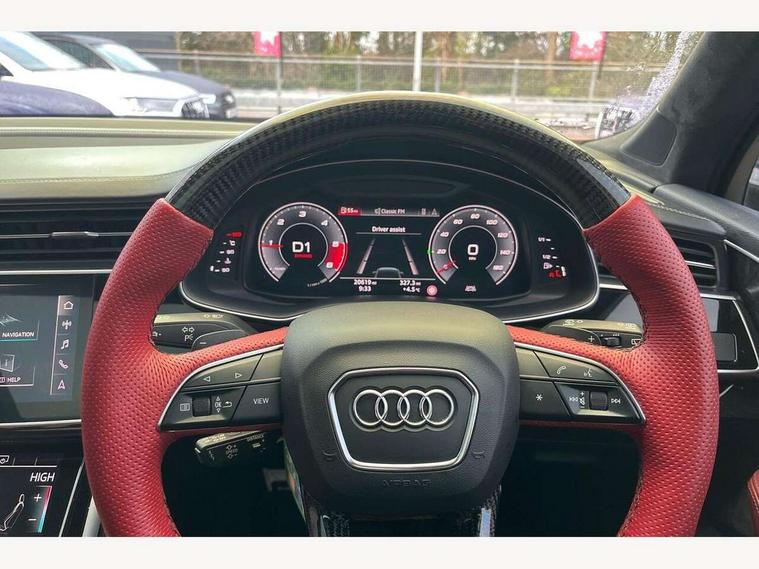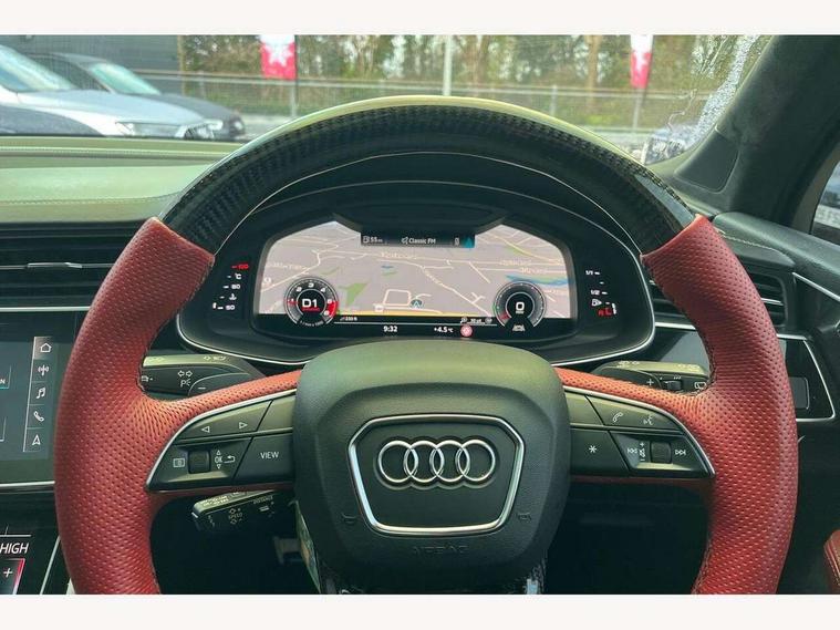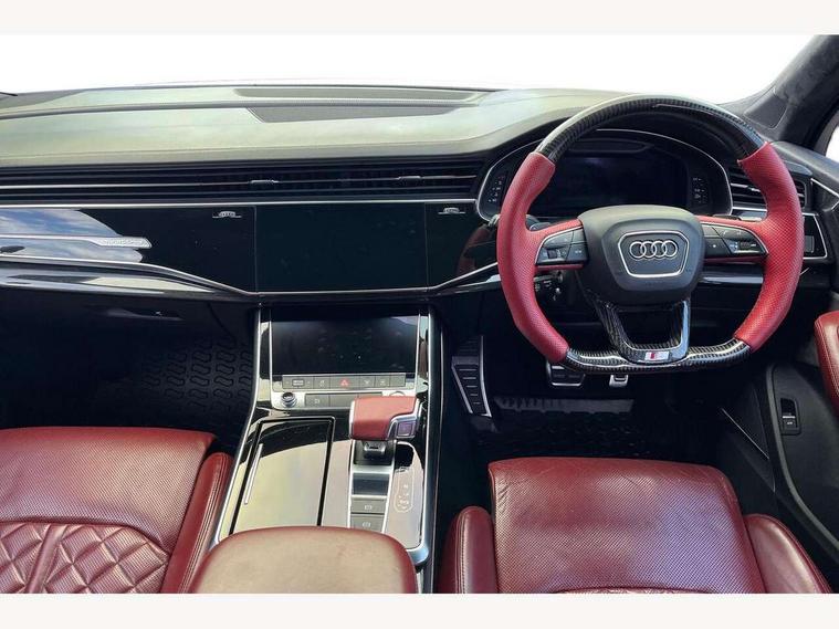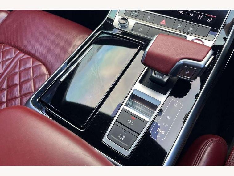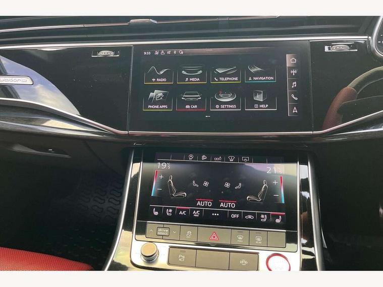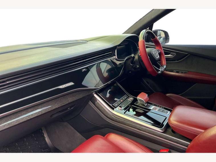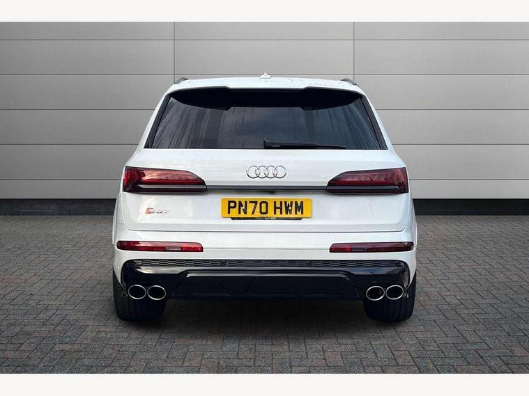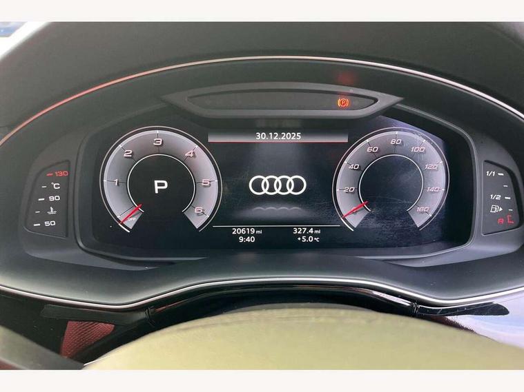 All wheel steering, Audi connect safety and service (e-call), Audi drive select (Auto, Comfort, Dynamic, Efficiency, Individual, Off-road and All road), Audi phone box with wireless charging, Audi smartphone interface includes wireless Apple carplay/Android Auto, Audi virtual cockpit - 12.3" high-resolution LCD display with fully customisable instrument cluster, Camera based traffic sign recognition, Head up Display, MMI navigation plus with MMI touch screens includes 10.1" and 8.6" screens with haptic feedback, Natural voice recognition, PAS, Power door closure, Power operated tailgate, Start/stop system, 48V Mild hybrid technology, 85 litre fuel tank, Quattro all wheel drive with self locking centre differential, S specific adaptive air sport suspension, 2 USB-C ports with charging functionality in the rear, DAB digital radio module, Audi Beam uses LEDs to project Vorsprung logo, Audi HD matrix LED headlights with Audi laser light + dynamic front and rear indicators, Auto dimming frameless rear view mirror, Black roof rails, Electric panoramic glass sunroof, Electrically adj heated/folding + automatically dimming exterior mirrors with memory + automatic kerb side function for passenger side exterior mirror, Headlight washers, Heat insulating glass in windshield, LED daytime running lights, LED rear tail lights, Privacy glass - dark tinted rear and rear side windows from B-pillar backwards, S front and rear bumpers, S specific rear bumper with 4 exhaust pipes, 3 spoke flat bottomed high multi-function leather sport steering wheel with gearshift paddles, 4 zone deluxe automatic climate control, 7 seat layout with ISOFIX points for the front passenger seat and rear passenger seat, Black alcantara headlining includes double sun visors with extendable driver and front passenger side illuminated vanity mirrors, Comfort front centre armrest, Electric height/reach adjustable steering column with memory + auto easy-entry and exit function, Folding rear seats, Front head restraints, Front/rear floor mats, Heated front and outer rear seats for second row, LED interior ambient lighting, Rear head restraints, Seat ventilation and massage function in the front, Stainless steel pedals, Tool kit, Valcona leather upholstery with front super sport seat + S embossed, electric adj front seats/backrest bolsters, lumbar support, memory functionality, City assist pack - Q7, Comfort and sound pack with Bang + Olufsen premium sound system - Q7, Extended leather pack with upper and lower interior elements in leather - Q7, Titanium black styling pack - Q7, Tour pack with Adaptive cruise assist - Q7, 3 point seatbelts on all rear seats, Audi pre sense front, Driver and front passenger, front side and curtain airbags, Electromechanical parking brake, Electronic Stabilisation Control (ESC) including ABS, ASR and EDL, Extended pedestrian protection measures, Hill hold assist, Seatbelt monitoring, Tyre pressure loss indicator, Warning triangle and first aid kit, Anti theft alarm, Anti-theft wheel bolts and wheel loosening detection, Keyless go with remote central locking, Polished oak trim with grey finished, Tyre repair kit,