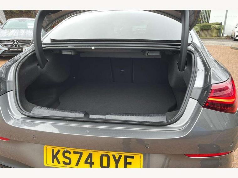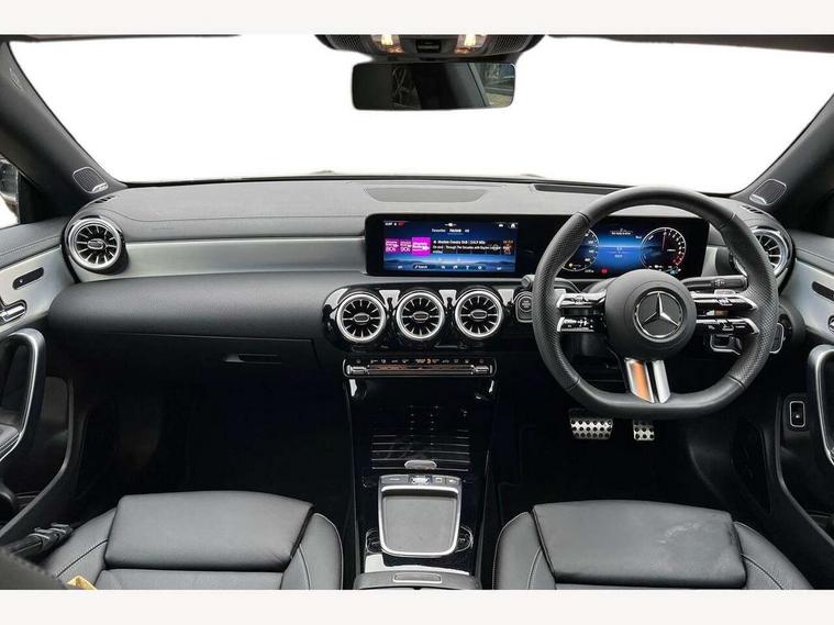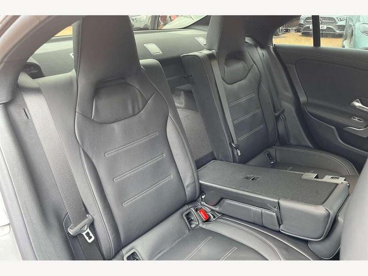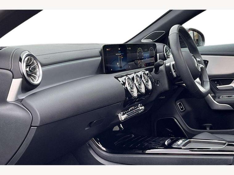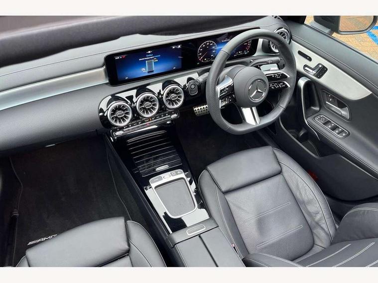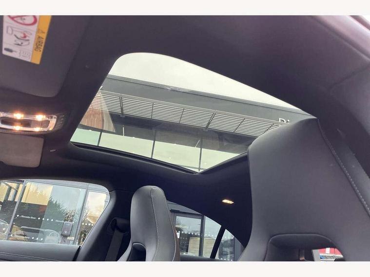 10.25 inch Instrument display with digital cockpit, 10.25 inch touchscreen central media display, Acoustic ambient protection, Active lane keeping assist, Attention assist - Monitors steering behaviour and long journey fatigue, Bluetooth connection, Car wash mode, Cruise control with limiter, Direct steer system, DYNAMIC SELECT with a choice of driving modes (ECO, Comfort, Sport and Individual), ECO start/stop function, Fingerprint sensor, Fluid level warning indicator for fuel, oil, coolant and washer fluid, Hard-disk navigation, Head up Display, Hey Mercedes Voice activation, Lamp failure indicator, MBUX augmented reality for navigation, Mercedes me connect including emergency call system, accident recovery, breakdown and maintenance management, Mercedes me remote and charging services plus, Outside temperature gauge, Owners manual in English, Pre-installation of private car share, Radio aerial integrated into front and rear windshields, Service indicator (ASSYST), Smartphone integration with Apple CarPlay and Android auto, Traffic sign assist, Trip computer in multifunction display with current consumption indicator, Wireless charging in the front centre console, Charging system - AC charging system rated at 11kW, Charging system - DC charging system rated at 22kW, Comfort suspension, Mode 3 charging cable for wallbox and public charging stations with 5m upto 11kW, Rear axle torsion beam, Burmester lettering on the speakers, Burmester surround sound system (710W) with dolby atmos, speakers - 1 central, 1 woofer, 1 tweeter, 1 subwoofer with 60W, 2 in C pillar, DAB digital radio tuner, MBUX multimedia system, Pre installation for Mercedes Benz Link, Adaptive brake lights, AMG body styling with AMG front apron and rear apron and visible exhaust tailpipe in chrome trim elements, Body colour door handles, Electric panoramic sunroof with automatic tilt and convenience closing fuinctions, rain sensor auto closing and electronic roller sunblind, Electric windows, Electrically adjustable and heated door mirrors with integrated LED indicators, Exhaust system with 2 Visible tailpipe trim elements and rear apron with trim in chrome, Hand free access, Headlamp assist automatic headlamp activation, Heated glass rear windscreen + timer control, High level LED third brake light, Integrated LED daytime running lights, Interior mirror with black reading lamps and frameless, LED tail lamp, Multibeam LED headlamps with adaptive highbeam assist plus, Privacy glass with dark tinting on rear side windows and rear window, Radiator grille with Mercedes-Benz pattern in chrome and central Mercedes star, single louvre in high-gloss black with chrome inserts, Rain sensing windscreen wipers with two sensitivity settings, Rear boot, Rear fog lamp, Rear side wing doors, Variable front intermittent wipers, 3 seat bench in 2nd row, 3 twin spoke flattened multifunction steering wheel in nappa leather - horizontal twin spoke in high gloss black, vertical twin spoke in silver chrome, 40:20:40 split folding rear seat backrests, Air conditioning - Two zone thermotronic luxury automatic climate control with display, Air vents with surround in silver chrome, Automatic child seat recognition sensor, Black roof lining, Brushed stainless steel sports pedals with rubber studs, Charging socket, Electrically adjustable front memory seats including 4 way lumbar support, Floor mats with stitched AMG lettering, Fluorescent jacket, Front centre armrest with stowage, Galvanished gear shift paddles in silver chrome, Illuminated front door sills with Mercedes Benz lettering and changeable cover, Interior lighting - 64 colour Ambient lighting, Luggage net on driver/front passenger seat backrest, Manually height and reach adjustable steering column, Pre-entry climate control, Rear armrest with two integral cup holders for drinks, Rear head restraints, Single front passenger seat, Sport seats with fixed head restraints, Stowage compartment in centre console with retractable cover, Sunvisors with illuminated vanity mirrors, Twin front cupholders, Two outer rear seat isofix and top tether child seat fixing points, Keyless go comfort pack - CLA, Light and sight pack - CLA, Mirror pack - CLA, Night package - CLA, Parking pack with 360 degree camera - CLA, Seat comfort pack - CLA, USB package plus - CLA, Winter pack - CLA, Active bonnet pedestrain safety measure which detects an impact and raises bonnet by 65mm, Adaptive brake assist with hold function and hill start assist, Anti lock braking system (ABS) with brake assist, Black seat belts, Bonnet with power domes, Brake calipers with Mercedes-Benz lettering, Brake pad wear warning indicator, Childproof locks manually operated for rear doors and electrically operated for rear power windows, Crash responsive emergency lighting, Driver and front passenger head and sidebags, Driver and front passenger windowbags, Drivers knee airbag, Dual stage driver and front passenger airbags, Electric parking brake, Electronic stability programme with acceleration skid control, ESP curve dynamic assist, Exit warning, Front and rear seatbelt reminder, Front passenger seat occupancy sensor, Perforated front brake discs, Radar-based recuperation, Sports braking system, Three point rear seat belts, Tyre pressure monitoring system, Warning triangle and first aid kit, Alarm system with immobiliser and interior protection -Thatcham category 1, Guard 360 deg vehicle protection - tow away protection with visual, acoustic warning, interior monitoring, preinstallation for parking damage, Remote central locking and crash sensor with emergency opening function, Light aluminium with longitudinal grain interior trim, 19" AMG multi-spoke black painted light alloy wheels with high sheen rim finish, Summer tyres, Tirefit tyre sealant kit,