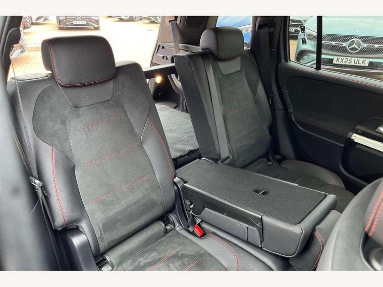10.25 inch touchscreen central media display, 10.25" Digital instrument cluster display screen, Attention assist - Monitors steering behaviour and long journey fatigue, Blind spot assist, Bluetooth connection, Brake pad wear indicator warning light, Car wash mode, Direct steering, DYNAMIC SELECT with a choice of driving modes (ECO, Comfort, Sport and Individual), ECO start/stop function, Exit warning function, Fingerprint scanner, Fluid level warning indicator for fuel, oil, coolant and washer fluid, Hard disk navigation, Hey Mercedes Voice activation, Lamp failure indicator, Lane keep assist, MBUX navigation premium, Mercedes me connect including emergency call system, accident recovery, breakdown and maintenance management, Mercedes me remote services, Outside temperature gauge, Owners manual and service booklet in English, Pre-installation of private car share, Preinstallation for parking damage notification, Radio aerial integrated into front and rear windshields, Service indicator (ASSYST), Smartphone integration with Apple CarPlay and Android auto, Speed limit assist, Tailgate, Trip computer in multifunction display with current consumption indicator, Wireless charging, Comfort suspension with ride height lowering, Rear axle multi-link, DAB digital radio tuner, MBUX multimedia system, Mercedes Benz sound system (225 W) with 10 speakers, 1 central speaker, speakers on doors, a tweeter on door, one sub woofer + boost amplifier, Pre installation for Mercedes Benz Link, Adaptive brake lights, Adaptive high beam assist, AMG front apron with front splitter in the colour of the vehicle with chrome trim element, AMG rear apron with visible tailpipe trim and chrome trim element, AMG specific/dual flow exhaust pipes in chrome (non-functional), Beltline trim and window line trim strip in high gloss aluminium, Black grained side sill trim with chrome inlay, Body coloured door handles, Electric adjustable and heated door mirrors with integrated LED side indicators, Front and rear electric windows, Headlamp assist automatic headlamp activation, Heat insulating dark tinted glass for rear side windows and rear window, Heated glass rear windscreen + timer control, High level LED third brake light, Illuminated door sill panels with Mercedes-Benz lettering, Interior mirror with black reading lamps and frameless, LED daytime running lights, LED tail lamp, Polished aluminium roof rails, Radiator grille as a diamond grille with chrome pins and central Mercedes star, Rain sensor windscreen wipers, Rear fog lamp, Rear side wing doors, Rear wiper, Single louvre in matt grey with chrome inserts and black highlights, Two visible tailpipe trim elements exhaust, Wheel arch liners in the colour of the vehicle, 3 seat bench in 2nd row, 3 twin spoke flattened multifunction steering wheel in nappa leather - horizontal twin spoke in high gloss black, vertical twin spoke in silver chrome, 4 way adjustable lumbar support, 40:20:40 split folding rear seats, Air vents with silver chrome surrounds, AMG floor mats, AMG sports pedals with brushed stainless steel surfaces and black rubber studs, Automatic child seat recognition sensor, Black roof lining, Electrically adjustable front memory seats, Fluorescent jacket, Front and rear headrests, Front centre armrest with stowage, Galvanised steering wheel gearshift paddles in silver chrome, Heated front seats, Height adjustable head restraints, Height/reach adjustable steering column, Interior lighting - 64 colour Ambient lighting, Luggage net on driver/front passenger seat backrest, Single front passenger seat, Sports seats, Stowage compartment in centre console with retractable cover and double cupholder and 12 V socket, Sun visors with illuminated vanity mirrors, THERMOTRONIC automatic climate control, Third row of seats for two people on rear seat, Twin front cup holders, Two outer rear seat isofix and top tether child seat fixing points, Driving assistance package with active steering assist - GLB, Easy pack tailgate, Engineering package - GLB, Interior lighting with light and sight pack - GLB, KEYLESS-GO Comfort package - GLB, Mirror package - GLB, Off road engineering pack - GLB, Parking Package with reversing camera - GLB, Seat comfort package - GLB, USB package plus - GLB, 3 rear 3 point seatbelts, Active bonnet pedestrain safety measure which detects an impact and raises bonnet by 65mm, Active brake assist includes forward collision warning system with autonomous braking, Adaptive brake assist with hold function and hill start assist, Airbags - kneebag for driver, Anti-lock braking system (ABS) with brake assist, Black seatbelts, Bonnet with power domes, Childproof locks manually operated for rear doors and electrically operated for rear power windows, Crash responsive emergency lighting, Curve dynamic assist, Driver and front passenger head and sidebags, Driver and front passenger windowbags, Dual stage driver and front passenger airbags, Electric parking brake, Electronic stability programme with acceleration skid control, Front and rear seatbelt reminder, Front brake callipers with Mercedes Benz lettering, Front passenger seat occupancy sensor, Off road light, Perforated front brake discs, Tyre pressure monitoring system, Warning triangle and first aid kit, Guard 360 degree vehicle protection - Anti theft alarm system, tow away protection with visual, acoustic warning and alarm, Interior monitoring system, KEYLESS-GO starting function, Remote central locking and crash sensor with emergency opening function, Thatcham category 1 alarm system with immobiliser and interior protection, Carbon structure trim, 20" AMG multi spoke light alloy wheels aerodynamically optimised and painted in black with a high-sheen finish RVU, Summer tyres, Tirefit tyre sealant kit,