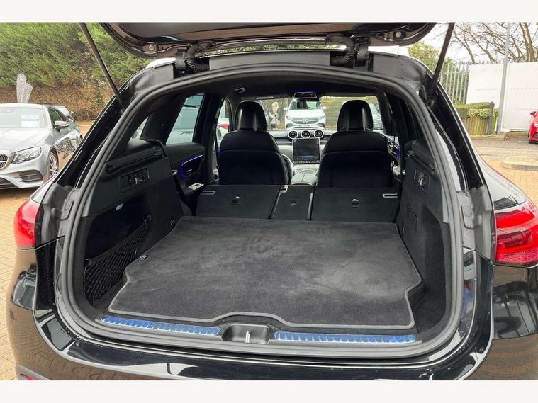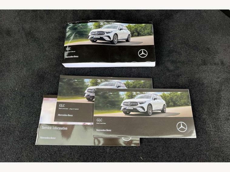 11.9" high resolution multimedia colour display, 12.3" Digital individually configurable instrument display, Acoustic presence indicator, Active lane keeping assist, Attention assist, Blind spot assist, Collision prevention assist plus, Cruise control with speedtronic variable speed limiter, Direct steer speed sensitive steering, DYNAMIC SELECT with a choice of driving modes (ECO, Comfort, Sport, Sport+ and Individual), Easy pack automatic powered tailgate, eCall emergency call system, ECO start/stop function, Fingerprint scanner, Fluorescent jacket for driver, Hard disk navigation, Instrument display in miles with English lettering, MBUX augmented reality for navigation, MBUX navigation premium, MBUX voice control activated by keywords "Hey Mercedes", Mercedes me connect, Outside temperature display, Remote and charging services plus, Remote boot release, Road sign recognition system, Service indicator (ASSYST), Smartphone integration, Status display for rear seat belts in instrument cluster, Traffic sign assist, Wireless charging, 1 x type 2 and 3 phase 4m straight wallbox cable, 49 litre fuel tank, 4MATIC permanent four wheel drive, 7.4 kW monophase on board charger, 9G TRONIC plus automatic transmission, Alternating current charging system (AC charging), Comfort suspension, Petrol Particulate Filter (PPF), Self levelling suspension, DAB digital radio tuner, MBUX extended functions, Mercedes benz sound system, USB ports x 2 USB C ports in centre console, Adaptive high beam assist plus, Aluminium look running boards with rubber studs, Aluminium roof rails, AMG bodystyling front apron, rear apron and side skirts, AMG Line exterior, Auto headlights, Body colour bumpers, Digital light LED headlights, Electrically adjustable door mirrors, Front and rear electric windows, Headlight washers, Heat and noise insulating acoustic glass, Heat insulating dark tinted glass, Heated door mirrors, Heated rear window, Integrated LED daytime running lights, LED indicator lights, LED rear fog lights, LED tail lamp, LED third brake light, Radiator grille with Mercedes Benz pattern and integreated Mercedes star and louvre in dark grey matt with chrome inlay and black frame, Rain sensor windscreen wipers, Rear side wing doors, Rear wiper, Transparent Bonnet, Two chrome plated tailpipe trim elements, Welcome and follow-me home light functionality, Wider wheel arch for AMG wheels, 3 seat bench in 2nd row, 40:20:40 split folding rear seats, Ambient light in 64 colour with dynamic multicolour LED interior lightings, AMG line interior, AMG sports seats, Automatic child seat recognition sensor, Black fabric roof lining, Black floor mats with AMG lettering, Double cup holder in centre console, Easy-pack removable load compartment cover, Electrically height/reach adjustable steering column, Front centre armrest with stowage compartment, Front head restraints, Galvanised steering wheel gearshift paddles, Heated front seats, Illuminated door sill panels with Mercedes Benz lettering, Illuminated glove compartment, Instrument panel and beltlines in Artico man made leather in nappa look, Multi function steering wheel with audio and onboard settings control, Multifunction sports steering wheel in nappa leather, Rear centre headrest, Rear head restraints, Rear top tether child seat ISOFIX attachment, Single front passenger seat, Sports pedals with stainless steel surfaces and rubber studs, Steering wheel with audio and onboard settings control, Sun visors, THERMATIC 2 zone automatic climate control, Anti theft protection package - GLC, Boot comfort package - GLC, Exterior chrome package - GLC, Interior chrome package - GLC, Interior lighting pack - GLC, Memory pack - GLC, Mirror pack - GLC, Parking package with 360 degree camera - GLC, Seat comfort package - GLC, Stowage space package - GLC 300e/300de, USB Package - GLC, 3 rear 3 point seatbelts, Active braking assist, Anti-lock braking system (ABS), ASR traction control, Automatic front passenger airbag deactivation, Black seat belts, Brake calipers with Mercedes-Benz lettering + perforated brake discs, Child proof door locks, Dual-stage airbags - driver and front passenger, driver knee bag and window bags for driver, front passenger and rear passengers, Electronic parking brake, Electronic stability programme (ESP) with curve dynamic assist and cross wind assist, Front and rear seatbelt reminder, Front seatbelt pretensioners, Hill start assist, Tyre pressure monitoring system, 360 degree guard vehicle protection plus, Anti theft alarm system with preinstallation for collision detection, Dashcam, Immobiliser, Keyless Go entry and starting function, Centre console in metal structure finish, Metal structure trim, 20" AMG 5 spoke aerodynamically optimised light alloy wheels in painted black with high sheen finish, Summer tyres, TIREFIT with tyre inflation compressor,