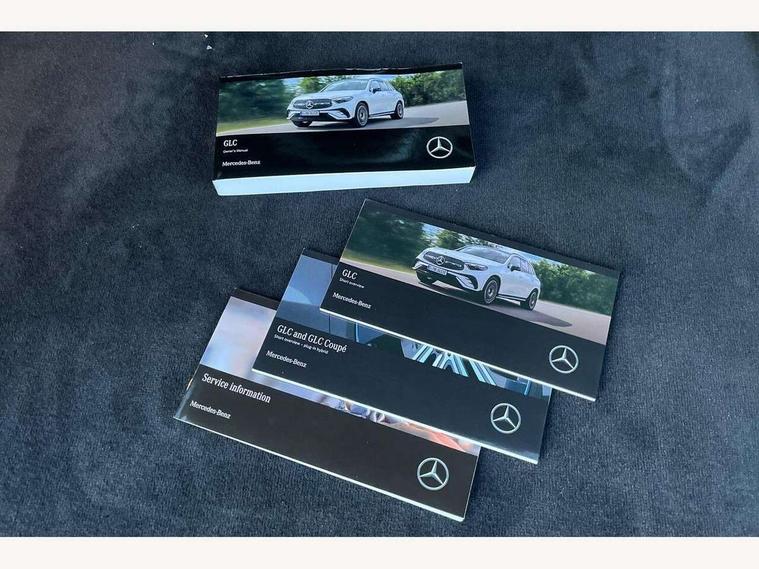 11.9" high resolution multimedia colour display, 12.3" Digital individually configurable instrument display, Acoustic presence indicator, Active lane keeping assist, Attention assist, Blind spot assist, Bluetooth interface for hands free telephone, Collision prevention assist plus, Cruise control with speedtronic variable speed limiter, Dashcam - front camera for video recording, Direct steer speed sensitive steering, DYNAMIC SELECT with a choice of driving modes (ECO, Comfort, Sport, Sport+ and Individual), eCall emergency call system, ECO start/stop function, Fingerprint scanner, Fluorescent jacket for driver, Hard disc navigation, Instrument display in miles with English lettering, MBUX augmented reality for navigation, MBUX navigation premium, MBUX voice control activated by keywords "Hey Mercedes", Mercedes me connect, Outside temperature display, Remote and charging services plus, Remote boot release, Road sign recognition system, Service indicator (ASSYST), Smartphone integration, Status display for rear seat belts in instrument cluster, Traffic sign assist, Trip computer, Wireless charging, 1 x type 2 and 3 phase 4m straight wallbox cable, 49 litre fuel tank, 4MATIC permanent four wheel drive, 7.4 kW monophase on board charger, 9G TRONIC plus automatic transmission, Alternating current charging system (AC charging), Comfort suspension, Petrol Particulate Filter (PPF), Self levelling suspension, DAB digital radio tuner, MBUX extended functions, Mercedes benz sound system, Pre installation for Mercedes Benz Link, Adaptive brake lights, Adaptive high beam assist plus, Aluminium look running boards with rubber studs, Aluminium roof rails, AMG bodystyling front apron, rear apron and side skirts, AMG Line exterior, Auto headlights, Body colour bumpers, Body colour door mirrors, Digital light LED headlights, Electrically adjustable door mirrors, Front and rear electric windows, Headlight washers, Heat insulating dark tinted glass, Heated rear window, High level LED brake light, Integrated LED daytime running lights, LED indicator lights, LED rear fog lights, LED tail lamp, Motor way mode function and locator lighting, Noise acoustic glass, Radiator grille with Mercedes Benz pattern and integreated Mercedes star and louvre in dark grey matt with chrome inlay and black frame, Rain sensor windscreen wipers, Range adjustable headlights, Rear side wing doors, Rear wiper, Transparent Bonnet, Two chrome plated tailpipe trim elements, Variable front intermittent wipers, Welcome and follow-me home light functionality, Wider wheel arch for AMG wheels, 3 seat bench in 2nd row, 40:20:40 split folding rear seats, Ambient lighting premium, AMG line interior, Artico man-made leather upholstery, Audio and onboard settings control on multifunction steering wheel, Automatic child seat recognition sensor, Black fabric roof lining, Black floor mats with AMG lettering, Double cup holder in centre console, Easy-pack removable load compartment cover, Electrically height/reach adjustable steering column, Front centre armrest with stowage compartment, Front head restraints, Galvanised steering wheel gearshift paddles, Heated front seats, Illuminated door sill panels with Mercedes Benz lettering, Illuminated glove compartment, Instrument panel and beltlines in ARTICO manmade leather in nappa look, Multifunction sports steering wheel in nappa leather, Rear centre headrest, Rear head restraints, Rear top tether child seat ISOFIX attachment, Single front passenger seat, Sports pedals with stainless steel surfaces and rubber studs, Sports seats, Sun visors, THERMATIC 2 zone automatic climate control, Anti theft protection package - GLC, Boot comfort package - GLC, Exterior chrome package - GLC, Interior chrome package - GLC, Interior lighting pack - GLC, Keyless-Go comfort package - GLC, Memory pack - GLC, Mirror pack - GLC, Parking package with 360 degree camera - GLC, Seat comfort package - GLC, Stowage space package - GLC 300e/300de, USB Plus Pack - GLC, 3 rear 3 point seatbelts, Active braking assist, Anti-lock braking system (ABS), ASR traction control, Automatic front passenger airbag deactivation, Black seat belts, Brake calipers with Mercedes-Benz lettering + perforated brake discs, Child proof door locks, Dual-stage airbags - driver and front passenger, driver knee bag and window bags for driver, front passenger and rear passengers, Electronic parking brake, Electronic stability programme (ESP) with curve dynamic assist and cross wind assist, Front and rear seatbelt reminder, Front passenger seat occupancy sensor, Front seatbelt pretensioners, Hill start assist, Tyre pressure monitoring system, Warning triangle and first aid kit, Automatic door locking, Guard 360 degree vehicle protection plus, Interior protection/immobiliser, Remote central locking, Centre console in metal structure finish, Metal structure trim, 20" AMG 5 spoke aerodynamically optimised light alloy wheels in painted black with high sheen finish, Summer tyres, TIREFIT with tyre inflation compressor,
