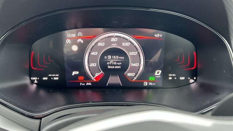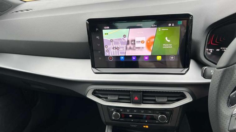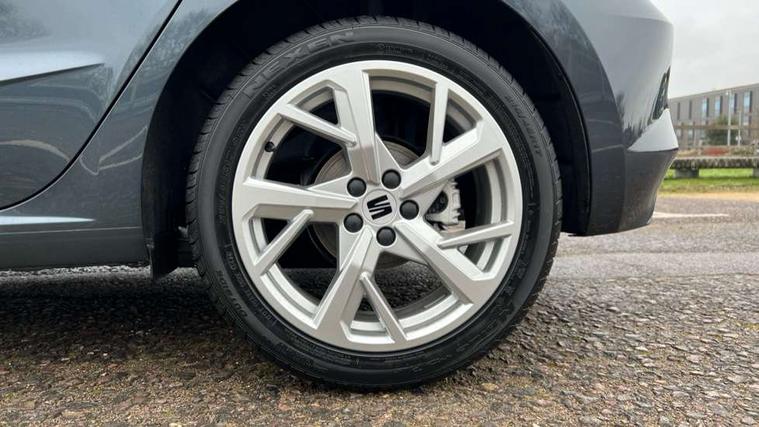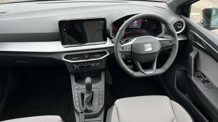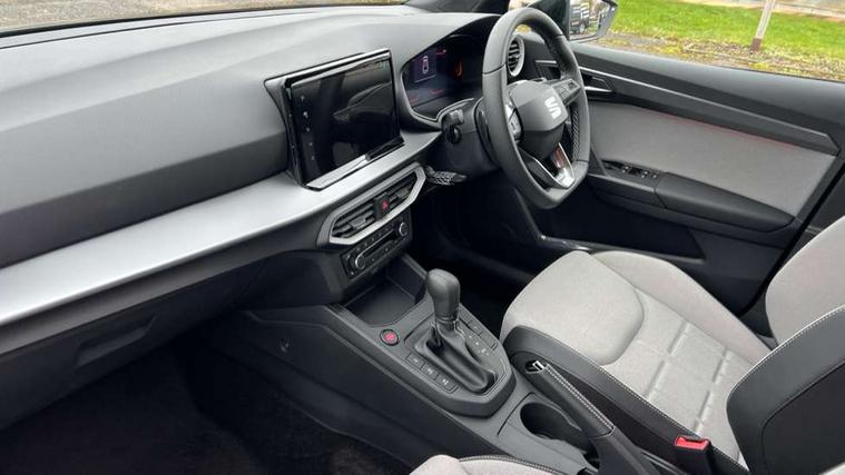 8" Digital cockpit, 9.2" touchscreen navigation system with type C USB socket, Voice control and DAB/AM/FM radio, Bluetooth audio streaming with handsfree system, Cruise control and speed limiter, E-call, Front parking sensors, Full Link Smartphone integration with Mirror Link, Apple Car Play, Google Android Auto with USB Type C cable for Apple and Android devices, PAS, Rear view camera, SEAT Drive profile - Four different models normal-sport-eco-individual, steering response, throttle response and gear shifts mode, Start/stop system, Sport suspension, Body colour mirror caps, Body coloured bumpers, Body coloured door handles, Dark tinted rear windows, Electric front and rear windows, Electrically adjustable, heated, folding exterior mirrors, FR styled rear diffuser, Front foglights with cornering functionality, Interior auto dimming rear view mirror, LED 3rd brake light, LED daytime running lights, LED license plate light, LED taillights, Rear fog lights, Rear side wing doors, Rear wash/wipe, SEAT Design Full LED automatic headlamps with signature dynamic headlight range control and coming and leaving home feature, 3 seat bench in 2nd row, 60/40 split and folding rear seats, Black headlining and chrome detailing, Cloth upholstery, Dual zone climate control with combination filter, Front integrated headrests, Front reading lights, Heated front seats, Height adjustable front seats, Height adjustable rear headrests, Interior ambient lighting in footwell, Isofix, Nappa leather multifunction flat bottomed sports steering wheel, Red coloured interior air vents with ambient lighting, Single front passenger seat, Sports bucket seats, Storage pockets on back of front seats, Sunvisors with mirrors and card holder on drivers side, Safe and Driving pack (S) - Ibiza, ABS, Child locks on rear doors, Driver and passenger airbags, Front driver and passenger side airbags with curtain airbag and front passenger airbag deactivation, Hill hold control, Three point seat belts on all rear seats, Tyre pressure monitoring system, Anti-theft alarm with interior monitoring, backup horn, and towing protection, KESSY Keyless entry and go with Safelock, Locking wheel bolts, 17" Dynamic alloy wheels in Nuclear grey,
