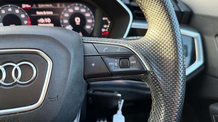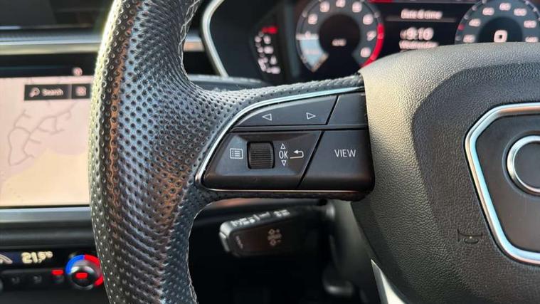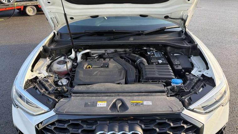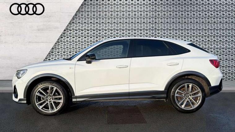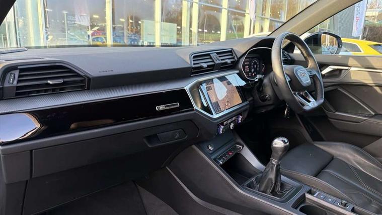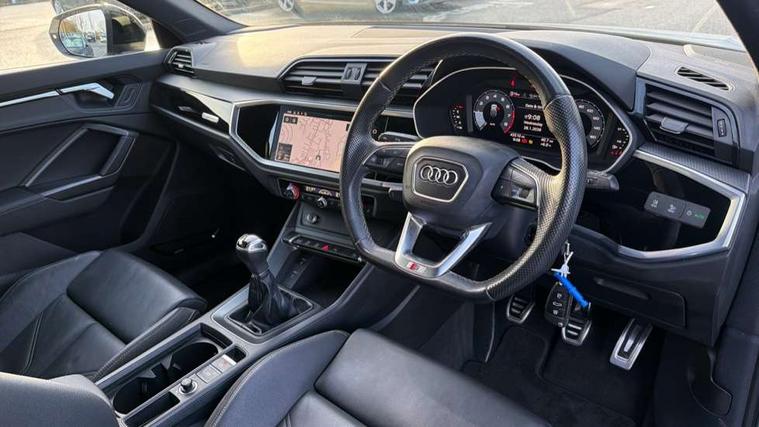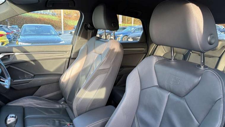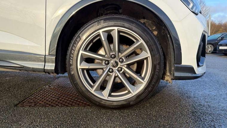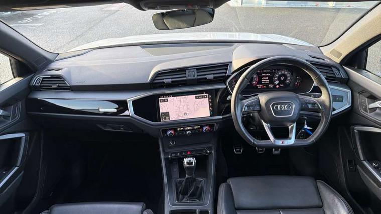 Amazon alexa Integration, Audi drive select, Audi lane departure warning, Audi Virtual Cockpit - 10.25" display, Bluetooth interface, Camera based traffic sign recognition, Cruise control + speed limiter, Legal emergency call, MMI Navigation Plus with high resolution 10.1 inch touchscreen colour display, Power operated tailgate, Progressive steering, Rear parking sensors, Service interval indicator, Smartphone interface includes wireless Apple carplay/Android Auto, Start stop system with recuperation, Voice control system with natural language interaction, Sports suspension, 2 USB-C ports with charge and data functions, 6 passive loudspeakers, DAB digital radio module, Acoustic windscreen, Auto dimming frameless rear view mirror, Black roof rails, Electrically folding, adjustable and heated door mirrors with integrated LED side indicators and kerb view function for passenger side, Front and rear electric windows, Front fog lights, Grille vertical bars in aluminium silver/Matt, High gloss black finish B and C pillars, LED Dynamic rear indicators, LED headlights with LED daytime running lights, LED rear lights, LED third brake light, Privacy glass dark tinted rear and rear-side windows (from B-pillar backwards), Rain and light sensors, Rear diffuser grille in grained matt black, Rear diffuser strip in matt titanium black, Rear side wing doors, Rear wiper, S line bumpers in contrasting Manhattan grey, Variable front intermittent wipers, 12V socket in rear centre console, 3 seat bench in 2nd row, 3 spoke flat bottomed multi-function leather sport steering wheel, 40:20:40 folding with manual adjustment for 60:40 forwards/backwards position and backrest angle, Adjustable rear seat bench/backrest with centre armrest and cupholder, Black cloth headlining, Dual zone electronic climate control, Front and rear black floor mats with contrast stitching in rock grey, Front and rear headrests, Front and rear roof module including reading lights, Front centre armrest, Glove compartment lighting, Height and reach adjustable steering wheel, Illuminated door sill trims with S logo, ISOFIX child seat mounting for front passenger with airbag deactivation and outer rear seat including top tether attachment point for outer rear seats, Luggage compartment light, Manual front seats with height adjustment, Perforated leather gearknob, Single front passenger seat, Stainless steel luggage compartment sill finisher, Stainless steel pedals, Ambient lighting pack - Q3, Black styling pack - Q3, Non smoking pack - Q3, 3x3 point rear seatbelts, 6 airbags - Driver, front passenger, curtain and side windows, Audi pre-sense front with pedestrain and cyclist recognition, Electrically operated child locks on rear doors, Electromechanical parking brake, Electronic stabilisation control including ABS, ASR and EDL, Front seatbelt reminder, Hill descent control, Hill hold assist, Pre sense basic, Seatbelt monitoring, Tyre pressure warning, Warning triangle and first aid kit, Anti theft alarm, Anti theft wheel bolts, Immobiliser, Remote central locking, Detail dashboard around MMI touch colour display in glass look, black with surround in aluminium look, Leatherette door armrest, Piano black inlay,