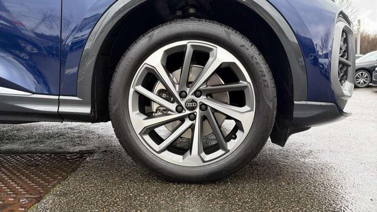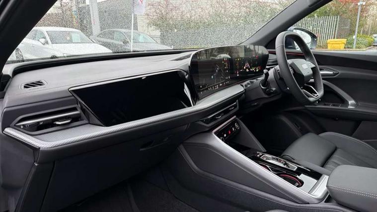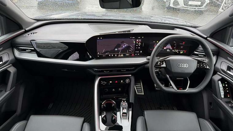 Adaptive cruise control, Attention and drowsiness detection with driver observation, Audi application store, Audi connect emergency call and service, Audi digital key, Audi drive select, Audi smartphone interface, Audi virtual cockpit plus with 11.9" OLED colour display, Camera based traffic sign recognition, Front cross traffic intersection assist, Lane change assistant with exit warning system, rear cross traffic alert and rear turn assist, Lane departure warning system, MMI navigation plus with high resolution 14.5" OLED touchscreen colour display, Park assist plus, PAS, Reversing camera, Swerve assist and front turn assist, Traffic sign based speed limiter, Audi sound system impressive sound with 8 loudspeakers including centre speaker and subwoofer, 6-channel amplifier with a total output of 180 watts, DAB Digital radio, Smartphone compartment with wireless charging, Aluminium roof rails, Auto dimming rear view mirror, Body coloured door mirrors, Electrically adjustable heated and folding + automatically dimming exterior mirrors, Front and rear electric windows, Front door sill trims with aluminium inlays, illuminated with 'S' logo, Grill frame, inlay and front air inlets in matt anthracite chrome, Headlight cleaning system, Heated rear window, High beam assist, High gloss window surrounds, LED headlights plus incl. digital DRL, dynamic coming and leaving home function with turning/all weather/motorway/manouevring and intersection lights, LED rear lights pro incl. dynamic rear indicators and illuminated light strip with animated coming and leaving home function, Logo projection light in exterior mirrors, Privacy glass, Projection third brake light for rear window in LED, Radiator grille in phantom black, Rear and side windows with heat insulating glass, Rear honeycombe grille in matt black with inlay in matt anthracite chrome, Rear side wing doors, Rear wash/wipe, S Line badge on the front wings, S line bumpers in contrasting Volcano grey metallic paint finish, Windscreen with acoustic glazing, 3 rear head restraints, 3 seat bench in 2nd row, 3 spoke leather steering wheel with multi-function buttons with touch control, flattened on top and bottom, with S badging and contrast stitching, 4 way electric lumbar support for driver and front passenger, Black carpets, Comfort centre armrest front, Deluxe 3 zone electronic climate control, Front and rear floor mats, Front sport seats with integrated head restraints, Headlining in black cloth, i-Size child seat mounting on the front passenger side and outer rear seats, i-Size and top tether on the outer rear seats, Increased charging capacity for USB ports 2X100 Watts in rear, 2X60 Watts in front, Interior trim in aluminium look, Luggage compartment lid, electrically opening and closing, Manual steering column adjustment, S embossed logo on front sport seats, Single front passenger seat, Softwrap in black, Stainless steel pedals and footrest, Steering wheel grips in perforated leather and shift paddles, Ambient lighting package plus - Q5, Rear seat bench plus pack - Q5, Storage and luggage compartment pack with luggage net - Q5, 3x3 point rear seatbelts, ABS, Acoustic vehicle alerting system, Convenience key with safelock, Driver and front passenger airbag with passenger airbag deactivation, Electric child safety locks, First aid kit with warning triangle and high visibility vests, Front emergency brake assist, Front side airbags with head airbag system and front interaction airbag, Hill hold assist, Rear seat occupant reminder, Tyre pressure loss indicator, Anti-theft wheel bolts, Thatcham approved category 1 anti theft alarm, Accent surfaces and control buttons in gloss black, Anthracite matt brushed aluminium inlays with linear embossing, Black dashboard with contrast stitching, Upper and lower interior elements in artificial leather, Tyre repair kit,