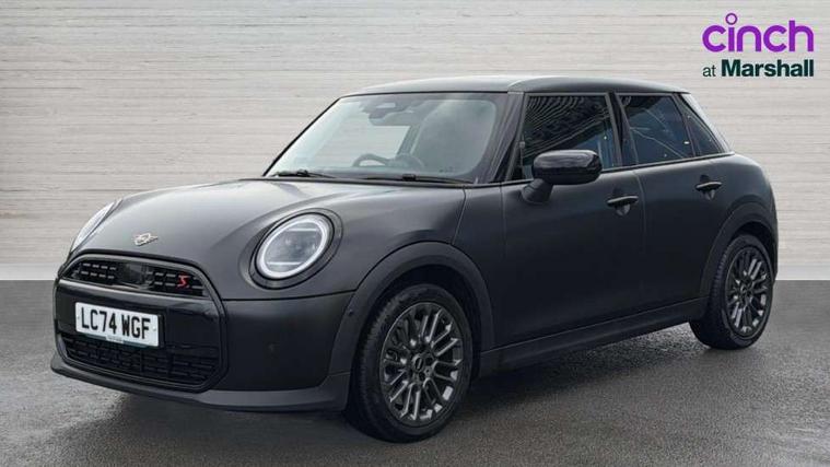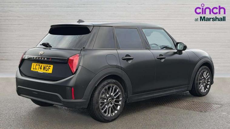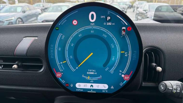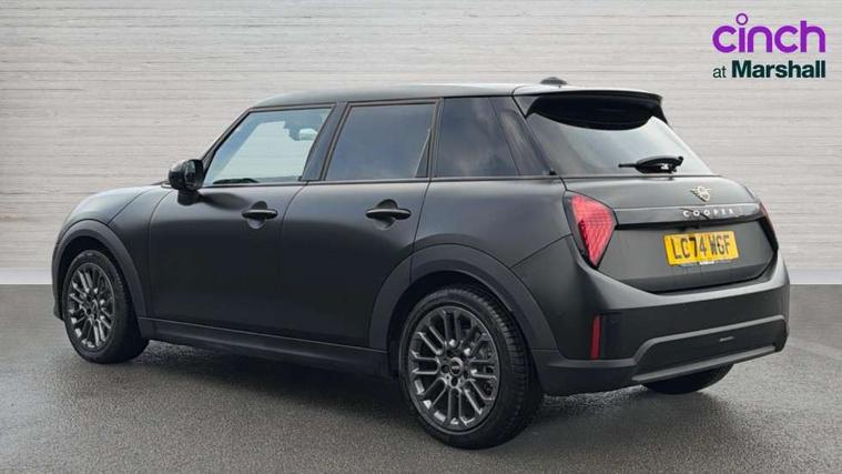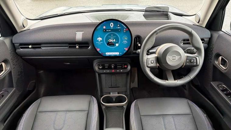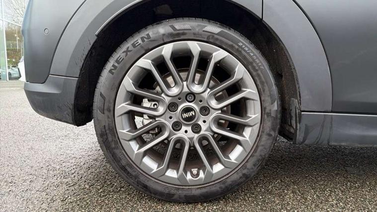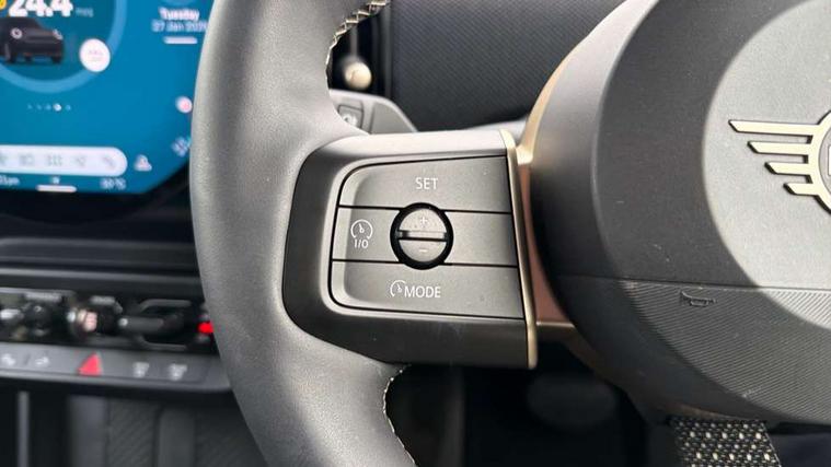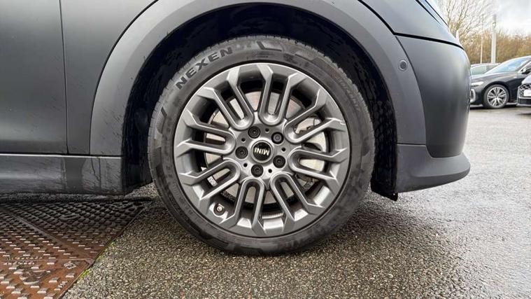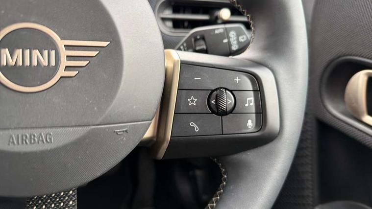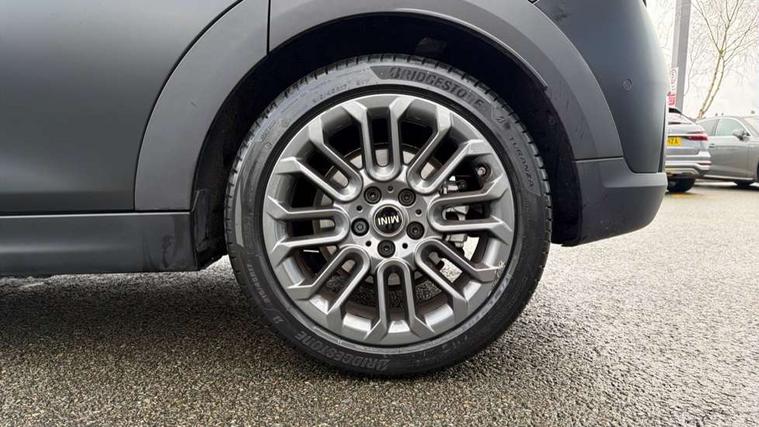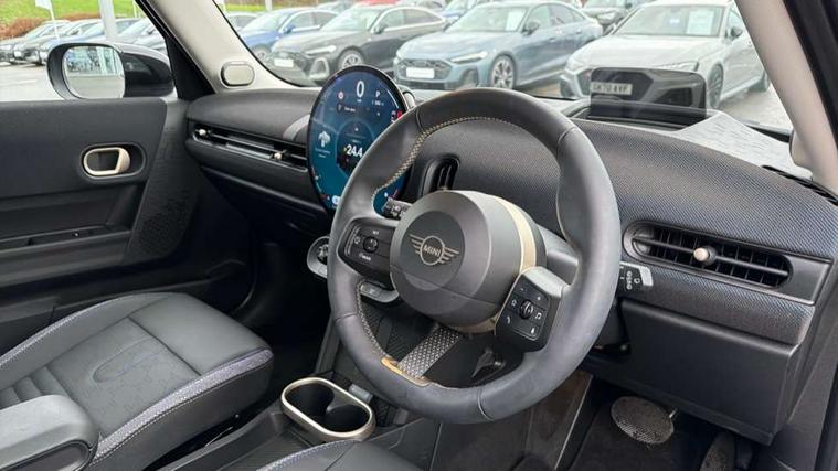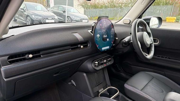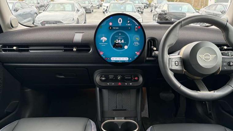 Central toggle bar, Circular OLED Screen, Compatible mobile phone bluetooth with audio streaming, Cruise control, Digital instrument cluster, Electro-mechanical speed dependant steering assistance, Emergency call service, MINI Experience Modes, Mini navigation system, On board computer, Service interval indicator, 7 speed steptronic transmission with double clutch, DAB Digital radio, Personal eSim, Adaptable light signatures, Auto headlights, Electric adjustable heated door mirrors, Electric front+rear windows, Heated rear window, Heated windscreen washer jets, LED daytime running lights, LED indicator lights, LED rear lights, Rain sensor window wipers, Rear fog lights, Rear side wing doors, Rear window wiper, 2 zone automatic air conditioning, 3 seat bench in 2nd row, 60/40 rear seat bench, Ambient lighting, Cupholders, Floor mats, Front and rear head restraints, Front compact armrest, Heated steering wheel, Height adjustable passenger seat, Light headliner, Luggage compartment lighting, Single front passenger seat, Sport Vescin Steering Wheel black with vibrant silver accents, Sunvisors with vanity mirrors, Vescin/Cloth upholstery, Driving assistant pack - Cooper Hatchback, Level 1 pack - Mini Hatchback, Park assistant pack - Cooper Hatchback, 3 point seatbelts on all five seats, 6 Airbags - front, side, head and seat belt tensioners, Acoustic pedestrian protection, Anti-lock braking system (ABS), Child locks on rear doors, DSC - Dynamic Stability Control, Electronic parking brake, Front and rear disc brakes, Front ISOFIX (iSize), Front passenger airbag deactivation, Traction control, Tyre pressure monitoring system, Alarm, Immobiliser, Remote central locking, Black/Blue dashboard knit, Tyre repair kit,