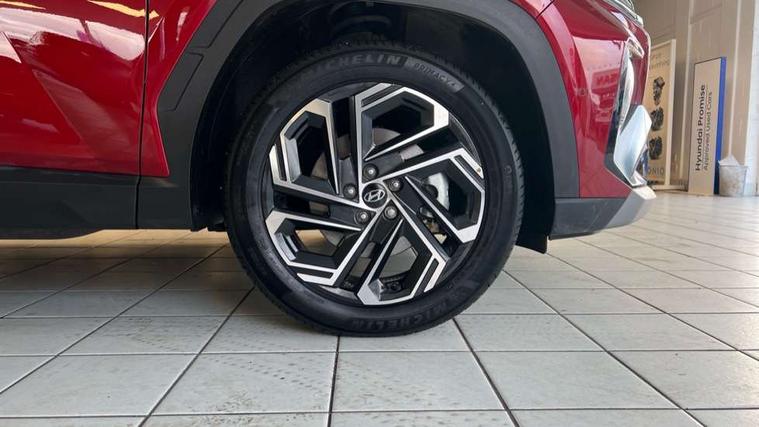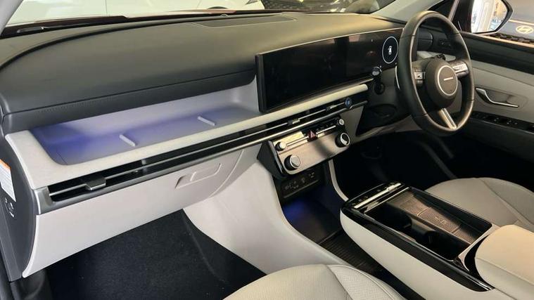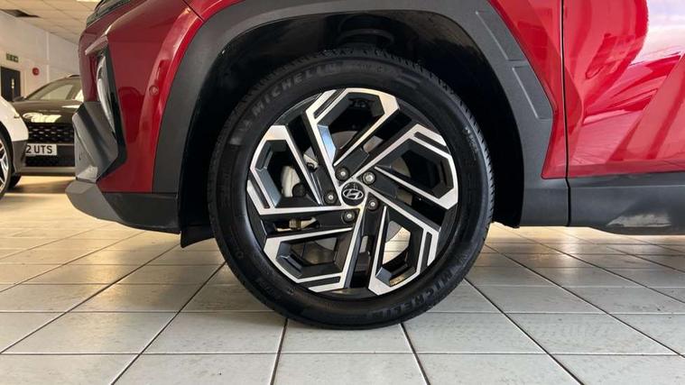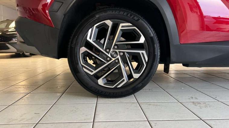12.3" LCD display with driver's supervision instrument cluster, 12.3" widescreen navigation with bluelink and mapcare, Blind spot view monitor, Bluetooth system, Cruise control - smart adaptive speed control with stop and go function, Digital clock, Drive mode selector, Driver attention warning, E-call, Emergency stop signalling system, Forward Collision Avoidance Assist (FCA) - Car, Pedestrian and Cycle, Forward Collision Avoidance Assist Junction Turning (FCAJX), Front and rear parking sensors, Front, rear and side parking distance warning, Highway Driving Assist (HDA), Hyundai road side assistance, Intelligent speed limit assist, Lane follow assist, Lane keep assist, Over the air updates(OTA), Parking collision avoidance assist (PCA), PAS, Rear camera and guidance parking system, Rev counter, Smart power tailgate, Surround view monitor, Tailgate open warning light, Trip computer, Trip odometer, Voice recognition, Water temperature gauge, Windscreen washer fluid sensor and warning indicator, Wireless Apple CarPlay/Android Auto, Wireless phone charging pad, 2 front and 2 rear USB-C ports, DAB Digital radio, Krell premium audio system with 8 speakers and subwoofer, Steering wheel mounted audio/phone controls, Adjustable intermittent front windscreen wipers with aero wiper blade, Auto dimming rear view mirror, Automatic defog system, Automatic headlights with dusk sensor, Automatic windscreen wipers with rain sensor, Black wheel arches, Body colour bumpers, Body colour door mirrors with integrated indicators, Body colour exterior door handles, Electric tilt/slide panoramic sunroof, Electrically adjustable, heated and power folding door mirrors, Follow me home headlights, Front and rear electric windows with anti-trap mechanism and one touch control, Front fog lights, LED 3rd brake light, LED daytime running lights, LED rear lights, Matrix LED headlights, Positioning Lights - LED, Privacy glass - Rear windows and tailgate, Rear side wing doors, Rear wash/wipe with intermittent wipe setting, Roof rails, Tinted glass with windscreen shade band, Trailer stability assist, 12V power outlets in front console and luggage compartment, 3 seat bench in 2nd row, 40/20/40 split folding rear seat, 64 colours interior ambient lighting, Adjustable head restraints (Up and down), Cupholders in rear armrest, Door courtesy lights, Driver and passenger sunvisors with illuminated LED vanity mirrors, Driver's seat electric adjustments, Driver's seat memory, Front and rear door pockets, Front armrest with storage box, Front centre console and door bottle holders, Front passenger's seat electric adjustments, Heated front seats, Heated rear seats, Heated steering wheel, Height/reach adjustable steering column, Illuminated/air conditioned glove compartment, ISOFIX child seat anchorage points attached on outer rear seats, Leather upholstery, Leather wrapped steering wheel and gear knob, Luggage compartment lighting, Luggage cover, Luggage hooks, Luggage net, Map and reading lights, Rear seat remote folding function, Rear side window sunblind, Reclining rear seats, Retractable load cover, Single front passenger seat, Sunglasses holder, Three zone climate control, Touch sensitive climate controls with temperature dials, TUCSON branded metal door scuff plate, Underfloor boot compartment, Ventilated front seats, Trailer wiring package - Tucson, 3x3 point rear seatbelts, Active bonnet, Airbag - Front, front side, curtain and centre front airbags, Anti-lock brake system (ABS), Brake assist function, Childproof rear door locks, Curtain airbag roll over sensor, Downhill brake control, Electric parking brake, Electronic stability control, Front and rear seatbelt reminder, Front passenger airbag deactivation switch, Front seatbelt pretensioners, Hill start assist control (HAC), Multi-Collision braking, Outer rear seatbelt height adjustment, Seatbelt height adjustment for front seats, Traction control, Tyre pressure monitoring system with individual tyre pressure display - TPMS, Vehicle stability management, Deadlocks, Immobiliser, Locking wheel nuts, Remote control central locking, Smart key with keyless entry and engine start/stop button, Speed sensitive auto door locking, Thatcham category 1 alarm, 19" Alloy wheels, Tyre repair kit,