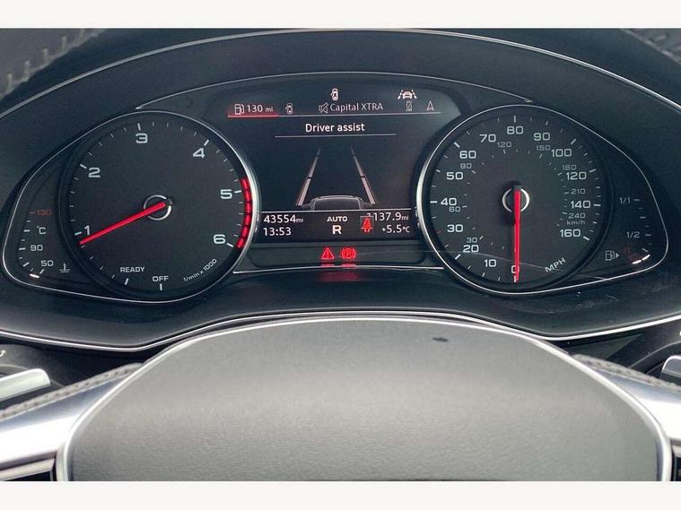 7" high resolution colour driver information display system, Audi connect safety and service (e-call), Audi drive select, Audi smartphone interface, Automatic start/stop system with coasting functionality, Bluetooth interface, Lane departure warning system, MMI navigation with MMI touch + twin touch screens 8.8" and 8.6" with haptic and acoustic feedback, Power operated tailgate, Progressive steering, Service interval indicator, Voice control system, Diesel particulate filter, Audi music interface, Auxiliary input socket, DAB Digital radio, MMI radio plus with CD player, SD card slot, USB connection, Aluminium roof rails, Body coloured door mirrors, Electric front/rear windows, Frameless auto dimming interior rear view mirror, Headlight washers, Heat insulating glass in side and rear windows, LED signature front daytime running light, Matt black side air intake grille with inlay in matt aluminium, Radiator grille in titanium black matt, single frame in chrome and horizontal struts in matt aluminium silver, Rain and light sensors, S line air inlet design with inlay in matt aluminium, S Line badge on front fender, S Line front and rear bumpers, S line rear diffuser and grille in matt black with matt aluminium tailpipes, S Line roof edge spoiler, S Line side skirts, Signature rear LED light design, Windscreen with acoustic glazing, 4 way electric lumbar support for driver and front passenger, 40/20/40 split folding 3 rear seat bench in 3 parts with rear centre armrest, Black cloth headlining, Electrically adjustable front seats with driver memory, Front centre armrest, Front head restraints, Illuminated door sill trims with S logo, Illuminated sun visors with vanity mirrors, ISOFIX child seat mounting and Top Tether with front passenger airbag deactivation, Leather gear knob, Leatherette on upper instrument panel and door shoulders, Luggage compartment system, Rear headrests, S line front and rear floor mats with contrast stitching, Stainless steel pedals and foot rest, Tool kit and car jack, LED Interior Ambient Lighting Pack - A6, Non smoking pack - A6, 3 point seatbelts on all seats, Airbags - Front side, front and rear including head, Audi pre-sense front, EBD - Electronic brakeforce distribution, Electromechanical parking brake, Electronic Stability Control (ESC) including ABS, ASR and EDL, Extended pedestrian protection measures, Seatbelt monitoring, Tyre pressure warning light, Warning triangle and first aid kit, Anti theft alarm with tow away protection, Anti-theft wheel bolts and wheel loosening detection, Immobiliser, Keyless Go, Remote central locking,