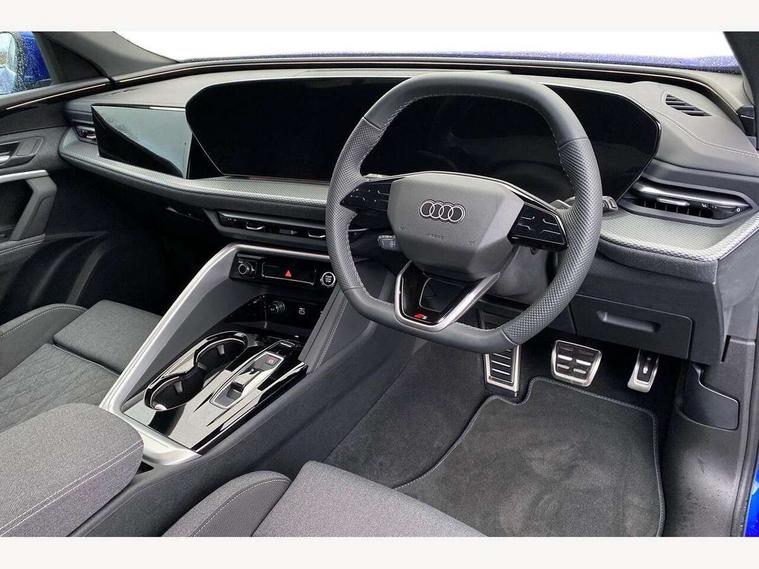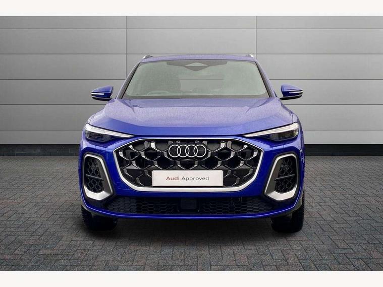 Adaptive cruise control, Attention and drowsiness detection with driver observation, Audi application store, Audi connect emergency call and service, Audi digital key, Audi drive select, Audi smartphone interface, Audi virtual cockpit plus with 11.9" OLED colour display, Camera based traffic sign recognition, Front cross traffic intersection assist, Lane change assistant with exit warning system, rear cross traffic alert and rear turn assist, Lane departure warning system, MMI navigation plus with high resolution 14.5" OLED touchscreen colour display, Park assist plus, PAS, Reversing camera, Swerve assist and front turn assist, Traffic sign based speed limiter, Audi sound system impressive sound with 8 loudspeakers including centre speaker and subwoofer, 6-channel amplifier with a total output of 180 watts, DAB Digital radio, Smartphone compartment with wireless charging, Aluminium roof rails, Auto dimming rear view mirror, Body coloured door mirrors, Electrically adjustable heated and folding + automatically dimming exterior mirrors, Front and rear electric windows, Front door sill trims with aluminium inlays, illuminated with 'S' logo, Grill frame, inlay and front air inlets in matt anthracite chrome, Headlight cleaning system, Heated rear window, High beam assist, High gloss window surrounds, LED headlights plus incl. digital DRL, dynamic coming and leaving home function with turning/all weather/motorway/manouevring and intersection lights, LED rear lights pro incl. dynamic rear indicators and illuminated light strip with animated coming and leaving home function, Logo projection light in exterior mirrors, Privacy glass, Projection third brake light for rear window in LED, Radiator grille in phantom black, Rear and side windows with heat insulating glass, Rear honeycombe grille in matt black with inlay in matt anthracite chrome, Rear side wing doors, Rear wash/wipe, S Line badge on the front wings, S line bumpers in contrasting Volcano grey metallic paint finish, Windscreen with acoustic glazing, 3 rear head restraints, 3 seat bench in 2nd row, 3 spoke leather steering wheel with multi-function buttons with touch control, flattened on top and bottom, with S badging and contrast stitching, 4 way electric lumbar support for driver and front passenger, Black carpets, Comfort centre armrest front, Deluxe 3 zone electronic climate control, Front and rear floor mats, Front sport seats with integrated head restraints, Headlining in black cloth, i-Size child seat mounting on the front passenger side and outer rear seats, i-Size and top tether on the outer rear seats, Increased charging capacity for USB ports 2X100 Watts in rear, 2X60 Watts in front, Interior trim in aluminium look, Luggage compartment lid, electrically opening and closing, Manual steering column adjustment, S embossed logo on front sport seats, Single front passenger seat, Softwrap in black, Stainless steel pedals and footrest, Steering wheel grips in perforated leather and shift paddles, Ambient lighting package plus - Q5, Rear seat bench plus pack - Q5, Storage and luggage compartment pack with luggage net - Q5, 3x3 point rear seatbelts, ABS, Acoustic vehicle alerting system, Convenience key with safelock, Driver and front passenger airbag with passenger airbag deactivation, Electric child safety locks, First aid kit with warning triangle and high visibility vests, Front emergency brake assist, Front side airbags with head airbag system and front interaction airbag, Hill hold assist, Rear seat occupant reminder, Tyre pressure loss indicator, Anti-theft wheel bolts, Thatcham approved category 1 anti theft alarm, Accent surfaces and control buttons in gloss black, Anthracite matt brushed aluminium inlays with linear embossing, Black dashboard with contrast stitching, Upper and lower interior elements in artificial leather, Tyre repair kit,