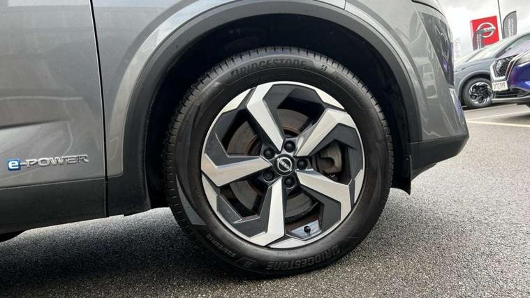 Android auto/Apple CarPlay (Wired), Blind spot warning, Drive modes (sport, normal, eco), Electric speed sensitive power steering, Emergency and breakdown call, Front and rear parking sensors, Full Digital 12.3" TFT Digital Combimeter, Google maps services - search, weather, 3D maps and Google street view, Idle stop/start system, Intelligent around view monitor, Intelligent Cruise control (ICC), Intelligent driver alert system, Intelligent forward collision warning, Intelligent lane intervention, Lane departure prevention, Lane departure warning system, Maximum speed limiter, Moving object detection, Nissan connect 12.3 inch touchscreen infotainment system, Nissan connect navigation, Push button starter, Rear cross traffic alert, Rear view camera, Remote control services - door locks, lights, horn and car locator, Telematics - notifications and connectivity services, TomTom live traffic services, Traffic sign recognition with legal speed adjustment, Trip computer, Virtual personal assistant and firmware over the air capability, Wireless apple carplay, 6 speakers, AM/FM audio system with DAB, Bluetooth audio streaming, Front USB connections (Type-A and Type-C), Rear USB charging only ports (Type-A and Type-C), Auto dimming rear view mirror, Auto rear wiper when reversing, Automatic hazard signal with emergency stop signal, Body colour mirror caps, Body coloured door handles, Bodyside mouldings, Chrome side window finisher, Door handle with button, e-POWER badging, Electric auto folding door mirrors, Electrically adjustable and heated door mirrors with LED turn indicator, Follow me home headlights, High beam assist, Intelligent auto headlights, LED daytime running lights, LED Headlights, LED rear lights, One touch front and rear electric windows with remote opening and closing, Partially body coloured bumpers, Privacy glass, Rear bumper with graphite insert, Rear reversing light (bulb lighting), Rear roof spoiler, Rear side wing doors, Rear styling plate, Shark fin antenna, Splash free rain sensing wipers, Super UV and infrared cut glass, Three blink turn signal, 12v power socket in dashboard and luggage, 2x Rear coat hooks, 3 bench rear seats in 2nd row, 3 rear headrests, 4 folding assist grip, 6-way manually adjustable driver's seat, 60/40 split folding rear seat bench, Ambient lighting around centre console, Centre console storage tray, Chrome interior door handles, Cloth monoform upholstery, Driver and front passenger sunvisors with illuminated vanity mirrors, Driver seat back pocket, Dual zone automatic climate control with pollen filter, e-POWER shifter, Front and rear door storage, Front centre console and armrest, Front cupholders x 2, Front door with bottle holders, Glovebox with light, Hard trunk cover, Height adjustable driver's seat, Height adjustable front headrests, Height adjustable passenger seat, Leather steering wheel, Luggage board system, Luggage space lighting, Manually adjustable passenger (slide recline + lifter), Multifunction steering wheel, Passenger seat back pocket, Rear armrest with 2 cupholders, Rear door bottle holders, Single front passenger seat, Soft PVC kneepad, Steering wheel switches, Sunglasses holder, Tilt/telescopic adjustable steering wheel, Two rear isofix child seat anchorage points with top tether, Welcome light and console tray ambient lighting, 3x3 point rear seatbelt pretensioners + load limiters, ABS with EBD and brake assist, Active brake limited slip, Auto hold function, Child locks on rear doors, Curtain and front side, far side airbags, Driver and passenger airbags, Driver, passenger and 2nd row rear seat belt reminder, Electronic parking brake, Front seatbelt pretensioners + load limiters, Height adjustable front seatbelts, Hill start assist, Intelligent blind spot intervention, Intelligent front emergency braking with pedestrian, cyclist recognition and junction assist, Intelligent rear automatic braking, Tyre pressure monitoring system, Vehicle dynamic control, Capless fuel filler, Engine immobiliser, Intelligent Key, Remote central door locking with deadlocking, Thatcham Cat.1 alarm, Interior instrumental panel B finisher, 18" Diamond cut alloy wheels, Tyre puncture repair kit,