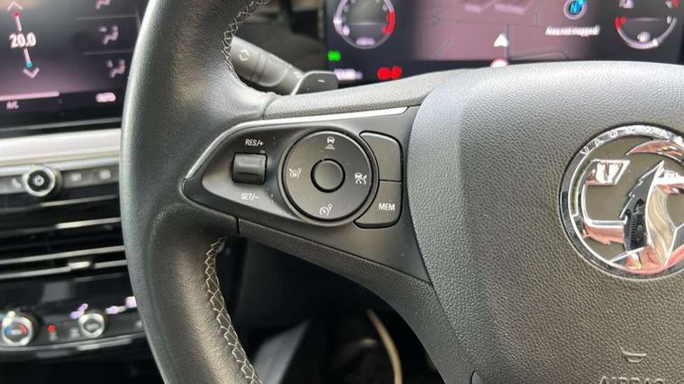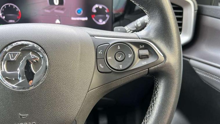 12" digital instrument cluster, Automatic adaptive cruise control, Central facia display with digital clock, outside air temperature and audio information, Driver drowsiness alert system, Engine start/stop button, Front and rear parking distance sensors, Front camera system, Lane keep assist system (LAS) with Lane departure warning system (LDWS), Lane positioning assist, Lights on audible warning, Multi function trip computer, Panoramic rear view camera, Power assisted speed sensitive steering, Side blind spot alert and flank guard, Smartphone integration compatible with Apple CarPlay and Android Auto, Speed sign recognition, Start/stop system, Vauxhall connect with e-Call, 8 speed automatic transmission, Bluetooth A2DP audio streaming function (Advanced audio distribuition profile), Flexible Roof Mounted Radio Aerial, Front USB connection, Mobile phone portal - bluetooth connect, vehicle microphone, handsfree calls, SMS read out and reply, phone book access, Multimedia Navi pro infotainment with satellite nav, 10" colour touchscreen, 6 speakers, DAB radio, 12" instrument panel, Apple carplay/Android auto, Steering wheel mounted controls, Two rear USB sockets, Adaptive brake lights, Automatic lighting control with tunnel detection, Automatically dimming anti dazzle rear view mirror, Black door mirror housings, Black rear spoiler, Body colour door handles, Body colour front and rear bumpers, Chrome effect skid plates, Chrome effect upper window moulding, Electrically adjustable, heated and folding door mirrors, Electrically operated front and rear windows with safety auto reverse and one touch up/down facility, Hazard warning lights, Heated rear window+rear wash/wipe, High beam assist, LED daytime running lights, LED front fog lamps, LED side repeat indicators, LED tail lights, Manual headlamp level control, Rear foglight, Rear side wing doors, Reversing light, Solar heat absorbing windows, Solar heat absorbing windscreen and windows, Two speed rain-sensitive windscreen wipers with variable intermittent wipe, Windscreen and side window demist vents, 12V Accessory socket, 3 seat bench in 2nd row, 3 spoke flat bottomed leather steering wheel with satin chrome bezel, 4 speed fan with illuminated controls, 6 way manual adjustable driver fore/aft, up/down with reclining seatback, 6 way manual adjustable front passenger fore/aft, up/down with reclining seatback, Air recirculation system, Cabin particulate filter - removes dust, airborne particles and pollen, Centre console with two cup holders at front and one in rear, Chrome effect interior door handles, Door pockets with two litre capacity, Driver and passenger sun visors with vanity mirror, Electronic climate control (ECC), Fabric/Leather effect upholstery, Four adjustable facia vents, Four load restraint lashing eyes, Front centre armrest with storage, Front map reading lights, Front seat back storage pockets, Fully carpeted load area, Heated front seats, Heated steering wheel, Height adjustable front/rear head restraints, Illuminated load area, Interior courtesy light, Interior tailgate handle, Luggage compartment cover, Luggage compartment lighting, Reach + rake adjustable steering column, Single front passenger seat, Twin gas assisted tailgate struts, 2x Isofix child seat fitting on outer rear seats, 3x3 point rear seat belts, Anti-lock braking system (ABS), Automatic emergency city braking, Child proof locks on rear doors, Cornering brake control, Deactivation switch for front passenger front and side impact airbags, Drag torque control, Driver and front passenger airbags, front seat side impact airbags, full size curtain airbags, Electronic brake force distribution, Electronic Stability Programme (ESP), Emergency brake assist, Forward collision alert at all speed, Hill start assist, Inertia reel lap and diagonal seatbelts for all seats, Seatbelt unfastened audible warning and warning light, Straight line stability control, Traction control, Tyre pressure monitoring system, Electronically protected audio equipment, Freewheeling door locks, Immobiliser, Key left in ignition audible warning, Keyless entry and start, Locking wheel nuts, Remote control central locking, Remote control ultrasonic security alarm system, Visible vehicle identification number, Atlantis black trim inserts of front doors, Black facia with silver trim insert, Instrument panel bar in Light Gravel, 17" bi colour alloy wheels,