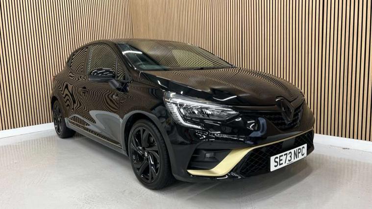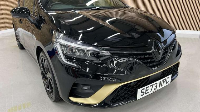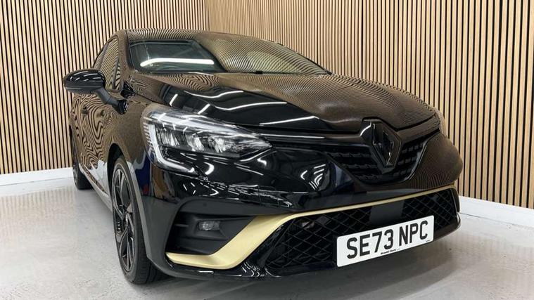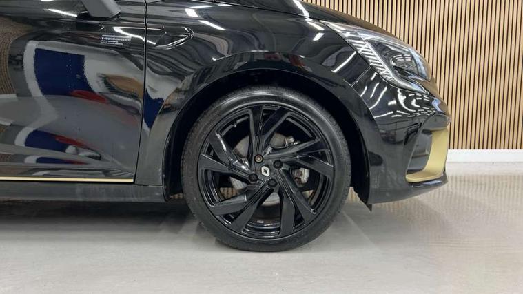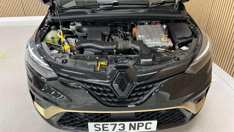 10" driver information display cluster, Apple car play/Android Auto, Cruise control + speed limiter, E-call, Easy link navigation with 9.3" touchscreen+4x20W amplifier+FM DAB double tuner, sound auditorium, 2xUSB/1xjack/bluetooth, smartphone integration plus, Eco mode driving function, Emergency call system, Front parking sensors, Gear change indicator, Lane departure warning system, Lane keep assist, Over speed prevention warning, Rear parking sensors, Rear view camera, Traffic sign recognition, Trip computer, Variable assistance electric PAS, E-TECH battery, Auto dimming rear view mirror, Auto high beam assist, Auto light control and rain sensing wiper, Automatic headlights, Black Renault logo front and rear, Black wing mirrors, Body colour door handles, Bumpers - gold styling elements, Chrome front grille, Drivers one touch window with anti-pinch feature, E-TECH badging, gold sports front bumper, sports lower grill, side and rear E-TECH engineered markings and gold detailing, Electric front windows, Electric rear windows, Exterior rear hidden door handles, Extra tinted glass on rear windows + tailgate, Front and rear LED roof light x 2, Full C-shape LED front and rear signature lighting, Full LED front and rear headlamps integrating daytime running lights at the front and rear, Gun Metal insert on lower side doors with Clio embossing, Heated rear windscreen, LED front fog lights, LED reverse light, LED third brake light, Manual folding wing mirror mechanism, Manually adjustable door mirrors, Rear fog lights, Rear roof spoiler - gold styling elements, Rear side wing doors, Rear wiper, Shark fin antenna, Variable speed on front windscreen wipers, 12V Accessory socket, 3 rear height adjustable headrests, 3 seat bench in 2nd row, 6.2L front glovebox, 60/40 split and fixed base rear seat bench, Air recirculation control, Auto climate control, Black headlining, Black hooks on boot floor x 4, Centre console with storage and armrest, Dark roof lining and aluminimum pedal set, E-TECH Engineered interior trim including airvent gold stripe, renault diamond gold surround and gearshifter with gold stitching, Fabric upholstery, Front cupholders, Front decor strip in red, Front door storage bin, Height adjustable front headrests, Height/reach adjust steering wheel, Isofix system on outer rear seats, Luggage nets in boot, Mechanical height adjustable front seats, Multi function steering wheel, Multisense including ambient lighting and selectable drive modes, Pollen filter, Single front passenger seat, Sun visor without light, Synthetic leather steering wheel, System for Restraint and Protection SRP-front seats, 3 point seatbelts on all rear seats, ABS, AEBS - active emergency braking system, BAS (Brake Assist System), Curtain airbags, Distance warning alert, Driver and passenger front and side airbag deactivation, Driver/Front Passenger airbags, Electronic parking brake with auto hold, ESC - Electronic Stability Control + traction control, Front side airbags(head+thorax), Height adjustable driver's seatbelt, Seatbelt warning, Tyre pressure warning, Deadlocking system, Hands free key card with push button, start and stop function, Locking fuel filler cap, RAID (Renault Anti-Intruder Device) with automatic door locking, Rear side wing door and window child locking function (front driver door control panel), Remote central locking with thatcham approved immobiliser, Upper dashboard soft covered with positive thermoforming type 2, 17" E-TECH Engineered Diamond Cut Alloy with Gold Inserts,