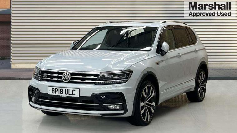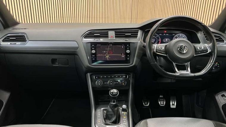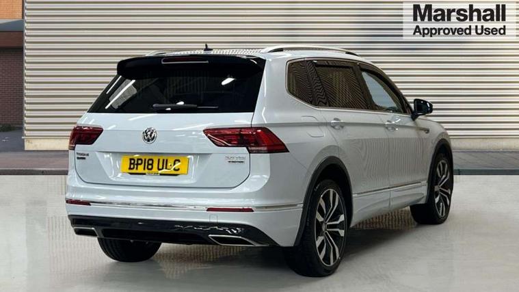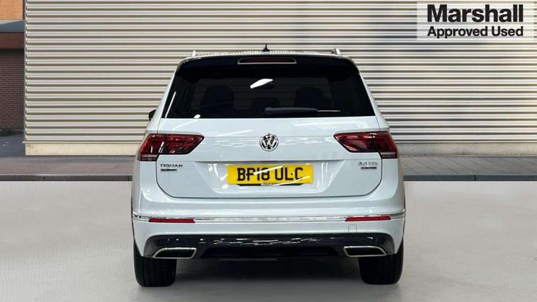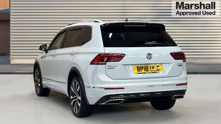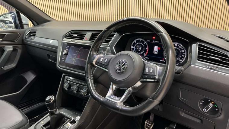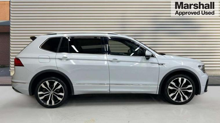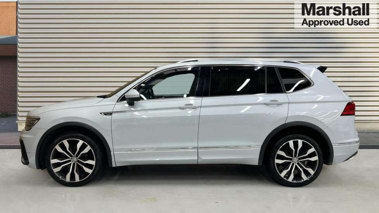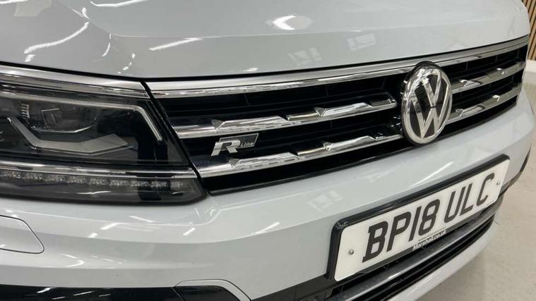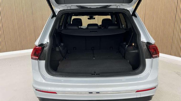 Active information display, Adaptive cruise control, App-Connect, Bluetooth phone integration system, Drive mode selector, Driver profile selection, Fatigue detection system, Front and rear parking sensors, Fully electric tailgate + keyless entry and start, Instrument cluster, Lane assist, Low washer fluid warning light, Outside temperature display, Progressive power assisted steering, Service interval indicator, Speed limiter, Warning lights, Diesel particulate filter, Sports suspension, XDS electronic differential lock, 2x USB sockets in front, 8 Speakers, Aux-in socket, DAB Digital radio, SD card slot, 3D effect LED rear lights, Auto dimming interior mirror, Automatic activation of hazard warning lights, Body colour door handles, Body colour door mirrors, Body colour rear spoiler, Body colour side skirt, Body coloured bumpers, Chrome side window surrounds, Chrome trimmed radiator grille, Coming/leaving home lighting function, Dual chrome exhaust, Dusk sensor + auto driving lights, Electric folding door mirrors, Electric heated + adjustable door mirrors, Electric panoramic sunroof with sunblind, Front and rear electric windows, Heated rear window, LED headlights with dynamic light assist daytime running lights and cornering front fog lights, Piano black rear diffuser, R Line body kit, Rain sensor windscreen wipers, Rear tinted windows from B pillar back, Rear windscreen washer and wiper with interval delay, Silver roof rails, Silver under body guard, Trailer Stability Programme, Windscreen wipers/ intermittent wipe + 4 position delay, 12V Accessory socket in centre console, 12V socket in luggage compartment, 2 head restraints in 3rd row, 2 individual 3rd row seats, 3 head restraints in 2nd row, 3 zone climate control, 4 load lashing points, 40:20:40 split folding rear seats, Bag hook in luggage compartment, Black headlining, Driver + front passenger lumbar support, Foldable passenger seatback, Front + rear carpet mats, Front centre armrest with 12v socket, Front centre armrest with storage + rear 2 air vents + cupholders, Front seatback folding tables, Height/reach adjust steering wheel, Illuminated driver/passenger vanity mirrors, Illuminated scuff plates, Interior light with delay, Isofix Preparation 2 Rear child seats, Leather gear knob, Load through provision with 2 cupholders when folded, Lockable cooled glovebox, Luggage compartment lighting, Luggage compartment side storage, Map pockets on front seats, Passenger seat height adjuster, Rear cupholders, Removable luggage cover, Sliding/reclining rear seats, Stainless steel pedals, Storage compartment in driver's door, Storage compartment in passenger's door, Storage tray on dashboard, Sunglasses storage, Variable boot floor, Ambient lighting pack - Tiguan, 3 point seatbelts on all seats, ABS+EBD+Brake assist, Active bonnet, Active pedestrian safety system, Curtain airbags, Driver/Front Passenger airbags, Driver/Passenger whiplash optimised head restraints, Drivers knee airbag, DTC - Drag torque control, Electronic parking brake with auto hold, ESP with EDL + ASR, First aid kit, Front assist including city emergency braking, Front side airbags, Head airbag system, Height adjustable front 3 point seatbelts + pretensioners, Hill hold control, Passenger airbag deactivate switch, Passenger knee airbag, Pre crash system, Rear side airbags, Seatbelt warning lamp and buzzer, Two tone horn, Warning triangle, Alarm with interior protection, Electronic engine immobiliser, Remote central locking with 2 remote folding keys, Chrome door trim inserts, Piano black interior trim, 20" Suzuka alloy wheels + anti theft wheel bolts, Steel space saver spare wheel,