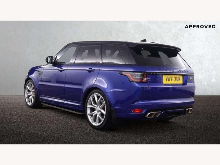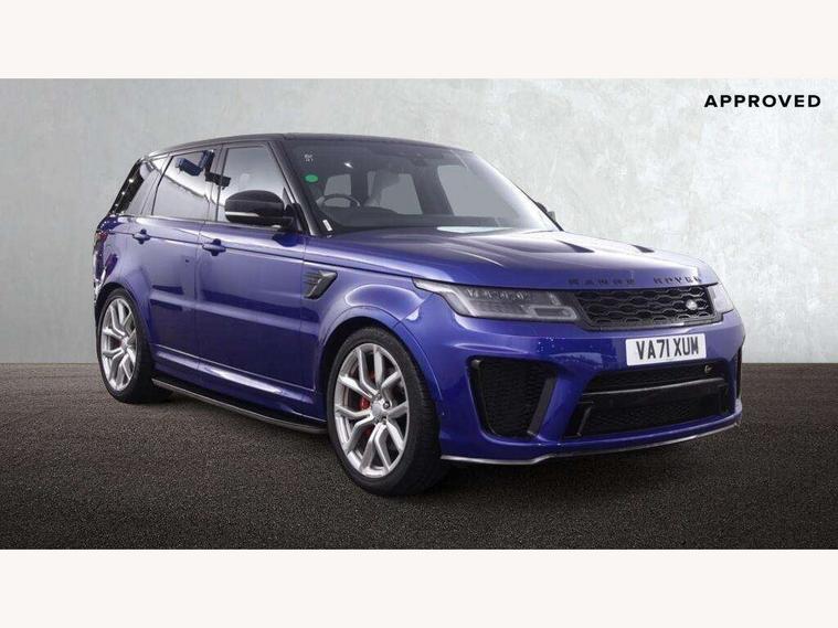 360 Parking aid, All Terrain Info Centre, Android Auto, Apple car play, Bluetooth connectivity, Clear exit monitor, Driver condition monitor, Electric power assisted steering (EPAS), Incontrol apps in vehicle touchscreen, Interactive Driver display instrument cluster, Mist sensor, Navigation pro system with 10" touch screen, app interface and media storage, Powered gesture tailgate/boot lid, Pro services and wifi hotspot, Push button start, Rear traffic monitor, Remote premium - Upgraded Incontrol remote app including remote climate control (engine dependent), remote lock + Unlock and remote beep + flash, Touch pro duo system, Traffic sign recognition with adaptive speed limiter, Trip computer, Adaptive dynamics, All terrain progress control, Configurable dynamics, Electronic active differential with brake torque vectoring, Gradient release control (GRC), SVR sports suspension with dynamic response (active roll control), Terrain Response 2 with dynamic program, Twin speed transfer box, Bluetooth audio streaming, DAB Radio (Digital Audio Broadcasting), Incontrol protect - SOS emergency call with automatic collision detection, optimised assistance call and Incontrol remote app essential, USB/aux input socket, Acoustic front and toughened rear side glass, Acoustic laminated front windows, Active exhaust system with integrated exhaust mounted quad tailpipes, Adaptive brake lights, Auto dimming interior rear view mirror, Automatic headlights, Body coloured side sills and bumpers corners, Centre high mounted stop light, Electric windows with one touch open/close and anti trap, Electrical towing preparation, Follow me home lighting, Front and rear recovery eyes, Headlight power wash, Heated rear window, Heated windscreen includes heated washer jets, Illuminated metal treadplates with brand name script, LED rear lamps, Power fold, auto-dimming, heated door mirrors with memory and approach lights, Rain sensing windscreen wipers, Rear fog lights, Rear side wing doors, Rear wash/wipe, Remote window closing, Side repeater indicators in mirror, SVR badge, SVR exterior styling, Switchable sports exhaust, Trailer stability assist, Unique light weight exhaust system, 16 way driver/passenger electrically adjustable SVR performance seats with memory, 2 way rear head restraints, 3 seat bench in 2nd row, 4 way lumbar support with memory function, 60/40 split folding rear seat, Aluminium gear shift paddles, Auto air recirculation, Bright metal foot pedals, Centre console with armrest, Climate control memory, Configurable Ambient interior lighting, Customer configurable single point entry, Driver's footrest, Extended leather upgrade includes door top rolls and leather instrument panel mid section, Front and rear cupholders, Front and rear premium carpet mats, Front door storage space, Front map lights, Front seat back map pockets, Front stowage pocket, Front/rear passenger grab handles, Heated steering wheel, Integrated front head restraints, Isofix child seat preparation, Loadspace light, Loadspace mounting provisions, Lockable glovebox, Multifunction steering wheel, Pollen filter, Power socket, Reach/rake electric adjustable steering column + entry/exit tilt away, Rear centre armrest, Rear ISOFIX, Roller blind loadspace cover, Single front passenger seat, Sports pedals, SVR leather steering wheel, SVR Performance seats, Three 12V accessory power outlets, Smartphone pack - Range Rover Sport, 3 point seatbelts on all seats, Anti-lock braking system (ABS), Brake pre-fill technology, Cornering brake control (CBC), Curtain airbags, Customer configurable autolock, DSC - Dynamic Stability Control, Dual stage driver/passenger airbags, EBD - Electronic brakeforce distribution, Electric parking brake, Electronic traction control, Emergency braking includes city, urban AEB and pedestrian, Front seatbelt pretensioners, Gradient acceleration control, Height adjustable front seatbelts, High speed emergency braking, Hill descent control, Hill launch assist, Low traction launch, Passenger seat occupant detector with front airbags, Power operated child locks, Roll stability control, Seatbelt warning, TPMS (Tyre pressure monitoring system), Immobiliser, Intrusion sensor, Keyless entry, Locking wheel nuts, Perimetric and volumetric anti theft alarm, Remote locking,