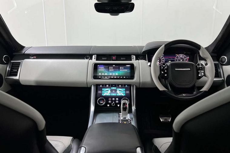 360 Parking aid, All Terrain Info Centre, Android Auto, Apple car play, Bluetooth connectivity, Clear exit monitor, Driver condition monitor, Electric power assisted steering (EPAS), Incontrol apps in vehicle touchscreen, Interactive Driver display instrument cluster, Mist sensor, Navigation pro system with 10" touch screen, app interface and media storage, Powered gesture tailgate/boot lid, Pro services and wifi hotspot, Push button start, Rear traffic monitor, Remote premium - Upgraded Incontrol remote app including remote climate control (engine dependent), remote lock + Unlock and remote beep + flash, Touch pro duo system, Traffic sign recognition with adaptive speed limiter, Trip computer, Adaptive dynamics, All terrain progress control, Configurable dynamics, Electronic active differential with brake torque vectoring, Gradient release control (GRC), SVR sports suspension with dynamic response (active roll control), Terrain Response 2 with dynamic program, Twin speed transfer box, Bluetooth audio streaming, DAB Radio (Digital Audio Broadcasting), Incontrol protect - SOS emergency call with automatic collision detection, optimised assistance call and Incontrol remote app essential, USB/aux input socket, Acoustic front and toughened rear side glass, Acoustic laminated front windows, Active exhaust system with integrated exhaust mounted quad tailpipes, Adaptive brake lights, Auto dimming interior rear view mirror, Automatic headlights, Body coloured side sills and bumpers corners, Centre high mounted stop light, Electric windows with one touch open/close and anti trap, Electrical towing preparation, Follow me home lighting, Front and rear recovery eyes, Headlight power wash, Heated rear window, Heated windscreen includes heated washer jets, Illuminated metal treadplates with brand name script, LED rear lamps, Power fold, auto-dimming, heated door mirrors with memory and approach lights, Rain sensing windscreen wipers, Rear fog lights, Rear side wing doors, Rear wash/wipe, Remote window closing, Side repeater indicators in mirror, SVR badge, SVR exterior styling, Switchable sports exhaust, Trailer stability assist, Unique light weight exhaust system, 16 way driver/passenger electrically adjustable SVR performance seats with memory, 2 way rear head restraints, 3 seat bench in 2nd row, 4 way lumbar support with memory function, 60/40 split folding rear seat, Aluminium gear shift paddles, Auto air recirculation, Bright metal foot pedals, Centre console with armrest, Climate control memory, Configurable Ambient interior lighting, Customer configurable single point entry, Driver's footrest, Extended leather upgrade includes door top rolls and leather instrument panel mid section, Front and rear cupholders, Front and rear premium carpet mats, Front door storage space, Front map lights, Front seat back map pockets, Front stowage pocket, Front/rear passenger grab handles, Heated steering wheel, Integrated front head restraints, Isofix child seat preparation, Loadspace light, Loadspace mounting provisions, Lockable glovebox, Multifunction steering wheel, Pollen filter, Power socket, Reach/rake electric adjustable steering column + entry/exit tilt away, Rear centre armrest, Rear ISOFIX, Roller blind loadspace cover, Single front passenger seat, Sports pedals, SVR leather steering wheel, SVR Performance seats, Three 12V accessory power outlets, Smartphone pack - Range Rover Sport, 3 point seatbelts on all seats, Anti-lock braking system (ABS), Brake pre-fill technology, Cornering brake control (CBC), Curtain airbags, Customer configurable autolock, DSC - Dynamic Stability Control, Dual stage driver/passenger airbags, EBD - Electronic brakeforce distribution, Electric parking brake, Electronic traction control, Emergency braking includes city, urban AEB and pedestrian, Front seatbelt pretensioners, Gradient acceleration control, Height adjustable front seatbelts, High speed emergency braking, Hill descent control, Hill launch assist, Low traction launch, Passenger seat occupant detector with front airbags, Power operated child locks, Roll stability control, Seatbelt warning, TPMS (Tyre pressure monitoring system), Immobiliser, Intrusion sensor, Keyless entry, Locking wheel nuts, Perimetric and volumetric anti theft alarm, Remote locking,