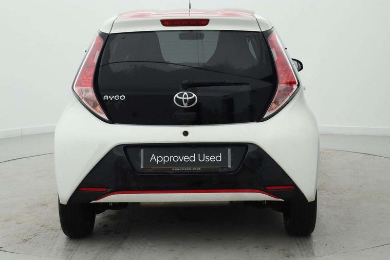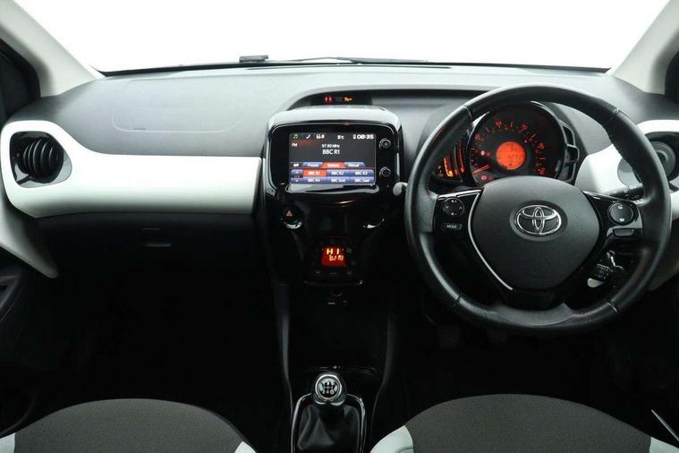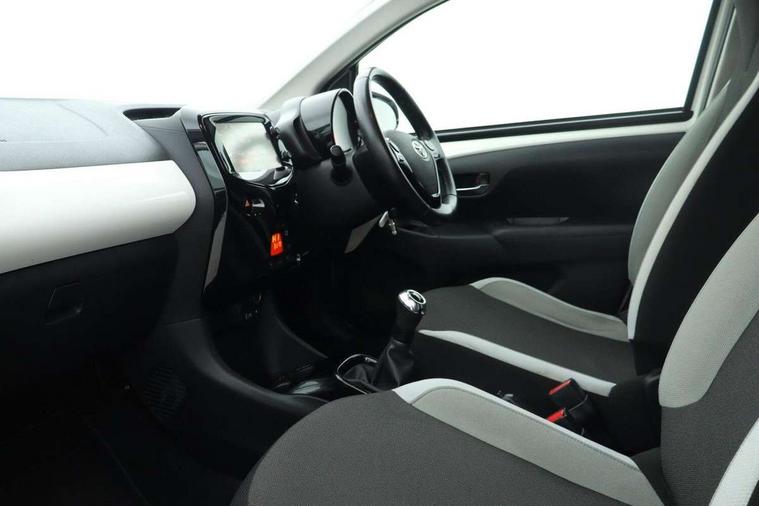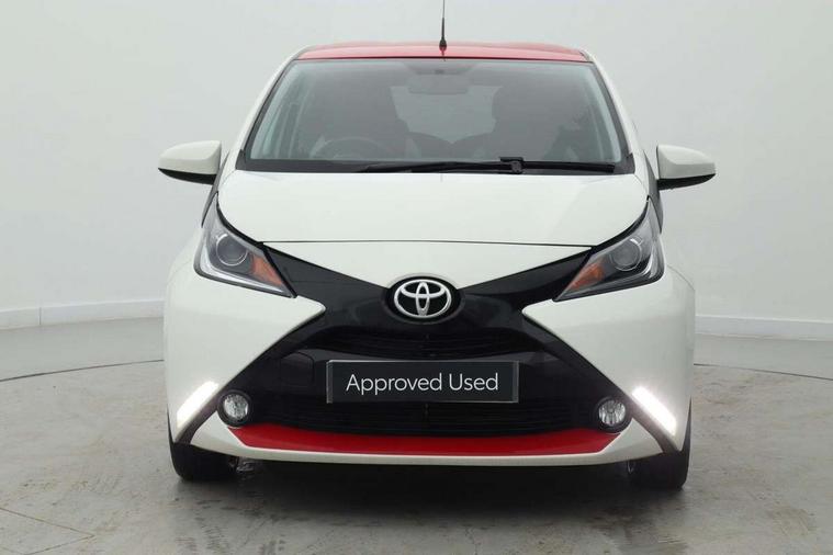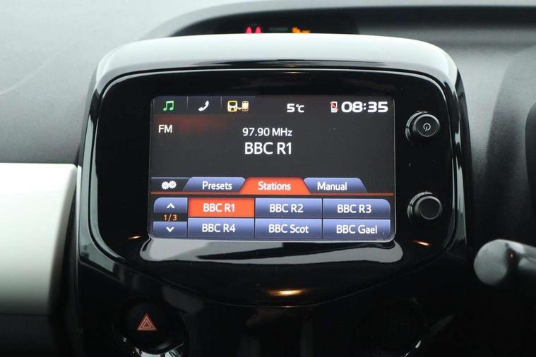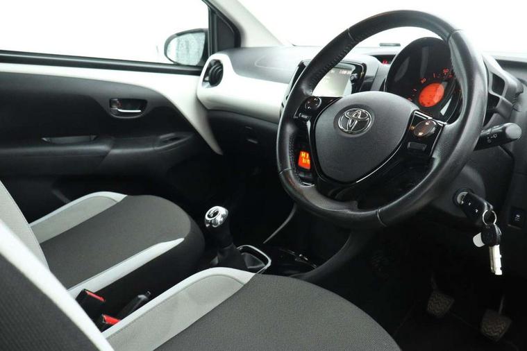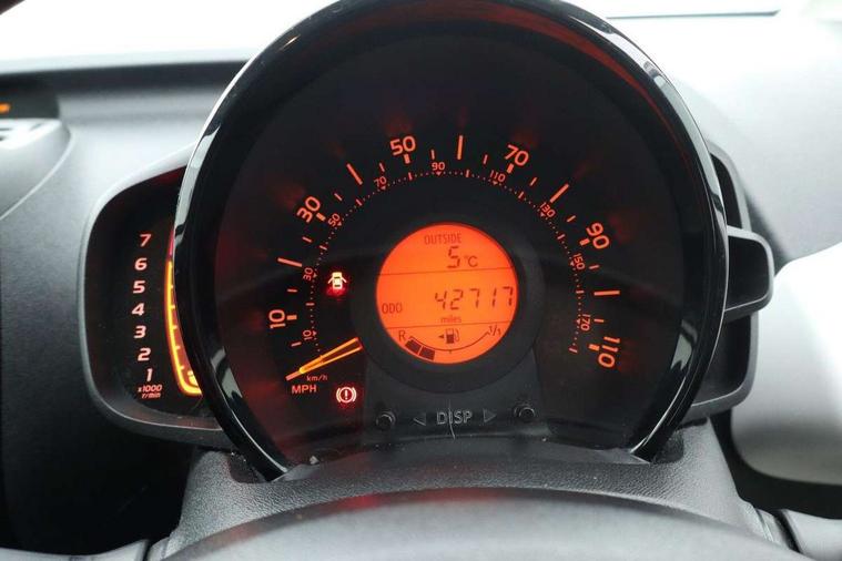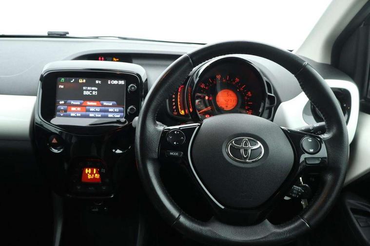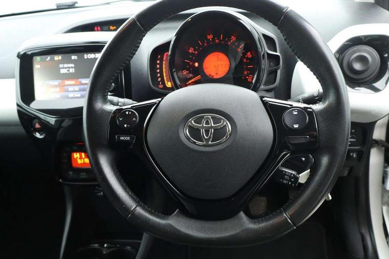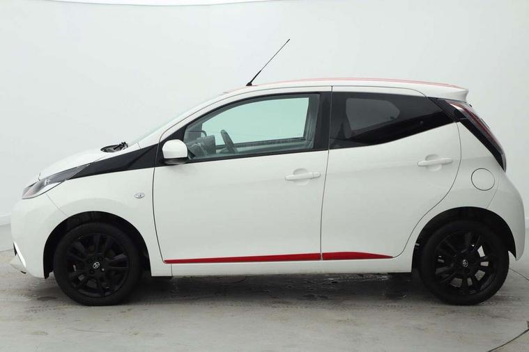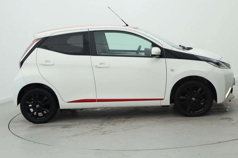 7" touch screen, Bluetooth system, Digital clock, Electric power steering, Fuel indicator with low level warning, Lights on warning, MirrorLink, Rear view camera, Speed limiter, Tachometer, Vehicle Stability Control (VSC), 4 speakers, Auxiliary input socket, DAB Digital radio, Multimedia System, Stereo radio, USB connection, 2 speed wipers/variable intermittent/mist function, Automatic headlights, Body colour bumpers, Body colour door handles, Body colour door mirrors, Electric adjustable door mirrors, Electric front windows, Front fog lights, Green tinted glass, Headlamp levelling, Heated door mirrors, Heated rear windscreen, LED daytime running lights, Privacy glass, Rear spoiler, Rear window demister, Rear wiper, Red front bumper accent, Red roof decal, Red side sills, Roof mounted aerial, 12V Accessory socket, 3 spoke leather steering wheel, 50/50 split folding rear seat, Air recirculation system, Auto air conditioning, Body colour instrument panel, Centre console storage, Chrome insert to gearknob, Chrome interior door handles, Driver and passenger sunvisors, Driver's seat height adjuster, Driver/passenger seat recline/slide adjust, Driver/passenger vanity mirrors with covers, Front and rear door pockets, Front cupholder, Front map reading lights, Front sports seats, Gleam cloth upholstery, Glossy black gear shift surround, Glovebox, Height adjustable front head restraints, Isofix system on outer rear seats, Leather gear knob, Pollen filter, Rear cupholders, Rear headrests, Steering wheel mounted radio/phone controls, Stepless tilt adjustable steering column, Storage bins on all doors, Tonneau cover, Outburst pack red pop - Aygo, ABS, Driver and passenger airbags, ESP, Fasten seatbelt reminder, Front side airbags, Height adjustable front seatbelts with pre-tensioners and load limiters, Hill start assist, Passenger airbag deactivate switch, Rear child proof door locks, Side curtain airbags, Tyre pressure warning, Engine immobiliser, Lockable fuel cap, Remote central locking, Body colour dashboard, Gloss black air vent surround, Gloss black centre console, Tyre repair kit,