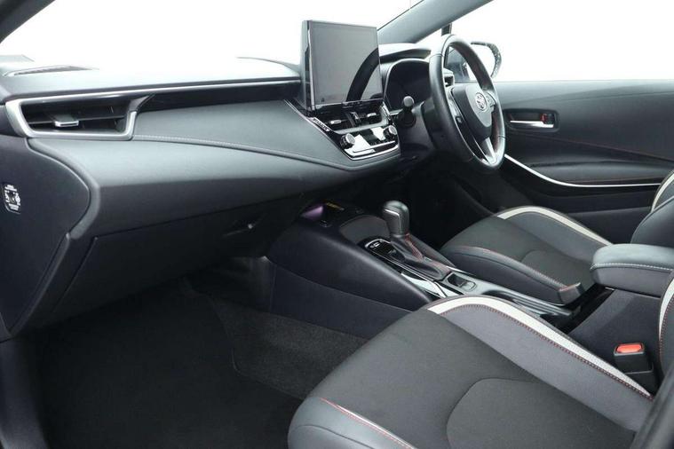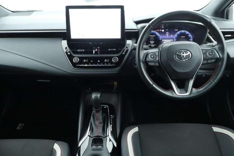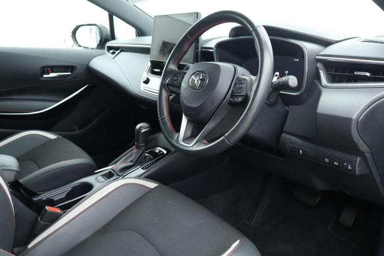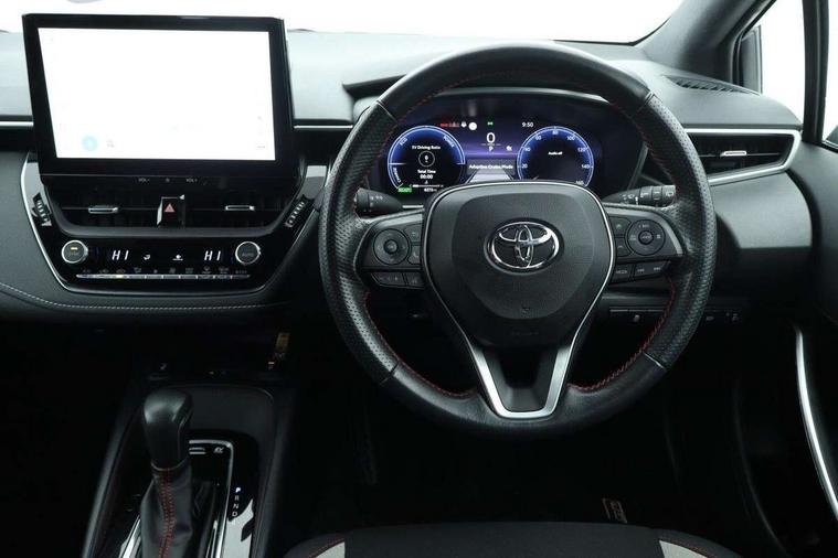 10.5" Multimedia display screen, Bluetooth telephone connectivity, Connected car functionality upgrade, tracker, remote status and e-care, Drive mode select (Eco, Normal), E-call, Electrically assisted power steering, EV drive indicator, Front and rear parking sensors with auto brake, Full Digital 12.3" TFT Digital Combimeter, Key reminder warning, Lane Departure Alert (LDA) switch on steering wheel, Memory on adjustable speed limiter, MyT connected services, Proactive driving assist (PDA), Reversing camera, Smart entry and push button start with GR Logo, Smartphone integration with Apple CarPlay and wired android auto, Tailgate, Toyota remote services, Toyota smart connect navigation, Wireless charger, Gasoline particulate filter, Vehicle Stability Control (VSC), 6 speakers, AM/FM radio, DAB Digital radio, Front USB-C in centre console, Front USB-C in dashboard, Smart voice assist/ Voice recognition, USB and Aux in connectors + 12V front outlet, Anti-jam protection on power windows, Auto up and down function on all power windows, Automatic folding mirrors, Automatic headlights with high beam assist, Black centre and side air vents, Black toyota logo in front, Body coloured bumpers, Body coloured door mirrors, Body coloured outside door handles, Dark chrome lower grille, Electrochromatic mirror, Follow me home headlights, GR Sport dark chrome front mesh grille and black rear grille, GR Sport exclusive under guard, GR sport scuff plates, LED daytime running lights, LED dual beam projector headlights, LED front fog lights, LED High mounted stop light, LED rear combi lights with LED lightguide, Manual headlight levelling system, New grille pattern, Noise reduction layer on windscreen, Piano black diffuser, Power adjustable heated door mirrors, Power front windows, Power rear windows, Privacy glass with UV filter, Rain sensing wipers, Rear side wing doors, Rear window defogger, Rear window wiper, Reverse tilting door mirrors, Rocker and door lower moulding, Roof spoiler, Satin chrome insert on front air vents, Satin chrome insert on front door assist grips, Satin silver front spoiler, Shark fin antenna, Tailgate release with push button, Time adjustment on intermittent wiper, Turning signal integrated indicators in door mirrors, Unique lower skirt, Unique side rocker with black insert, UV-filter on driver and passenger windows, 2 Shopping bag hooks in luggage compartment, 3 rear headrests, 3 seat bench in 2nd row, 3 spoke leather steering wheel with satin insert/red stitching + gear knob, 4 tie down hooks in luggage compartment, 60/40 split folding rear seat, Adaptive cruise control (ACC) switch on steering wheel, Adjustable speed limiter switch on steering wheel, Audio, multimedia and telephone switches on steering wheel, Black armrest on centre console box, Black gear shift console, Boot light, Centre room light, Driver and front passenger personal light, Driver and passenger assist grip, Driver and passenger seatback pockets, Driver and passenger sun visor with mirror and light, Dual zone automatic air conditioning with ECO mode switch, Fabric/synthetic leather upholstery, Front and rear cup and bottle holders, Front door pockets, Front head restraints, Front passenger seat, Front sliding synthetic leather armrest, GR Sports seats with partial leather bolsters, Heated seats, Illuminated entry system in room lamp, ISOFIX seat fixing (2 fixings on rear outer seats), Manual height adjustable for driver and front passenger seat, Manually tilt with sliding driver and front passenger seat, Nanoe-X air purifier, Parcel shelf, Pollen filter, Power window switches with satin chrome inserts, Rear armrest with 2 cupholders, Rear passenger coat hooks (2), Red stitching on gear shift, Remote air conditioning, Satin chrome inside door handles, Satin chrome surround on speedometer, Sliding armrest on centre console box, Slow opening glovebox with lights, Textile floor mats, Tilt/telescopic steering column, Voice recognition switch on steering wheel, Whiplash Injury Lessening (WIL) feature (active headrest) for seats, White ambient lighting on open tray and front cup holder, Toyota safety sense 3 pack - Corolla, 3x3 point rear seatbelts, Adjustable driver and front passenger seat belt extender to top anchor point, Anti lock braking system + Electronic brake force distribution, Brake assist function, Child locks on rear doors, Downhill Assist Control (DAC), Electronic parking brake, Emergency brake light signal (EBS), Front passenger airbag on/off switch, Front seatbelt reminder, HAC - Hill start assist control, Rear seat belt reminder, Seatbelt pretensioners and force limiters, Supplemental restraint system (SRS) 7 airbags - dual driver, dual side curtain, side impact and driver knee airbags, Traction control, Tyre pressure warning system, Acoustic vehicle alert system (AVAS), Alarm with motion sensor and immobilizer, Power passenger window lock, Remote central locking + deadlocks, GR Sport interior styling with accents and exterior styling, Satin chrome dash trim, Soft touch texture on upper dashboard, Stitching on lower dashboard, 18" Black machined face 10 spoke alloy wheels, Tyre repair kit, Unique wheel finish with red wheel cap,