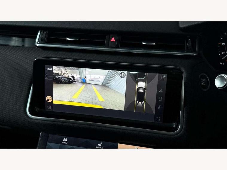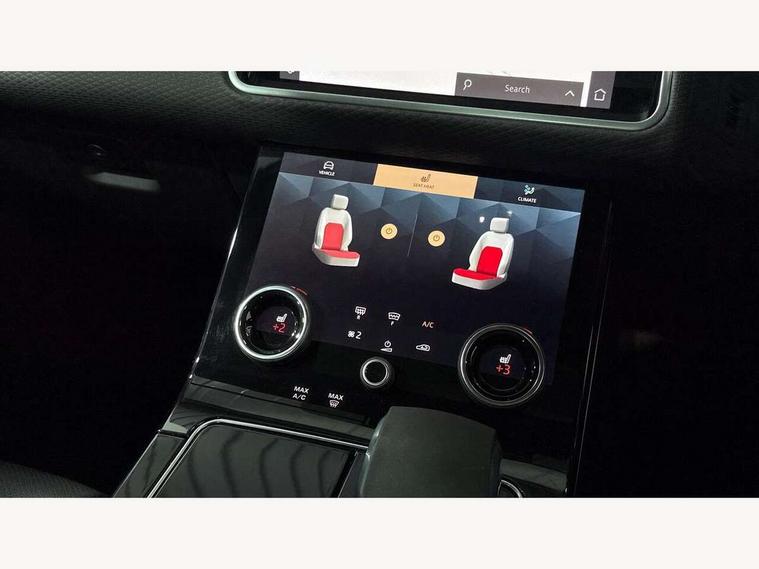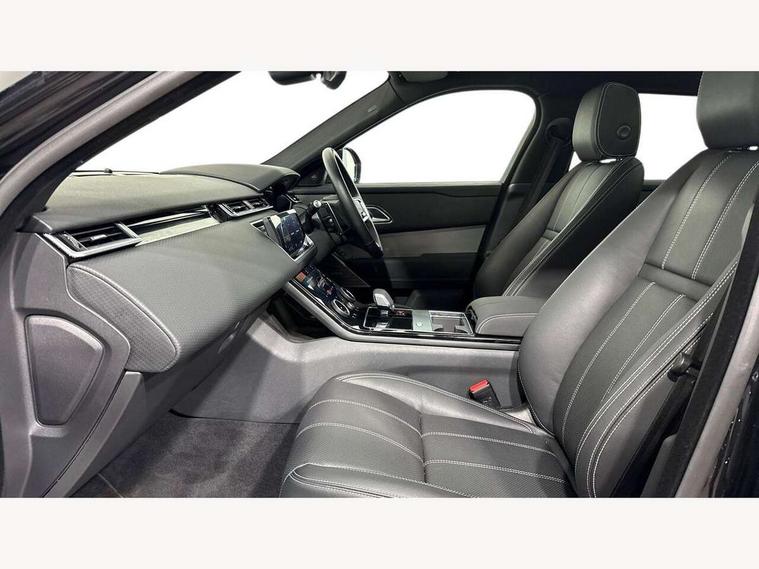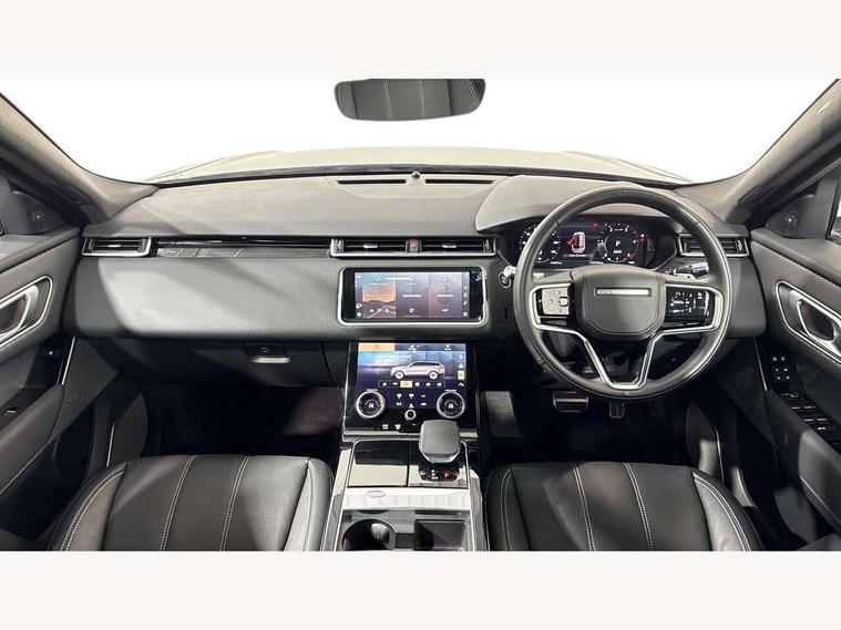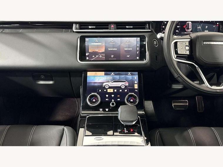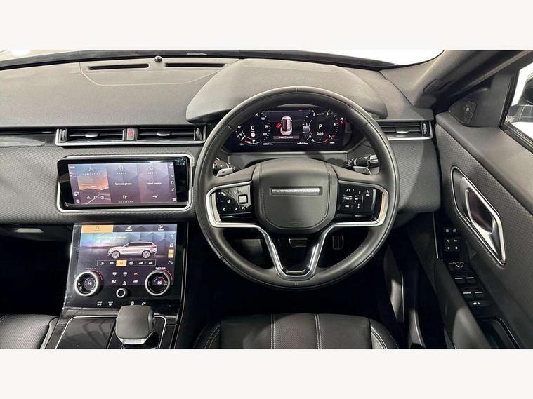 10" deployable touchscreen, Android Auto, Apple car play, Blind spot assist, Bluetooth connectivity, Brake pad wear indicator warning light, Driver condition monitor, eCall emergency call system, InControl remote, Land Rover InControl apps, Lane keep assist, Pivi pro with connected navigation, Push button start, Rear traffic monitor, Service indicator, Speed proportional electronic power assisted steering (EPAS), Traffic sign recognition with adaptive speed limiter, Trip computer, Voice control system, 8 speed automatic transmission, All terrain progress control, Open differential with torque vectoring by braking, Single speed transfer box, Digital Audio Broadcast radio-DAB, Steering wheel mounted controls, Acoustic laminated windscreen, Adaptive front lighting system, Auto dimming interior rear view mirror, Automatic headlamp levelling, Automatic headlights, Body coloured bumpers, Boot protection plate, Electric heated/power fold door mirrors with approach lights and auto dimming driver side, Electric windows with one touch open/close and anti trap, Flush deployable exterior door handles, Follow me home headlights, Heated rear window with timer, Heated washer jets, Heated windscreen, LED 3rd brake light, Metal load space scuff plates, No badge - Removes engine badge, Rain sensor windscreen wipers, Rear animated directional indicators, Rear fog lights, Rear side wing doors, Rear wash/wipe, Tailgate/boot lid spoiler, Trailer stability assist, Velar and R-dynamic badge, 3 seat bench in 2nd row, Ambient lighting, Bright metal pedals, Driver/passenger sunvisors with illuminated vanity mirrors, Isofix system on outer rear seats, Loadspace cover, Overhead lighting console, Overhead stowage for sunglasses, Passive front headrests, Rear air vents, Rear centre headrest, Satin chrome gearshift paddles, Single front passenger seat, Standard interior, Twin front cupholders, Twin sliding front centre armrest, Online pack with data plan - Velar, 355mm front brakes and 325mm rear brakes, 3x3 point rear seatbelts, Anti-lock braking system (ABS), Cornering brake control, Curtain airbags, Customer configurable autolock, Door side intrusion beams, Driver airbag, DSC - Dynamic Stability Control, Electronic brake force distribution, Electronic parking brake, Electronic traction control, Emergency brake assist, Emergency braking, Front and rear seatbelt reminder, Hill descent control, Hill launch assist, Low traction launch, Passenger airbag, Power operated child locks, Rear airbags, Roll stability control, Side airbags, Tyre pressure monitoring system, Unpainted brake calipers, Global lock and unlock switch on driver door, Immobiliser, Intrusion sensor, Keyless entry, Lock only switch on front passenger door, Locking wheel nuts, Perimetric alarm, Remote central locking,