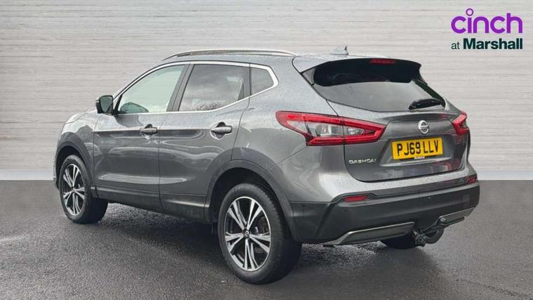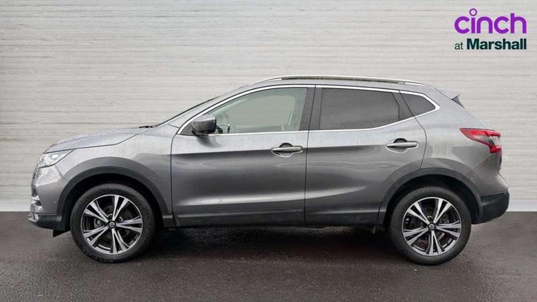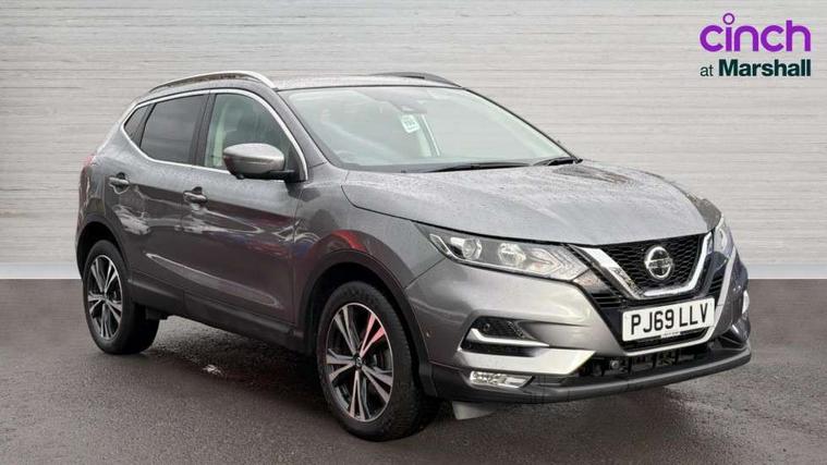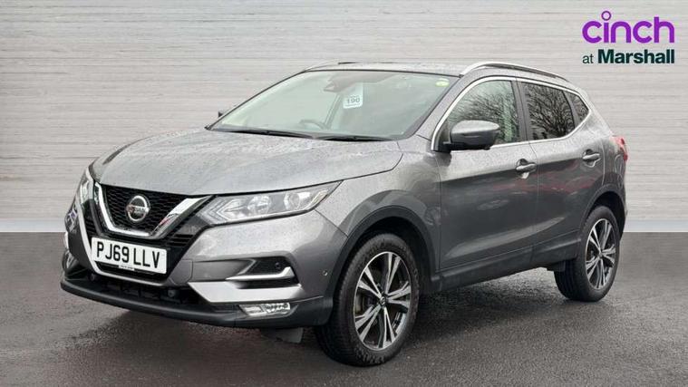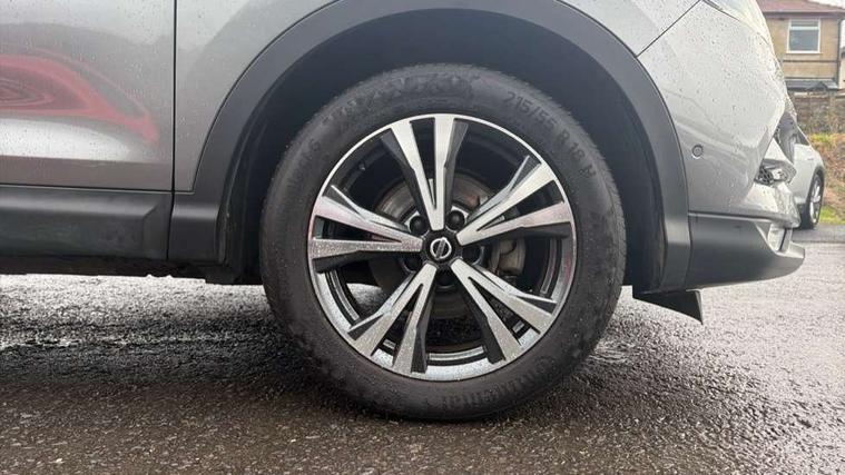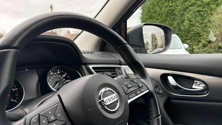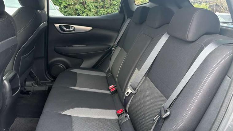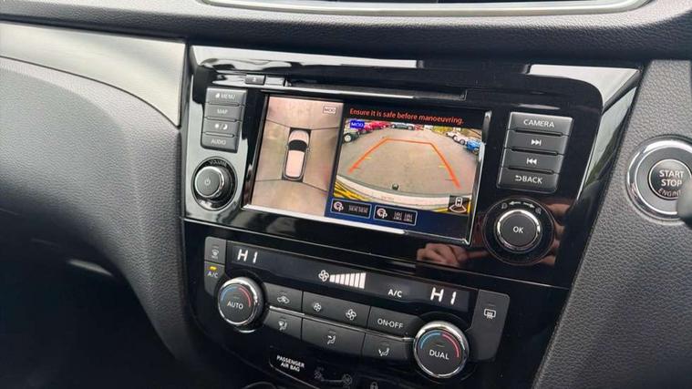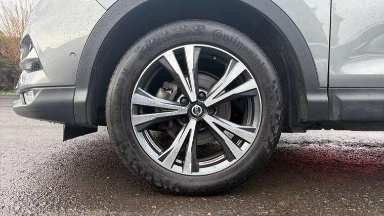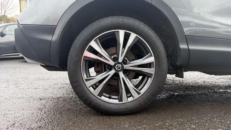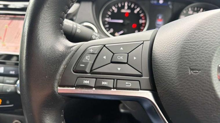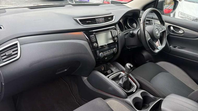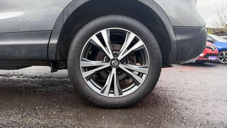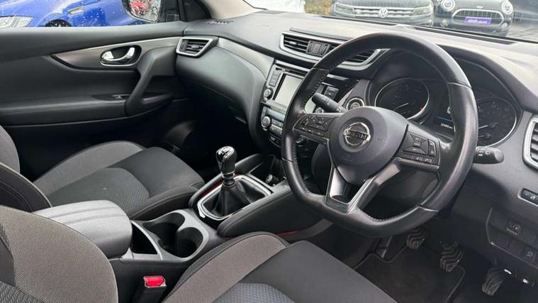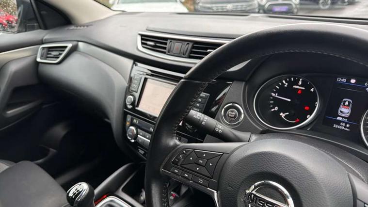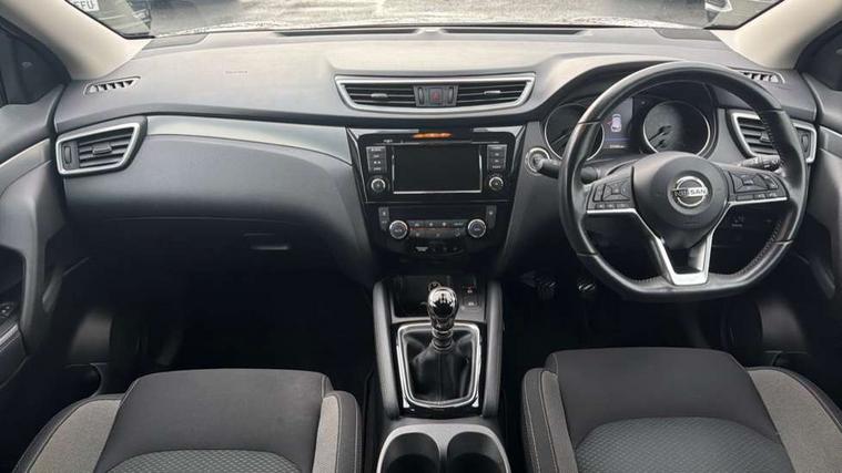 Advanced drive assist display 5'' TFT coloured screen, Android Auto, Apple CarPlay preparation, Bluetooth connectivity, Electric speed sensitive power steering, Front parking sensors, Intelligent around view monitor, Intelligent parking assist, Lane departure warning system, Nissan connect evo 7" touchscreen navigation and entertainment system, Normal or sport selectable steering, Outside temperature sensor, Push button starter, Rear parking sensors, Rear view camera, Service interval indicator, Smartphone integration, Stop/start system, Tomtom connected services, Traffic sign recognition, Trip computer, Voice control system, Diesel particulate filter, 6 speakers, AM/FM radio, CD audio system, Aux-in socket, DAB Digital radio, Rear USB connection, Steering wheel mounted audio controls, USB port, Anti dazzle rear view mirror, Auto wipers, Body colour bumpers, Body coloured door handles, Body coloured door mirrors, Chrome window surround, Daytime running lights dip function when turn signal applied, Electric folding door mirrors, Electric front and rear windows with one touch illuminated window controls, Electric front/rear windows, Electrically adjustable door mirrors, Front fog lights, Halogen headlights, Heated door mirrors, High beam assist, Intelligent auto headlights, LED indicators in door mirrors, Matt silver roof rails, One touch 4x auto windows with illuminated switches, Privacy glass, Rear roof spoiler, Rear wiper with reverse link, Shark fin antenna, Signature LED daytime running lights, Underbody vortex generators, 2 X front 12v power sockets, 3 height adjustable rear headrests, 60/40 split folding rear seat, Ambient lighting, Ambient lighting in centre console, Boot lighting, Centre console storage box/armrest, Chrome interior door handles, Cloth upholstery, Configurable luggage board system, Driver's seat manual height adjust, Dual zone climate control, Front and rear door pockets with bottle holders, Front and rear seat belt pre-tensioners with load limiters, Height adjustable front headrests, ISOFIX restraints on outer rear seats x2, Leather D shaped steering wheel, Leather gear lever, Leather knee pad, Manual height adjustable front passenger seat, Manual lumbar support on driver seat, Manual lumbar support on passenger seat, Parcel shelf stow function under luggage board, Pollen filter, Rear armrest with 2 cupholders, Synthetic leather wrapped door handle with contrasting stitching, Tilt/telescopic adjustable steering wheel, Safety shield plus pack - Qashqai, 6 airbags - Driver, front passenger, curtain and side airbags, ABS, ESP, EBD and brake assist, Auto hold function, Child locks on rear doors, Electronic parking brake, Front and rear seat belt warning, Front passenger airbag deactivation, Height adjustable front seatbelts, Hill start assist, Intelligent emergency braking with pedestrian recognition, Three 3 point rear seatbelts, Tyre pressure monitoring system, Anti-theft immobiliser, Intelligent Key, Remote central locking, Thatcham Cat.1 alarm, Glossy black dash trim, Tyre puncture repair kit,