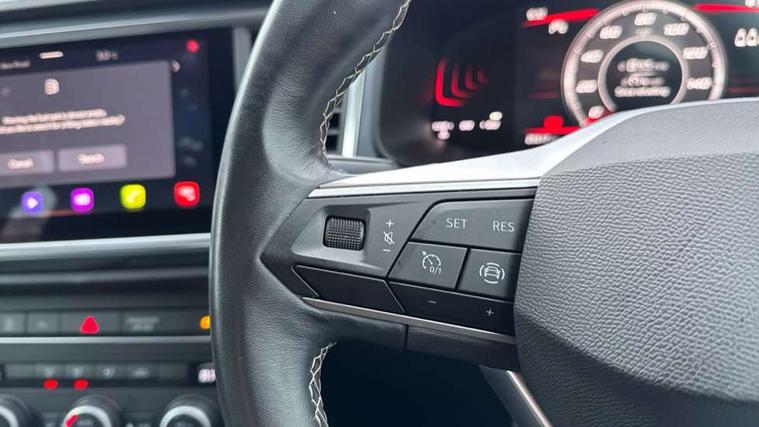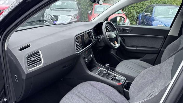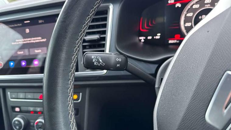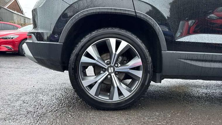 8" Digital cockpit, Colour multi-function on board computer display, Cruise control system with speed limiter, E-call, Outside temperature gauge, PAS, Self parking functionality (includes front and rear parking sensors), Start/stop system, Tailgate, Trip computer, Wireless full link smartphone integration, Wireless phone charger, Steering wheel mounted audio/phone controls, Black wheel arch surrounds, Body colour bumpers, Chrome front grille frame, Chrome roof rails, Chrome side window trim, Daytime running lights, Door mirrors with welcome light silhouette, Dynamic headlight range control with self adjusting whilst driving, Electric adjustable/heated/folding door mirrors, Front and rear electric windows, Full LED headlamps with lens and LED front fog lamps with cornering function, LED rear tail lights with dynamic indicators, Rear fog lights, Rear side wing doors, Rear wash/wipe, Simulated exhaust pipes, Third brake light, Variable front intermittent wipers, 12V socket in front, 3 seat bench in 2nd row, 60/40 split folding rear seat, Cloth upholstery with front comfort seats, Drawer under right front seat, Dual zone climate control, Front and rear head restraints, Front centre armrest, Front seat back storage pockets, Height adjustable driver and passenger seat with lumbar adjustment, ISOFIX points in outer rear seats with top tether anchorage points, Leather steering wheel and gear knob, Rear armrest and easy back seat release mechanism from boot, Single front passenger seat, Interior lighting pack - Ateca, Navigation system pack with DAB - Ateca, 3x3 point rear seatbelts, ABS, Traction control system (TCS), Electronic stability control (ESC) and Electronic differential lock system (XDS), Airbags - Driver and front passenger airbag with deactivation, front side, two curtain and driver's knee airbags, Electric parking brake with auto hold function, Front and rear seatbelt reminder, Front assist with autonomous emergency braking, Hill hold control, Manual rear child locks, Single tone horn, Tiredness recognition system, Traction control, Tyre pressure monitoring system, Alarm, Keyless entry, Locking wheel bolts, Remote central locking, Chrome interior detailing, 18" Performance machined alloy wheels 36/2 in nuclear grey,