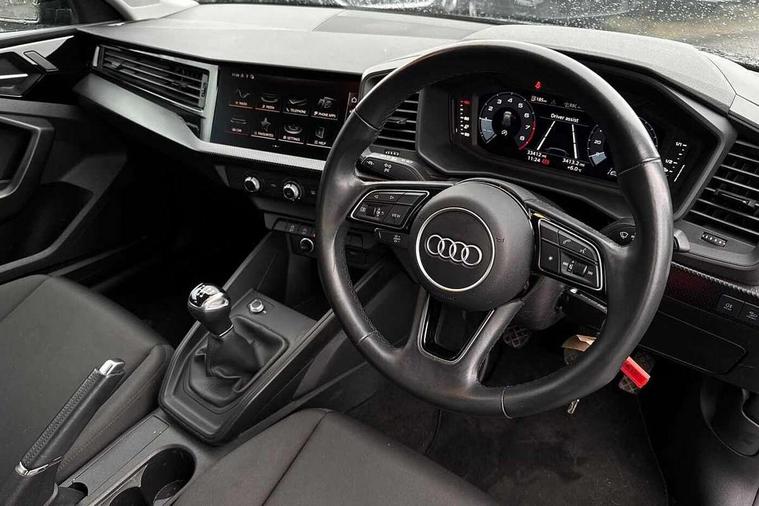 10.25" Digital instrument cluster display classis style instrument dials + speed, odometer, time, outside temperature, telephone menu + fuel level warning, Audi smartphone interface with connect compatible smartphone via USB directly MMI display + Nav, music, third party apps controlled via MMI controller, Automatic start/stop system, Bluetooth interface, Driver's information system, Electromechanical power steering, Emergency e-call, Emergency services call system, Lane departure warning system, Service interval indicator, Speed limiter, Voice control system, Washer fluid level indicator, Dynamic suspension, 1 x SDXC card reader, 2 x USB type C connection points, 6 passive loudspeakers, DAB Digital radio, MMI radio plus with 8.8" colour MMI display screen and MMI touch, Auto dimming rear view mirror, Body coloured bumpers, Body coloured door mirrors, Electric front and rear windows, Electrically adjustable, heated, folding door mirrors with integrated LED side indicator, Front side air inlets with front spoiler lip and rear diffuser in matt black grained, Heat insulating glass windscreen and side windows, Heated rear windscreen, High level LED brake light, LED headlights with LED rear lights + dynamic rear indicators + headlight adjustment and high beam, turning light + LED daytime running lights, Radiator grille in matt black, Rain and light sensors, Rear fog lights, Rear side wing doors, Rear wing door, Rear wiper, 12V socket in centre console with two cup holders, 3 rear seats with headrests, 3 seat bench in 2nd row, 3 spoke leather multifunction plus steering wheel, 40:60 Split folding rear seat or folded fully, Air vents, door handle recesses and centre console in black, Delta cloth upholstery, Driver and passenger seat with manual height adjust with forward and backwards adjustment, Front head restraints, Front passenger seat, Front/rear floor mats, Height and reach adjustable steering wheel, ISOFIX child seat mounting for front passenger and outer rear seats including top tether attachment point of outer rear seats, Leather gear knob with aluminium trim, Leatherette handbrake grip, Luggage compartment light with front and rear reading lights, Manual air conditioning, Titanium grey cloth headlining, Luggage compartment pack - A1, 3x3 point rear seatbelts, Audi pre-sense front with pedestrain and cyclist recognition, Brake assist function, Driver and front passenger airbag with front side and head airbags, Electronic Stability Control including ABS, EBD, ASR and EDL, Front passenger airbag deactivation switch, Hill hold assist, Manual rear child locks, Seatbelt height adjustment for front seats, Seatbelt monitoring, Tyre pressure warning light, Warning triangle and first aid kit, Anti theft alarm, Anti theft wheel bolts and loose wheel warning, Immobiliser, Remote central locking with 2 foldaway keys, Black inlays polygon structure, 15" 5 arm design alloy wheels,