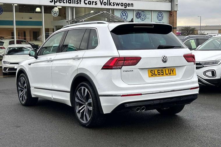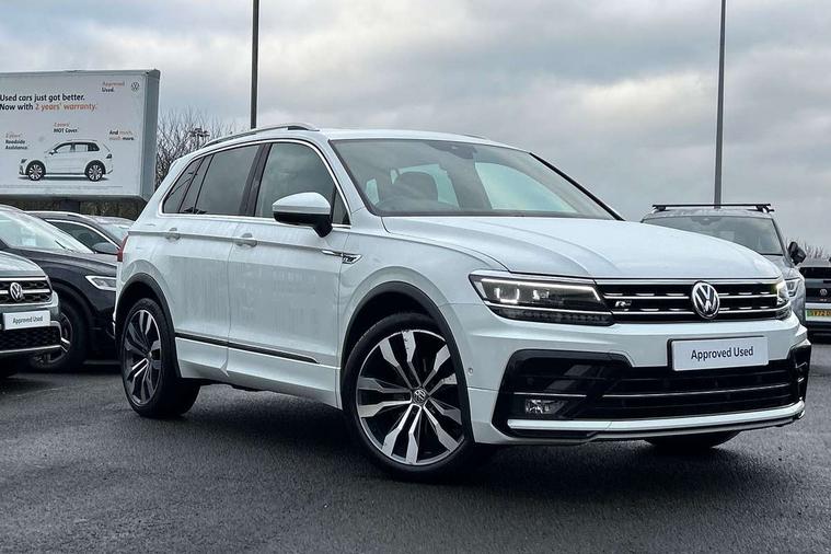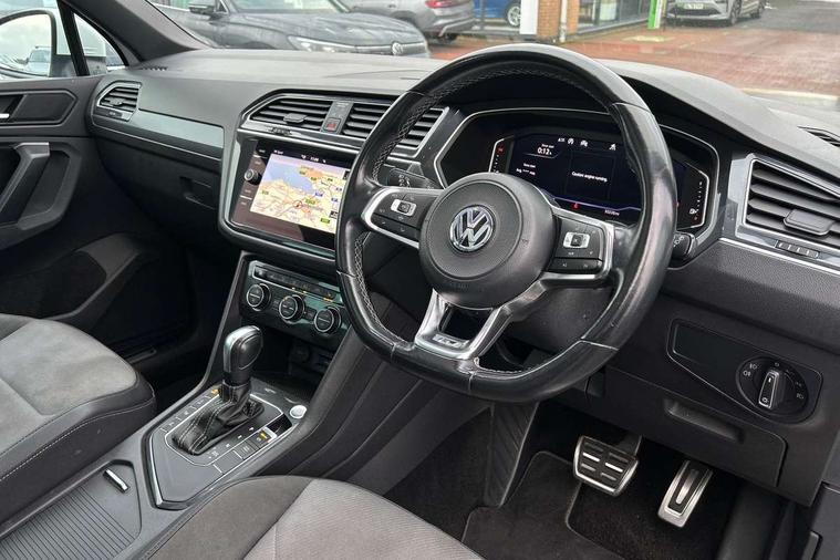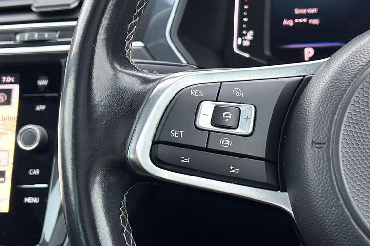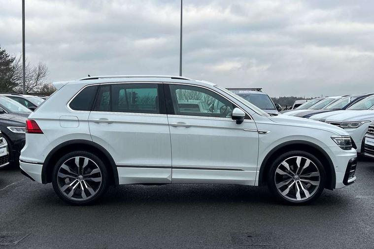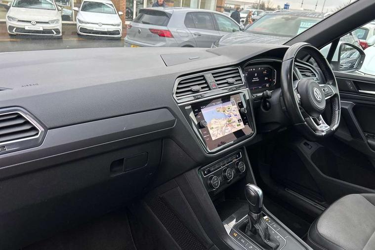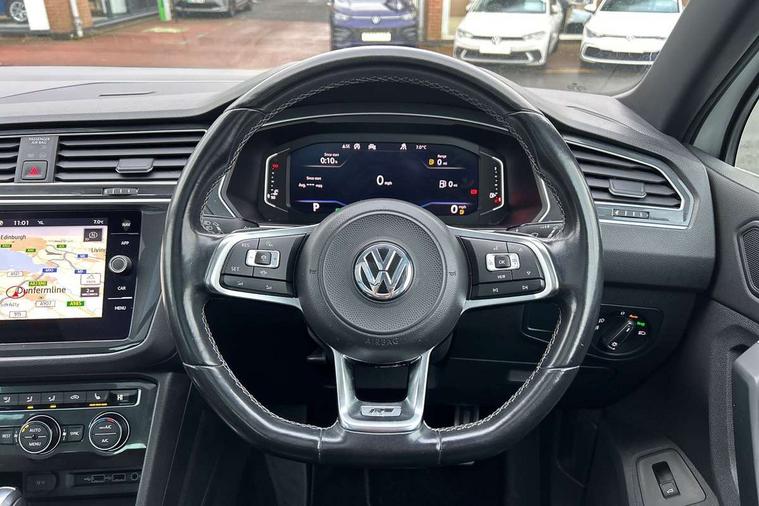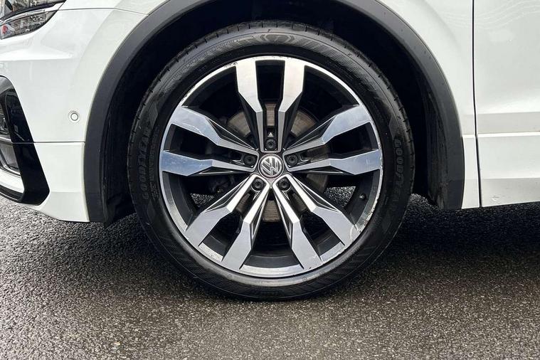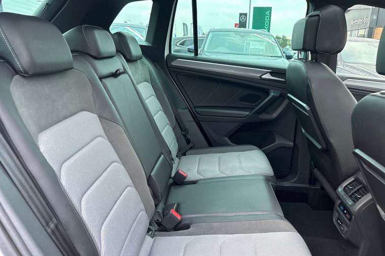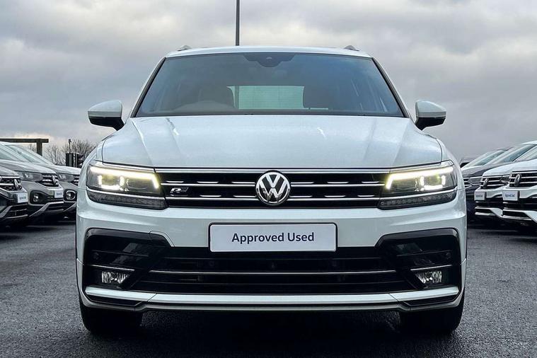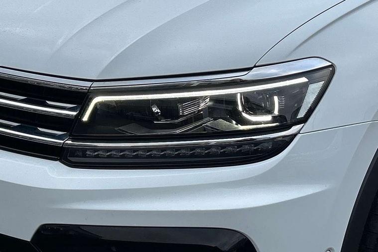 Chrome door trim inserts, Piano black interior trim, Ambient lighting pack - Tiguan, Winter pack - Tiguan/Tiguan Allspace, Alarm with interior protection, Electronic engine immobiliser, Remote central locking with 2 remote folding keys, 2x USB sockets in front, 4 X 20 watt output, DAB Digital radio, SD card slot, Simultaneous pairing of 2 compatible mobile devices, SMS functionality - read, compose and send SMS messages using touch-screen display, Title and cover art display, 3 rear 3 point seatbelts, ABS+EBD+Brake assist, Active bonnet, Active pedestrian safety system, Curtain airbags, Driver/Front Passenger airbags, Driver/Passenger whiplash optimised head restraints, Drivers knee airbag, DTC - Drag torque control, Electronic parking brake with auto hold, ESP with EDL + ASR, First aid kit, Front side airbags, Front ventilated disc brakes and rear disc brakes, Head airbag system, Height adjustable front 3 point seatbelts + pretensioners, Hill hold control, Passenger airbag deactivate switch, Passenger knee airbag, Proactive preventive occupant protection, Rear side airbags, Rigid safety cell with front and rear crumple zones, Seatbelt warning lamp and buzzer, Two tone horn, Warning triangle, 3D effect cherry red LED rear tail lights, Auto dimming interior mirror, Automatic activation of hazard warning lights, Black door protector with chrome inserts, Body colour door handles, Body colour door mirrors, Body coloured bumpers, Chrome side body trim, Chrome side window surrounds, Chrome trimmed radiator grille, Coming/leaving home lighting function, Dusk sensor + auto driving lights, Electric folding door mirrors, Electric heated + adjustable door mirrors, Electric panoramic sunroof with sunblind, Front air intake with chrome strip, Front and rear electric windows, Heated rear window, High level 3rd brake light, LED headlights with dynamic light assist daytime running lights and cornering front fog lights, LED rear number plate lights, Rain sensor windscreen wipers, Rear tinted glass from B-pillar backwards approx 65% tinted, Rear windscreen washer and wiper with interval delay, Side door sills with chrome inserts, Side skirts and rear bumper with chrome insert, Silver rear diffuser trim, Silver roof rails, Silver under body guard, Windscreen wipers/ intermittent wipe + 4 position delay, 12V Accessory socket in centre console, 3 rear headrests, 3 zone climate control, 4 load lashing points, 40:20:40 split folding rear seats, Bag hook in luggage compartment, Foldable passenger seatback, Front + rear carpet mats, Front centre armrest with 12v socket, Front centre armrest with storage + rear 2 air vents + cupholders, Front seat back storage pockets, Front seatback folding tables, Height/reach adjust steering wheel, Illuminated driver/passenger vanity mirrors, Illuminated scuff plates, Instrument lighting white adjustable panel illumination, Interior light with delay, Isofix Preparation 2 Rear child seats, Leather gear knob, Load through provision with 2 cupholders when folded, Lockable cooled glovebox, Luggage compartment lighting, Luggage compartment side storage, Map pockets on front seats, Passenger seat height adjuster, Passenger underseat drawer, Rear cupholders, Removable luggage cover, Sliding/reclining rear seats, Storage compartment in driver's door, Storage compartment in passenger's door, Storage compartment in rear doors, Storage tray on dashboard, Sunglasses storage, Variable boot floor, App-Connect, Active information display, Adaptive cruise control, Bluetooth phone integration system, Car-Net Security and Service, Coasting function, Distance control assist, Drive mode selector, Driver profile selection, Fatigue detection system, Front assist, radar sensor controlled distance monitor, city emergency braking + predictive pedestrian protection, Instrument cluster, Lane assist, Low washer fluid warning light, Outside temperature display, Service interval indicator, Speed limiter, Start/Stop function, Warning lights, Misfuel prevention device for diesel engine, XDS electronic differential lock,