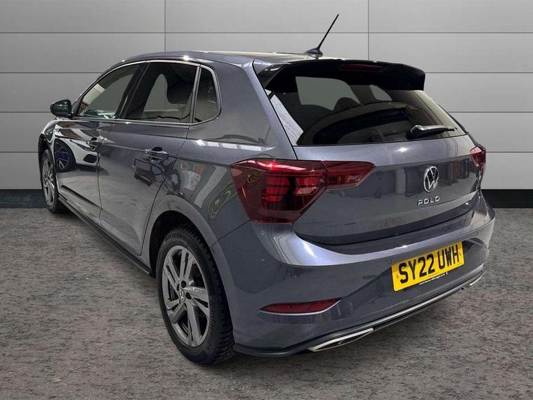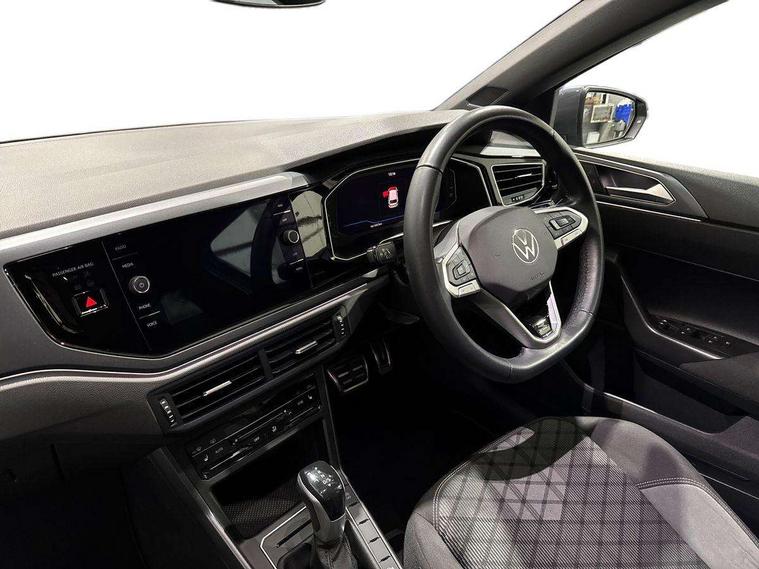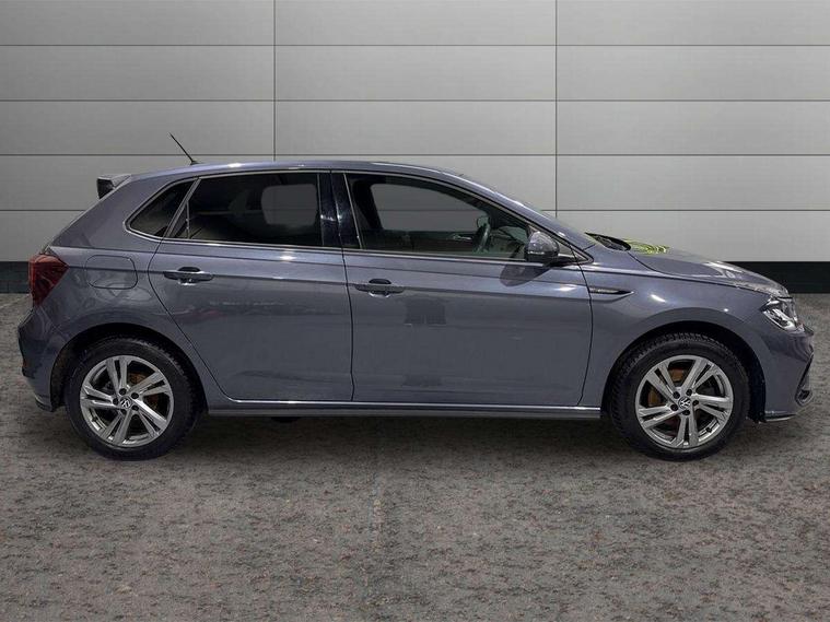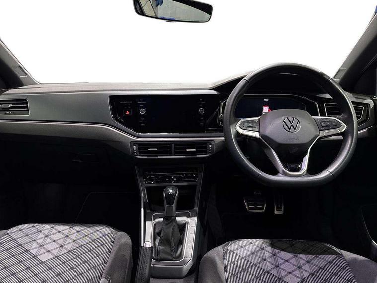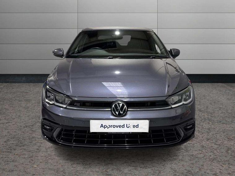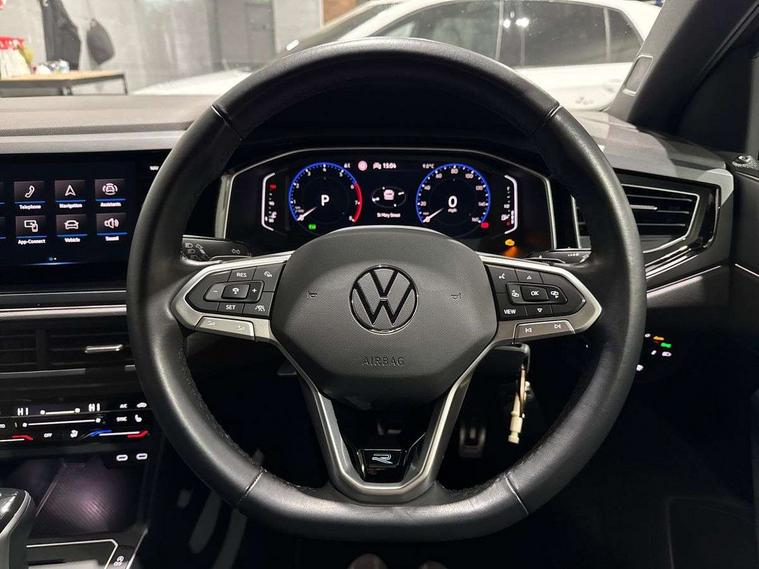 Adaptive cruise control with follow-to-stop and speed limiter, Bluetooth mobile phone interface, Digital Cockpit Pro with 10.25" Display, Driver alert system, Dynamic road sign display, Emergency call service, Power assisted speed sensitive steering, Preparation for We connect and We connect plus, Speedo and rev counter, electronic odometer, trip, service interval display and fuel gauge, Standard rear axle, Travel Assist - Lane keeping system and traffic jam assist, Travel assist including emergency assist, Trip computer, Warning signal and warning light for front and rear seatbelts not fastened, Washer fluid level indicator, Wireless app connect, Front wheel drive, Rear shock absorpion, Start-stop system with battery regeneration (recuperation - energy recovery during braking), DAB Digital radio, Diversity antenna for FM reception, Front and rear 6 speakers, Body colour bumpers, Body colour door handles, Body colour door mirrors, Electric front windows, Front scuff plates with R-Line logo, Heat insulating darkened glass in side and rear windows, Heat insulating glass windscreen, Power folding adjustable/heated exterior mirrors and front passenger exterior mirror lowering function, Rear electric windows, Rear fog light, Rear side wing doors, Rear tinted glass from B-pillar backwards approx 65% tinted, Rear windscreen washer and wiper with interval delay, Third brake light, 12V power socket in centre console, 2 USB-C ports in the front, 2 USB-C charging sockets on the center console in the rear, 3 rear head restraints, 60/40 split folding rear seat and rear seat bench not split, Air care climatronic air conditoning system with active combination filter and 2-zone temperature control, Black roof lining, Ceramique headliner, Chrome plated radiator grille inserts, air vent surrounds and light switch surrounds, Door and side trim panel, Driver and front passenger seat height adjustment, Driver/passenger sunvisors with illuminated vanity mirrors, Front + rear carpet mats, Front centre armrest, Front footwell illumination, Front seat backrest storage pockets, Front sports comfort seats, Handbrake lever handle in leather, Isofix child seat preparation easy-fit (for two outer rear seats, and front passenger seat) compatible with I-size, Karoso artvelours cloth upholstery, Leather trimmed gear knob, LED interior light with switch off delay and dimmer, 2 reading lights front and rear, Luggage compartment cover, Luggage compartment floor, Luggage compartment lighting, Lumbar adjustment for front seats, Single front passenger seat, Stainless steel pedals, Standard pedal cluster, Three spoke leather wrapped multifunction steering wheel with shifting paddles, Light and sight pack - Polo R-Line/Black Edition, 3 point height adj front seatbelts + pretensioners, 3x3 point rear seatbelts, ABS, Driver and front passenger airbag with front passenger airbag deactivation, Drivers and front passengers safety optimised head restraints, ESC (Electronic stability control) + EDL (Electronic Differntial lock) and ASR (Traction control), Extended and predictive pedestrian/ cyclist protection, Front curtain and side airbags with center airbag, Front/rear disc brakes, Hill hold control, Manual child lock in rear doors, Single tone horn, Tyre pressure loss indicator, Alarm with interior protection, Anti-theft alarm system with interior monitoring, backup horn, and towing protection, Anti-theft wheel bolts, Electronic engine immobiliser, Chrome applications on rotary light, mirror adjustment, window regulator switches, outlet with frame in black, Dark grey anodised matt decorative inserts in dash and front door panels, Low rolling resistance tyres,