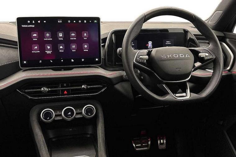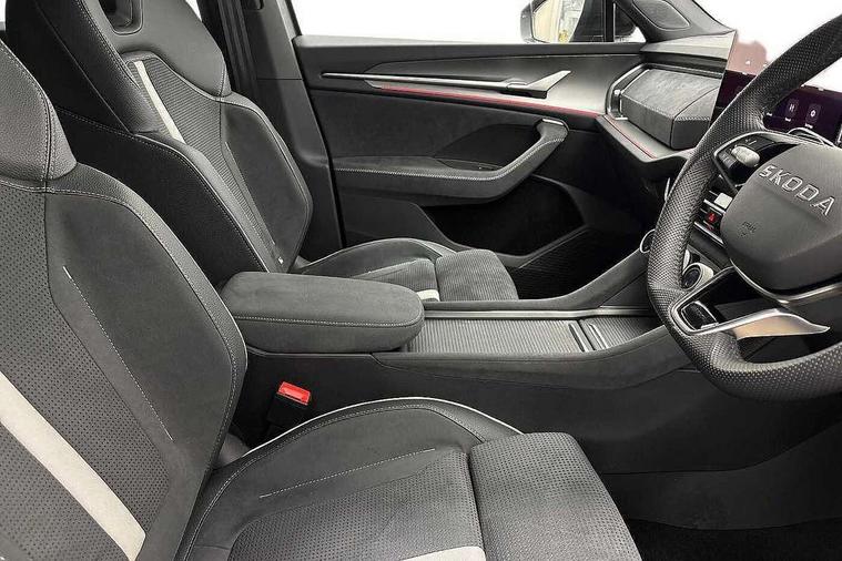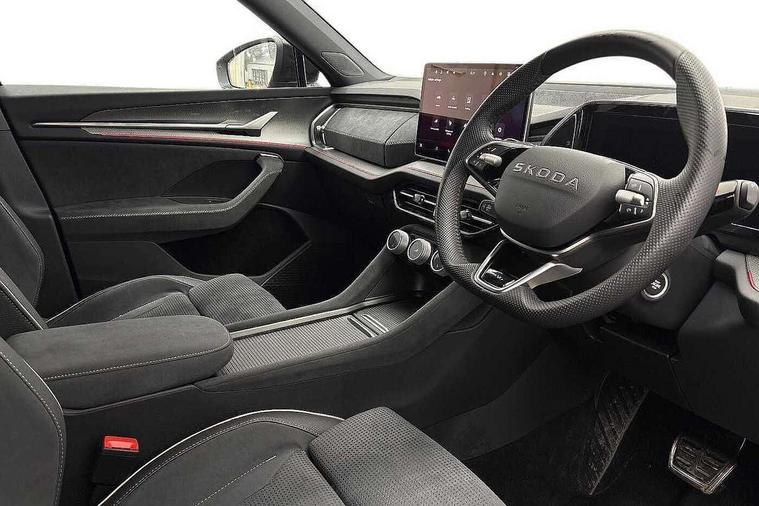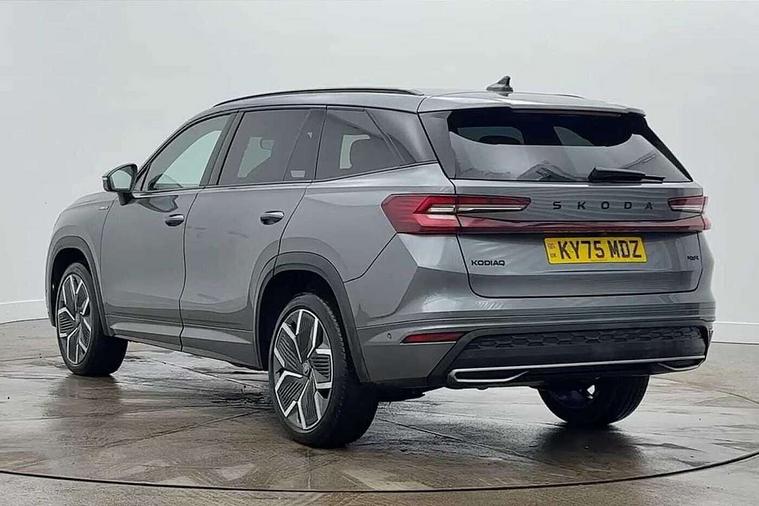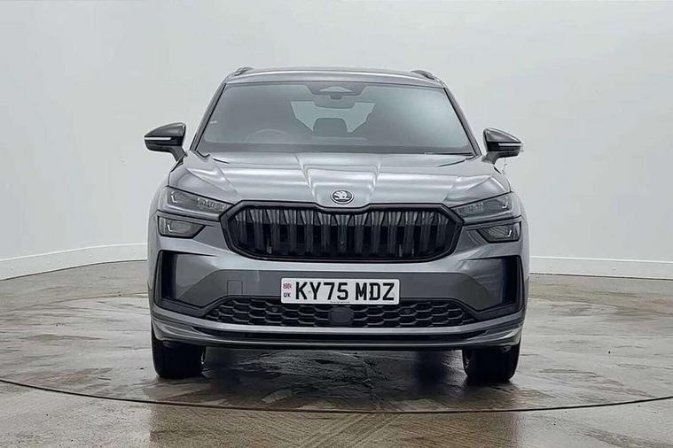 13" satellite navigation touchscreen display, Blind spot detection with door exit warning, Bluetooth system, ChatGPT functionality, Driver alert - Fatigue and drowsiness monitor, Dry display cleaner, Emergency call, Front and rear parking sensors, Front cross traffic assist, Lane assist, Off road modes, PAS, Rear traffic assist, Tailgate unlocking from outside, Traffic sign recognition, USB C Port x 2 in front centre console, Virtual Cockpit - 10.25" digital display, Voice control system, Wireless charging for two smartphones (15W) with cooling function, Wireless SmartLink for Apple CarPlay and Android Auto, Stop/start function, 2x USB-C in the rear, DAB Digital radio, Aero front windscreen wipers with intermittent function, Auto dimming rear view mirror, AWL (all weather lighting) and all weather light with cornering function, Black diffuser and decorative tailpipe with a unique dark chrome finish, Black roof rails, Black sports styling including front grille and window surrounds, Black wheel arch surrounds, Body colour door handles, Cornering light and poor weather light, Electric folding /adjustable/separted heated/folding door mirrors, auto dimming with boarding sports and memory function, Electric front and rear windows, Exterior black decorative trims, Front and rear sports bumpers including lower rear chrome strip, Gloss black door mirrors, Gloss black window frame and D pillar, Heat insulating glass in windshield, Heated rear window, Ice scraper in fuel tank cap, LED daytime running lights, LED third brake light in rear spoiler, Light assistant with automatic headlight control and coming home feature, Logo projection in door mirrors, Privacy glass, Rear roof spoiler, Rear side wing doors, Rear window wiper, Red decorative strip between rear LED lights, Safety reflectors on front and rear doors, Sportline badge on front fenders, Tailgate lettering in Black, Unique dark chrome design logo on alloy wheels, Window control switches with black trim, Windscreen wipers with rain sensor, Without engine designation, 1.5l bottle holder points in all door, 1x centre rear reading light, 2 seat bench in 3rd row, 3 configurable smart dials with 32mm coloured display, 3 seat bench in 2nd row, 4 foldable roof handles with rear coat hooks, Aluminium pedals, Ambient interior lighting - Dashboard, front-door stowage compartments, front and rear door panels and footwell lighting, Automatic gear selector on steering column, Chrome interior door handles, Driver/front passenger reading lights, Fabric headlining, Fixed bench 40:60:40 split folding backrests, Front and rear floor mats, Front centre armrest with jumbo box storage compartment, cup holder and 12V socket, Front sport seats, Height adjustable front headrests, Interior black decorative trims, Isofix child seat fittings in outer middle row rear seats and front passenger with top tether, Manually adjustable steering column, Pollen filter, Rear centre armrest with cupholders, Rear seat boot backrest release, Single front passenger seat, Skoda lettering on steering wheel, Storage pocket including mobile phone pockets on the backs of the front seats, Sunvisors with illuminated vanity mirrors, Three rear height adjustable headrests, Ticket holder on A Pillar, Tri zone climate control, Umbrella in door panel x1 made from sustainable materials, Upper and lower glovebox with card holder and coin compartment, USB C port by rear view mirror for charging only (15W), Acoustic package - Kodiaq, Performance package - Kodiaq, Sportline design selection pack - Kodiaq, Auto door release and activation of warning lights in the event of an accident, Driver and front passenger airbag with knee airbag and front passenger airbag deactivation, Electric child locks, Electronic parking brake, ESC (incl. ABS+EMD+MSR+ASR+EDL+HBA+DSR+RBS+ESBS+MCB+TSA+XDS), Front assist with braking reaction to vehicles, pedestrians and cyclists, Front disc brakes, Fuel cut off safety device, Height adjustable front 3 point seatbelts + pretensioners, Hill hold assist, Junction assist with automatic emergency braking, Rear disc brakes, Safety vest holder in door, Seat belt reminder for all seats, Three point rear seat belts, Two tone horn, Tyre pressure monitor, Alarm with interior monitoring and tilt sensor with safe function, Anti-theft wheel bolts, Immobiliser, Remote central locking with 2 keys, 20" Rila anthacite polished alloy wheel with black matte aero covers,