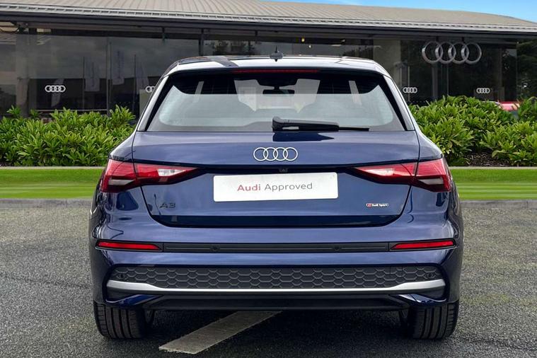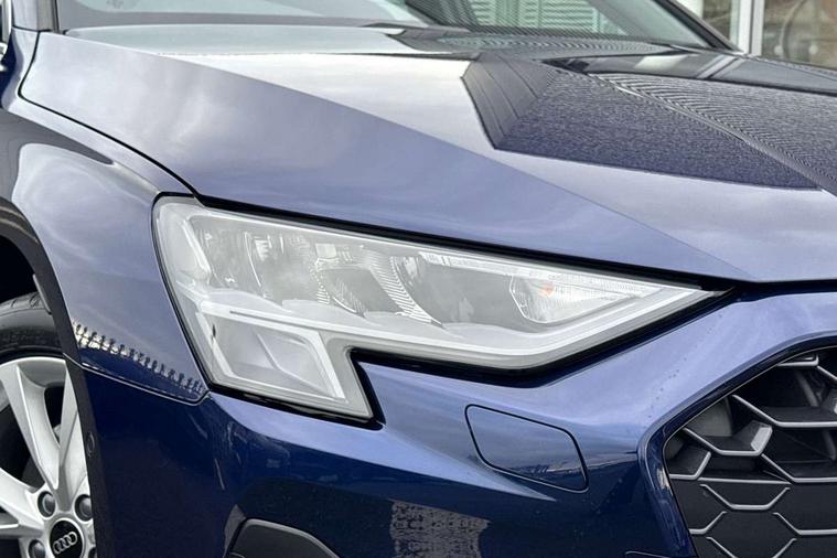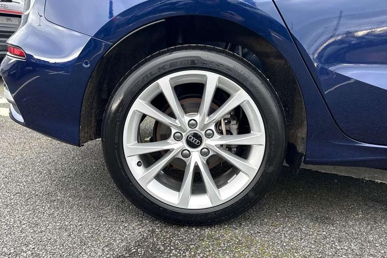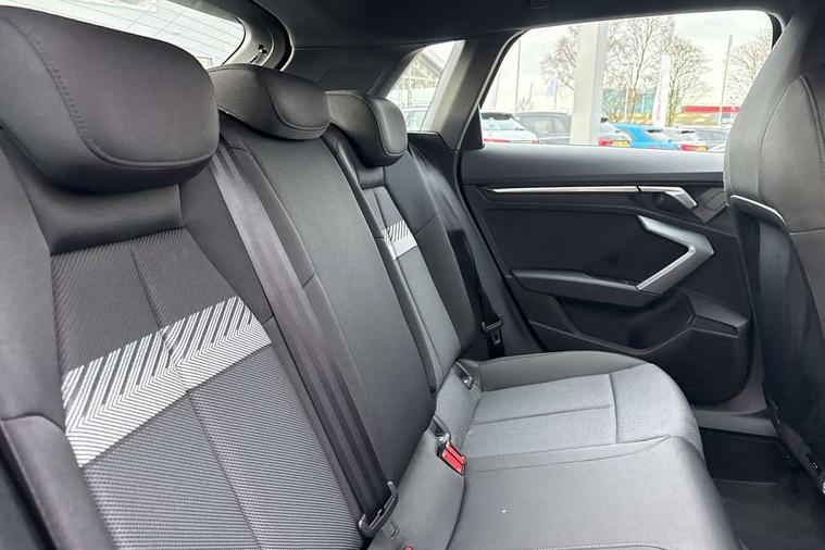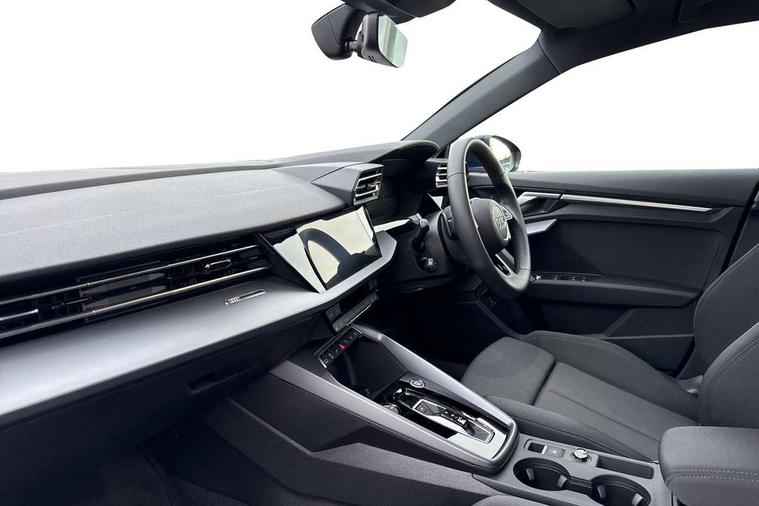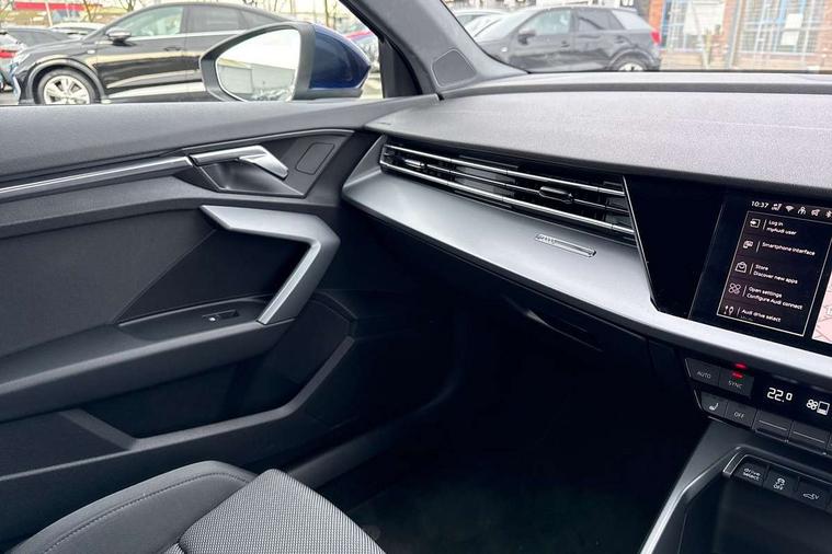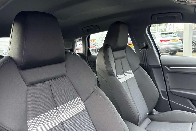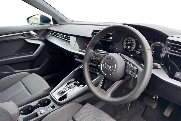 Adaptive cruise control (ACC), Adjustable speed limiter, Audi drive select (Auto, Comfort, Dynamic, Efficiency and Individual), Audi virtual cockpit plus - 12.3" full HD resolution dynamic digital instrument cluster, Automatic start/stop system with recuperation, Bluetooth interface, Camera based traffic sign recognition, Collision avoidance assistant, Driver attention and fatigue detection, e-Call (emergency call), Electromechanical power speed sensitive steering, Emergency assist, Intersection assist, Lane departure warning system, MMI Navigation Plus with high resolution 10.1" colour touch screen display, Park Assist with parking system Plus, Reversing camera, Service indicator, Smartphone interface with app store includes wireless Apple carplay, Android auto and Amazon alexa integration, Trip computer, Voice control system with natural language interaction, CCS socket for DC charging, Charging cable for public charging, mode 3 (type 2), 32 A, Standard suspension, Type 2 socket for AC charging, Audi Phonebox light with wireless charging, Audi sound system - 10 loudspeakers including centre loudspeaker and subwoofer, DAB Digital radio, USB ports with charging function in the rear, 3rd brake light, Acoustic glass windscreen, Aluminium window trim, Auto dimming frameless rear view mirror, Body colour exterior mirrors, Body colour roof spoiler, Electrically adjustable/heated/folding/auto dimming door mirrors with integrated LED indications + kerb view function for passenger side, Exterior model badging, Front electric windows, Front radiator grill in high gloss dark chrome, Front side air inlets in grained matt black with silver frame, Heat insulating glass windscreen, Invisible tailpipe, LED daytime running lights, LED headlights and halogen rear lights, Light and rain sensors, Rear diffuser and grill in grained matt black with silver frame, Rear electric windows, Rear side wing doors, Rear window, rear door windows and rear side windows in clear glass, Rear wiper, 12V socket and storage compartment in front centre console, 3 seat bench in 2nd row, 3 spoke leather multifunction steering wheel with gear shift paddles, 3-zone deluxe automatic air conditioning, 4 way electrically adjustable lumbar support for driver and front passenger, 60/40 split folding rear seat bench, Black front and rear floor mats, Convenience auxiliary air conditioning, Front and rear headrests, Front centre armrest, Front door sill trims with aluminium inlay, Heated front seats, Height and reach adjustable steering wheel, i-Size child seat mounting on the front passenger side and outer rear seats, i-Size and top tether on the outer rear seats, Manual boot compartment lid, Manually adjustable front seats, Routine cloth upholstery with front sports seats, Seat side bolsters, Single front passenger seat, Steel grey cloth headlining, Aluminium interior elements pack - A3, LED interior lighting pack -A3, 3x3 point rear seat belts, Acoustic vehicle alerting system, Driver and front passenger airbag with passenger airbag deactivation, Electronic Stabilisation Control (ESC) including ABS, ASR and EDL, First aid kit with warning triangle and 2 safety vests, Front side airbags with head airbags and interaction airbag, Hill hold assist, Pre-sense front with pedestrian and cyclist detection, Seatbelt monitoring, Tyre pressure loss indicator, Anti theft alarm, Anti-theft wheel bolts, Electronically operated child locks, Immobiliser, Black dashboard, Inlays in volcano grey fine paint finish, Tyre repair kit,