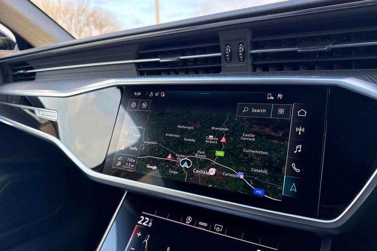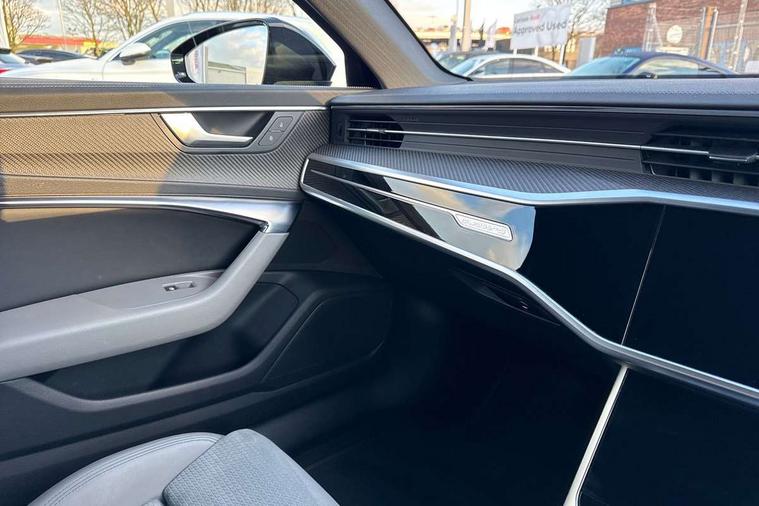 7" high resolution colour driver information display system, Audi connect safety and service (e-call), Audi connect with Amazon Alexa Integration, Audi drive select, Audi parking system plus - acoustic and visual park assist system for front and rear, Automatic start/stop system with coasting functionality, Bluetooth interface, Lane departure warning system, Power operated tailgate, Progressive steering, Rear view camera, Service interval indicator, Smartphone interface includes wireless Apple carplay/Android Auto, Voice control system, 12V Mild hybrid, Quattro on demand, Sports suspension, Audi front music interface, Audi sound system, Auxiliary input socket, DAB Digital radio, USB connection, Black roof rails, Electric front/rear windows, Frameless auto dimming interior rear view mirror, Front intermittent wipers, Gloss black highlights on the exterior area of the Audi Single frame, Gloss black highlights on the front and rear bumpers, Gloss black highlights on the radiator grille, Gloss black highlights on the side windows trim strips, Headlight washers, Heat insulating darkened glass in side and rear windows, Heat insulating glass in windshield, LED signature front daytime running light, LED third brake light, Matrix LED headlights, Matt black rear diffuser with diffuser strip and tailpipes in chrome, Matt black side air intake grille with inlay in matt aluminium, Privacy glass, Rain and light sensors, Rear roof spoiler, Rear side wing doors, Rear wiper, Signature rear LED light design, 2 zone deluxe electronic climate control, 4 way electric lumbar support for driver and front passenger, 40/20/40 split folding 3 rear seat bench in 3 parts with rear centre armrest, Black cloth headlining, Black front and rear carpet floor mat, Black steering wheel insert, Electrically adjustable front seats with driver memory, Front centre armrest, Front head restraints, Heated front seats, Height/reach adjust steering wheel, Illuminated door sill trims with S logo, Illuminated sun visors with vanity mirrors, ISOFIX child seat mounting and Top Tether with front passenger airbag deactivation, Leather gear knob, Luggage compartment system, Rear headrests, Single front passenger seat, Stainless steel pedals and foot rest, LED Interior Ambient Lighting Pack - A6, Non smoking pack - A6, Technology pack - A6, 3 point seatbelts on all seats, Airbags - Front side, front and rear including head, Audi pre-sense front, Black seatbelts, EBD - Electronic brakeforce distribution, Electromechanical parking brake, Electronic Stability Control (ESC) including ABS, ASR and EDL, Extended pedestrian protection measures, Manual child proof rear door locks, Seatbelt monitoring, Tyre pressure warning light, Warning triangle and first aid kit, Anti theft alarm with tow away protection, Anti-theft wheel bolts and wheel loosening detection, Immobiliser, Keyless Go, Remote central locking, Carbon twill inlays, 20" 5 V spoke star design Audi sport cast aluminium alloy wheels in matt grey look,