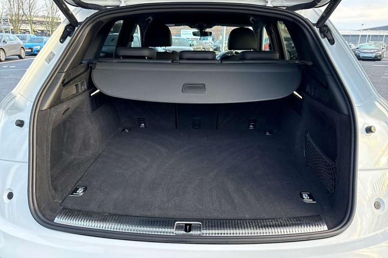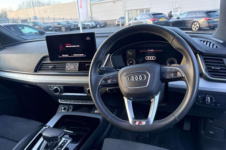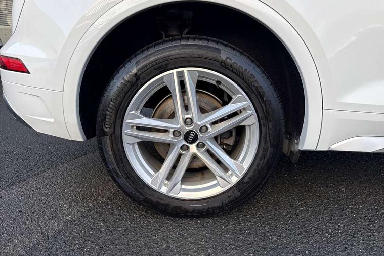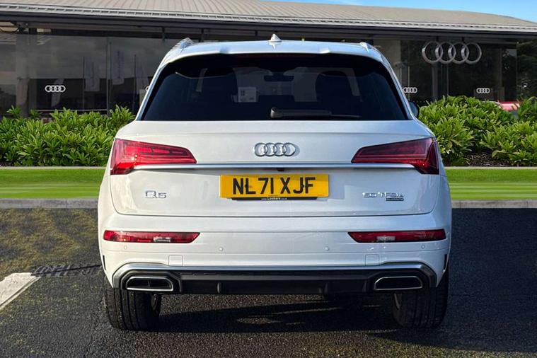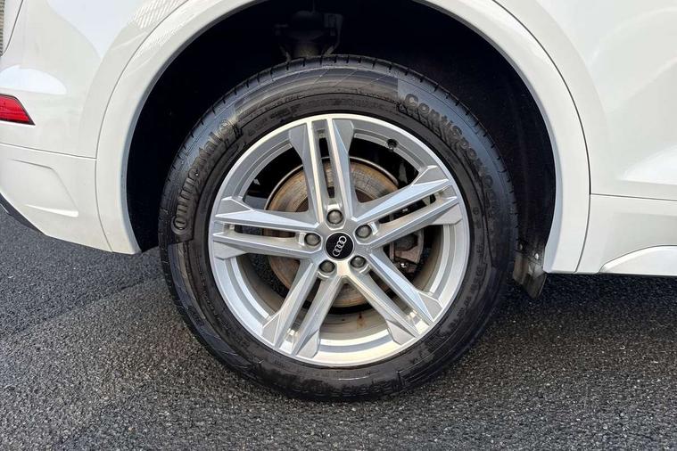 Audi connect safety and service (e-call), Audi connect with Amazon Alexa Integration, Audi drive select, Audi virtual cockpit plus with 12.3" screen and three different layout designs, Audi wireless smartphone interface, Automatic start-stop system with coasting functionality and efficiency programme, Bluetooth interface, Electro - mechanical power assisted steering, MMI navigation plus with 10.1" touch screen, Power tailgate, Reversing camera, Service interval indicator, Voice control system with Audi hotword activation "Hey Audi", 3 pin 10 amp domestic charging cable, Dynamic suspension, Quattro on demand, Type 2 mode 3 22kW 32 amp charging cable, Type 2 socket for AC charging, DAB Digital radio, Acoustic windscreen, Aluminium roof rails, Audi matrix LED headlights with dynamic front and rear indicators, Auto dimming rear view mirror, Automatic headlights and windscreen wipers, Body colour bumpers, Body colour door mirrors, Body colour rear diffuser with matt aluminium silver surrounds, Body colour underbody protection, Chrome plated exhaust trims, Door sills in Selenite silver, Electric adjustable/heated/folding door mirrors, Front air inlet surrounds in aluminium, Front and rear electric windows, Front radiator grille in honeycomb design, Headlight washers, Lower bumpers painted in contrast Manhattan grey, Rear chrome trim strip below lights, Rear privacy glass and rear side windows, Rear spoiler, Rear wiper, Roof bars, S Line badges on the front wings, S Line front and rear bumpers, S Line side skirts, 2 x USB charging port with aux input socket, 3 rear headrests, 40:20:40 split folding rear seat with rear centre armrest, Black cloth headlining, Comfort front centre armrest, Contrast stitching on seats, steering wheel and gear lever gaiter, Deluxe 3 zone electronic climate control, Front/rear floor mats, Gear lever in black leather, Heated front seats, Height adjustable front head restraints, Height/reach adjustable steering column, Illuminated door sill trims with S logo, ISOFIX child seat mounting and top tether, Manual seat adjustment with 4-way electric lumbar support, Rear seat bench plus, Sunvisors with vanity mirrors, Tool kit, Trunk roller cover, High gloss pack - Q5, LED interior light pack - Q5, 3 point seatbelts on all seats, 6 airbags - Driver, front passenger, curtain and side airbags, Electrically operated child locks on rear doors, Electromechanical parking brake, Electronic stabilisation control including ABS, ASR and EDL, Front passenger airbag deactivation, Hill descent control, Hill hold assist, Multi collision brake assist, Pop-up bonnet for pedestrian protection, Pre sense city, Seat belt force limiter, Seatbelt monitoring, Tyre pressure warning, Warning triangle and first aid kit, Anti theft alarm, Anti-theft wheel bolts, Keyless Go access/ignition system, Matt brushed aluminium inlays, Tyre repair kit,