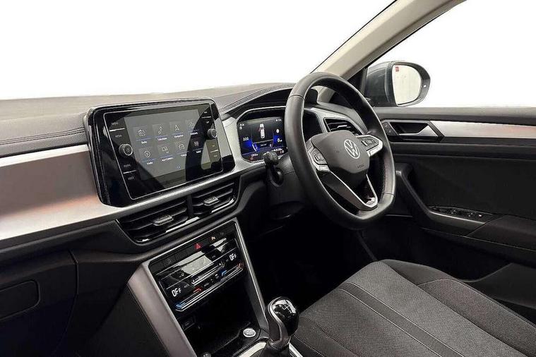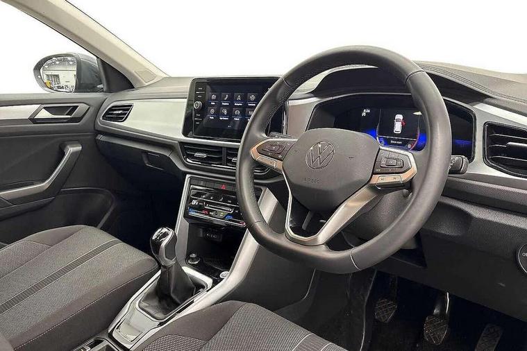 Advanced driver attention and drowsiness monitor, Dynamic road sign display, Emergency call service, Lane keeping system Lane Assist, Mobile phone interface, Modified key software - reduce switch off time for key status change to Long no motion, Online services, Park assist including front and rear parking sensors, Power assisted speed sensitive steering, Rear view camera, Service interval indicator, Tailgate/trunk lid release from outside, Think blue trainer driver tips and journey analysis, Warning sound and light for front seatbelts unfastened, Wireless app connect, Battery regeneration during braking, Front shock absorption, Rear shock absorption chassis with increased ride height, Start/stop function with battery regeneration, DAB Digital radio, Diversity antenna for FM reception, Front and rear 6 speakers, Music playback - MP3, WMA and AAC files, Premium USB cable in choice of either Apple or Android smartphone compatibility, SD card slot, Simultaneous pairing of 2 compatible mobile devices, Title and cover art display, We Connect and We Connect Plus functionality, Auto dimming interior rear view mirror, Automatic hazard lights activation under emergency braking, Automatic headlight control with LED separate daytime running lights with coming/leaving home function, Black roof rails, Body coloured bumpers and radiator grille with chrome trim and front fog lamps with chrome bezel, Body coloured exterior mirror housings and door handles, Electrically adjustable and heated door mirrors, Extended roof spoiler, Exterior mirrors aspherical on driver side, convex on front passenger side, External USB type C socket and charging sockets, Front windscreen wiper with intermittent wipe and 4 position delay, Heated rear window, LED 3rd brake light, LED rear combination lamps, LED rear number plate lights, Power windows with comfort operation and circuit breaker, Privacy glass for rear side windows and rear window, Rain sensor, Rear exhaust tailpipe, Rear fog light on one side and reversing lights on both sides, Rear side wing doors, Rear wash/wipe with intermittent wipe setting, Remote electrically foldable door mirrors, puddle lights and reverse activated passenger's door mirror, 12V power socket in centre console, 3 rear head restraints, 3 seat bench in 2nd row, 4 load lashing points in luggage compartment, Air care climatronic air conditoning system with active combination filter and 2-zone temperature control, Black stitching for floor mats, Ceramique roof liner, Cloth upholstery, Door and side trim panel in cloth, Drawer under drivers seat, Driver/front passenger seat height adjustment, Front centre armrest, Front comfort sports seats, Front cupholders x 2, Front reading light, Front seat back storage pockets, Glove compartment door with light, Instrument lighting, white adjustable panel illumination, Interior ambient lighting and surround lighting, Interior light delay, Isofix child seat preparation, Leather gearshift handle, Load-through provision with cup holder when folded down ('Unsplit rear seat bench, split folding backrest, with centre armrest), Luggage compartment lighting, Lumbar support for driver's and front passengers seat, Non-folding front passenger seat backrest, Single front passenger seat, Storage compartment in left and right luggage area, Storage compartment in rear doors, Storage compartments in driver and front passenger doors, Sunvisors with illuminated vanity mirrors, Variable boot floor, height adjustable and removable, Driver assistance pack without proactive passenger protection - T-Roc Life/Match, 3 point height adj front seatbelts + pretensioners, 3 point seatbelts in outer rear with ECE label, ABS, Child locks on rear doors, City emergency braking and pedestrian monitoring, Driver and front passenger airbag with front passenger airbag deactivation, Driver and front passenger safety-optimised head restraints, Drivers seatbelt reminder, Electronic parking brake, Electronic Stability Control (ESC) inc EDL (Electronic Differential Lock) and ASR (Traction Control), Front and rear passengers curtain airbag system including front side airbags, Front disc brakes, Hill start assist, Predictive pedestrian protection, Rear disc brakes, Two tone horn, Tyre pressure loss indicator, Volkswagen roadside assistance, Alarm with interior protection, Keyless locking and starting system keyless access with safelock, Pewter matt decorative inserts for intrument panel, centre console and door panels at the front, Trims for alloy wheels,