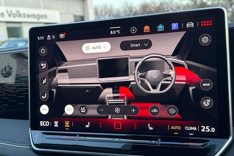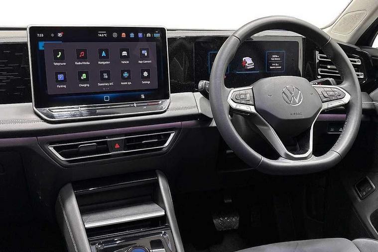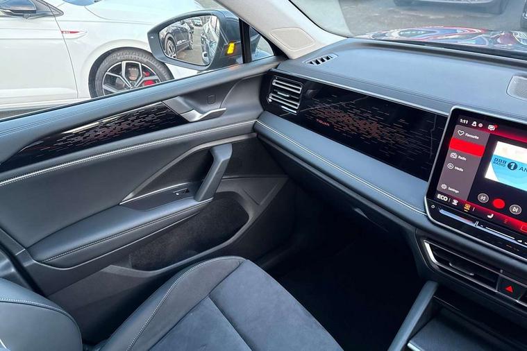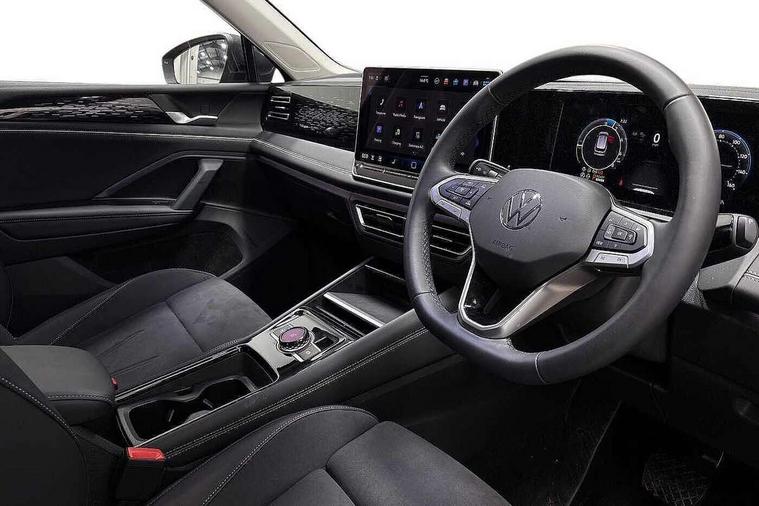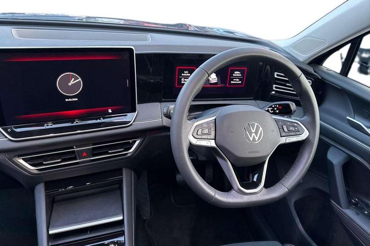 Adaptive cruise control (ACC), Advanced driver attention and drowsiness monitor, Bluetooth mobile phone interface, Car2X technology, Comfort drive travel assist, lane keeping system, lane assist and emergency assist, Digital Cockpit Pro - 10.25" high resolution dash display screen with customisable menus and information, Dynamic road sign display, E-Sim card for online connectivity, eCall emergency call service, Front Assist - Autonomous emergency braking with pedestrian and cyclist monitoring, Lane change system, Side assist, Rear traffic alert and Exit warning system, Multifunction front facing camera, Oncoming vehicle braking when turning including swerve support, Park assist pro with park distance control (Remote park assist), Power assisted steering with speed sensitive, Start/stop system with regenerative braking, Warning signal and warning light for front and rear seatbelts not fastened, Wireless App-Connect, Adaptive chassis control DCC pro includes driving mode selection, Charging cable Mode 3 Type 2 / 3 (16A), Front shock absorption, Front wheel drive, Rear shock absorption, Digital radio reception (DAB), Diversity antenna for FM reception, Air intake with Chrome trim, Ambient lighting with logo projection, Auto dimming interior rear view mirror, Automatic headlight control system, Body colored bumpers in R-Line style, Body coloured door handles, Body-coloured exterior mirror housings, Chrome moldings on the side windows, Coming/leaving home lighting function, Heat insulating glass in side and rear windows, Heated rear window, Heated windscreen washer jets, High level 3rd brake light, Illuminated door handle recesses, Illuminated lightline between headlamps, Laminated safety glass from B-pillar backwards 90% tinted, Laminated safety glass windshield, Rain sensor windscreen wipers, Rear fog light on one side, reversing light on both sides, Rear side wing doors, Rear wiper, Silver roof rails, 12V outlet in center console rear and in luggage compartment, 12V socket in centre console, 3 bench rear seats in 2nd row, Air care climatronic 3 zone air conditioning system with rear air conditioning control panel, Carpet mats, front and rear, Centre console with illuminated storage compartment with sliding cover and two drinks holders, Ceramique headlining, Chrome elements on the mirror switch and power window switches and door pulls, Door and side trim panel with leatherette insert, Door sill protectors, Front centre armrest, Interior ambient lighting with 30 colour options, ISOFIX anchors for child seats on outer rear seats and front passenger seat compatible with i-Size, Mechanical rear seat release, Power adjustable lumbar support in front, Rear bench seat, split folding, longitudinally movable and folding with load-through hatch and centre armrest, Safety optimised front head restraints, Single front passenger seat, Sports comfort seats in front, Sun visors with illuminated vanity mirrors, Three rear head restraints, Variable luggage compartment floor, Comfort package incl. Memory feature for Park assist and Safelock - Tiguan, Driver assistance package - Tiguan, 3 point seat belt for centre rear seats, 3 Point seat belts in front with pretensioners, 3 point seatbelts in outer rear with ECE label, Driver and front passenger airbag with front passenger airbag deactivation, Electronic parking brake with auto hold, Front and rear curtain airbags, Front and rear side airbags, Front centre airbag, Front disc brakes, Hill start assist, Manual child proof rear door locks, Rear disc brakes, Two tone horn, Warning triangle, Anti theft wheel bolts, Decorative inserts Cross in dash and front door panels, Interior door handle in matte chrome, Soul instrument panel, Tool kit for tyre mobility set, Tyre mobility kit including compressor and sealing foam,