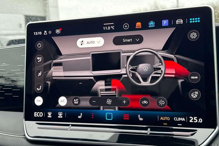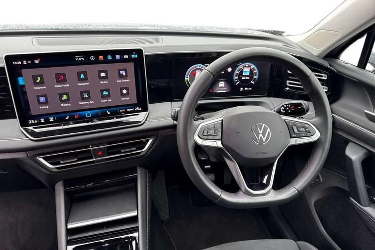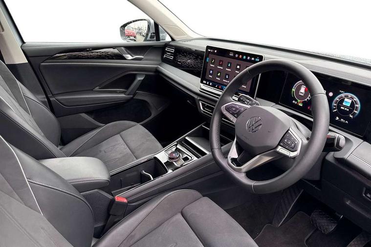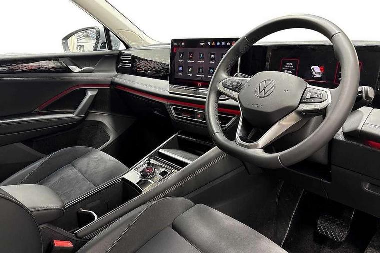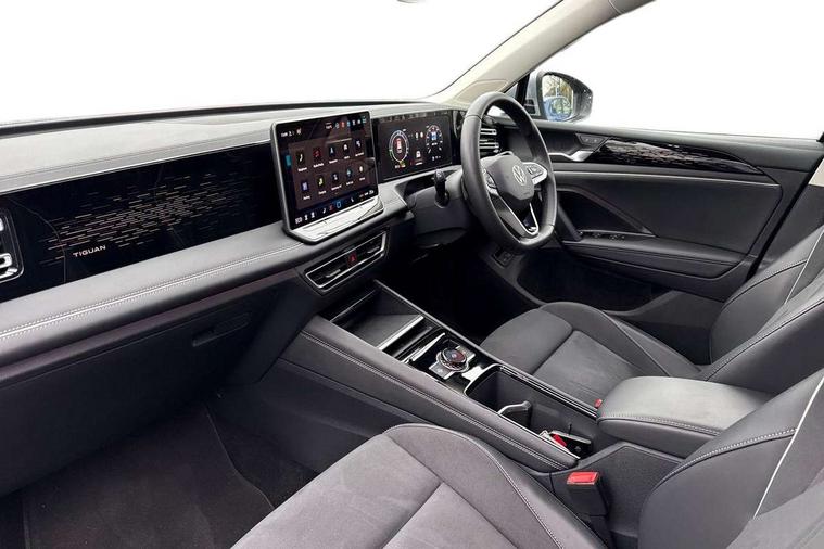 Adaptive cruise control (ACC), Advanced driver attention and drowsiness monitor, Bluetooth mobile phone interface, Car2X technology, Comfort drive travel assist, lane keeping system, lane assist and emergency assist, Digital Cockpit Pro - 10.25" high resolution dash display screen with customisable menus and information, Dynamic road sign display, E-Sim card for online connectivity, eCall emergency call service, Front Assist - Autonomous emergency braking with pedestrian and cyclist monitoring, Lane change system, Side assist, Rear traffic alert and Exit warning system, Multifunction front facing camera, Oncoming vehicle braking when turning including swerve support, Park assist pro with park distance control (Remote park assist), Power assisted steering with speed sensitive, Start/stop system with regenerative braking, Warning signal and warning light for front and rear seatbelts not fastened, Wireless App-Connect, Adaptive chassis control DCC pro includes driving mode selection, Charging cable Mode 3 Type 2 / 3 (16A), Front shock absorption, Front wheel drive, Rear shock absorption, Digital radio reception (DAB), Diversity antenna for FM reception, Air intake with Chrome trim, Ambient lighting with logo projection, Auto dimming interior rear view mirror, Automatic headlight control system, Body colored bumpers in R-Line style, Body coloured door handles, Body-coloured exterior mirror housings, Chrome moldings on the side windows, Coming/leaving home lighting function, Heat insulating glass in side and rear windows, Heated rear window, Heated windscreen washer jets, High level 3rd brake light, Illuminated door handle recesses, Illuminated lightline between headlamps, Laminated safety glass from B-pillar backwards 90% tinted, Laminated safety glass windshield, Rain sensor windscreen wipers, Rear fog light on one side, reversing light on both sides, Rear side wing doors, Rear wiper, Silver roof rails, 12V outlet in center console rear and in luggage compartment, 12V socket in centre console, 3 bench rear seats in 2nd row, Air care climatronic 3 zone air conditioning system with rear air conditioning control panel, Carpet mats, front and rear, Centre console with illuminated storage compartment with sliding cover and two drinks holders, Ceramique headlining, Chrome elements on the mirror switch and power window switches and door pulls, Door and side trim panel with leatherette insert, Door sill protectors, Front centre armrest, Interior ambient lighting with 30 colour options, ISOFIX anchors for child seats on outer rear seats and front passenger seat compatible with i-Size, Mechanical rear seat release, Power adjustable lumbar support in front, Rear bench seat, split folding, longitudinally movable and folding with load-through hatch and centre armrest, Safety optimised front head restraints, Single front passenger seat, Sports comfort seats in front, Sun visors with illuminated vanity mirrors, Three rear head restraints, Variable luggage compartment floor, Comfort package incl. Memory feature for Park assist and Safelock - Tiguan, Driver assistance package - Tiguan, 3 point seat belt for centre rear seats, 3 Point seat belts in front with pretensioners, 3 point seatbelts in outer rear with ECE label, Driver and front passenger airbag with front passenger airbag deactivation, Electronic parking brake with auto hold, Front and rear curtain airbags, Front and rear side airbags, Front centre airbag, Front disc brakes, Hill start assist, Manual child proof rear door locks, Rear disc brakes, Two tone horn, Warning triangle, Anti theft wheel bolts, Decorative inserts Cross in dash and front door panels, Interior door handle in matte chrome, Soul instrument panel, Tool kit for tyre mobility set, Tyre mobility kit including compressor and sealing foam,