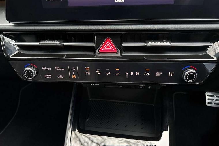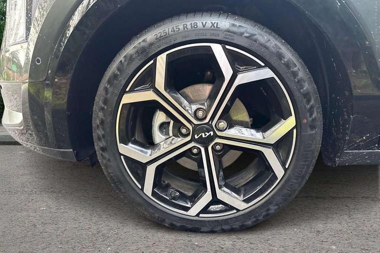 10.25" driver display screen, 10.25" touchscreen satellite navigation, Apple car play/Android Auto with voice control, Blind spot collision avoidance assist, Customisable Head Up Display, Drive mode select (Eco, normal, sport, snow), E-call, Emergency stop signalling system, Forward Collision-Avoidance Assist (FCA) 1.5 - City/Pedestrian/Cyclist/Junction turning, Front parking sensors, Highway Driving Assist (HDA), Intelligent speed limit assist, Kia Connect (UVO), Lane Following Assist (LFA), Lane keep assist, Motor driven power steering, Parking collision avoidance assist (PCA), Rear cross traffic collision avoidance assist (RCCA), Rear parking sensors, Remote smart parking assist, Reversing camera system, Safe exit warning (SEW), Smart cruise control with stop and go functionality, Smart power tailgate, Trip computer with distance/fuel consumption/average speed, Wireless Smartphone charger, 220v AC Inverter, 'Shark fin' mobile antenna, 6 speakers, Bluetooth with music streaming, DAB Digital radio, Steering wheel mounted controls, USB port for connection of a media device, Acoustic windshield, All round electric windows with drivers and front passenger auto up/down and safety function, Auto dimming rear view mirror, Automatic defog system, Automatic headlight control system, Black grille with chrome surround, Black window surrounds, Body colour bumpers, Body colour door mirrors, Body colour exterior door handles, Deluxe door scuff plates, Electrically adjustable and heated door mirrors with LED turn indicator, Electrically folding door mirrors, Front and rear chrome skid plates, Front fog lights, Gloss black wheel arches, Heated rear window, LED daytime running lights, LED Headlights, LED High mounted brake light, LED rear combination lights, Privacy glass - Rear windows and tailgate, Rain sensing front wipers, Rear fog lights, Rear roof spoiler, Rear side wing doors, Rear wiper, Roof rails, Solar glass windscreen, Sunroof with tilting and sliding function, Welcome and follow-me home light functionality, Windscreen Washer Level Warning, 12V socket in front, 12V socket in luggage compartment, 3 seat bench in 2nd row, 60:40 split remote folding rear seats, All-round height adjustable headrests, Alloy pedals, Artificial leather centre console storage box, Artificial leather steering wheel, Artificial leather upholstery, Automatic air conditioning, Centre console cupholder, Chrome coating interior door handles, Driver power adjusted memory seat, Driver/passenger sunvisors with illuminated vanity mirrors, Drivers seat power lumbar support, Front and rear door storage, Front passenger 1 x USB-C charging port, Front passenger power adjusted seat, Front passenger relaxation seat, Glove box, Heated front seats, Heated outer rear seats, Heated steering wheel, ISOFIX Child seat top tethers and anchor fixings, LED Front cabin, rear & luggage compartment lights, Luggage area load cover, Luggage board, Manually adjustable steering column, Paddle shifts, Power adjustable lumbar support on front passenger seat, Rear centre armrest with cupholder, Rear passenger 2 x USB-C charging ports, Seatback pocket - driver, Seatback pocket - front passenger, Shift by wire SBW, Single front passenger seat, Ventilated front seats, Ventiliation ducts to rear compartment, 3 point seatbelts on all seats, ABS, Automatic unlocking of doors in case of impact, Curtain and side airbags, Dual shell horn, Electric parking brake with auto hold function, Electronic stability control, Front airbags, Front passenger airbag cut-off switch, Height adjustable front seatbelts, Hill start assist control (HAC), Knee airbags, Seatbelt reminder warning, Traction control, Tyre pressure monitoring system, Customisable automatic door locking, Customisable automatic door unlocking, Deadlocks, Engine Start/Stop Button with Smart Entry System, Locking wheel nuts, Manual child locks, Rear occupant alert, Smart key with motion sensor, Thatcham category 2 security alarm and immobiliser, Visible vehicle identification number, Warranty - 7 Years/ 100, 000 miles, Centre fascia chopped carbon, 18" Alloy wheels, Tyre mobility kit,