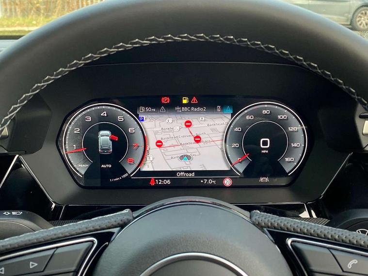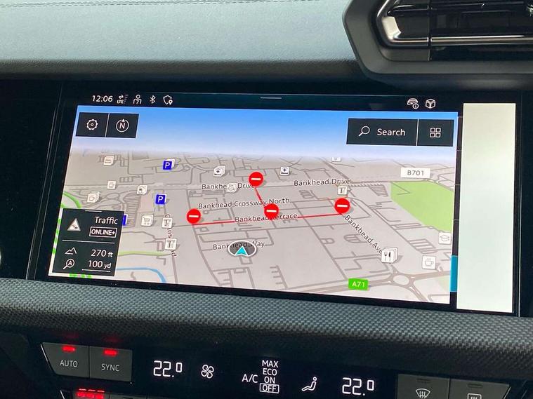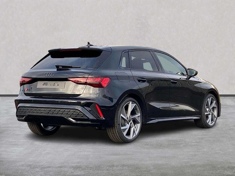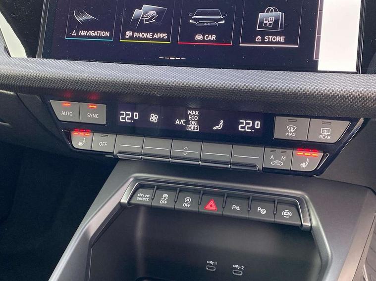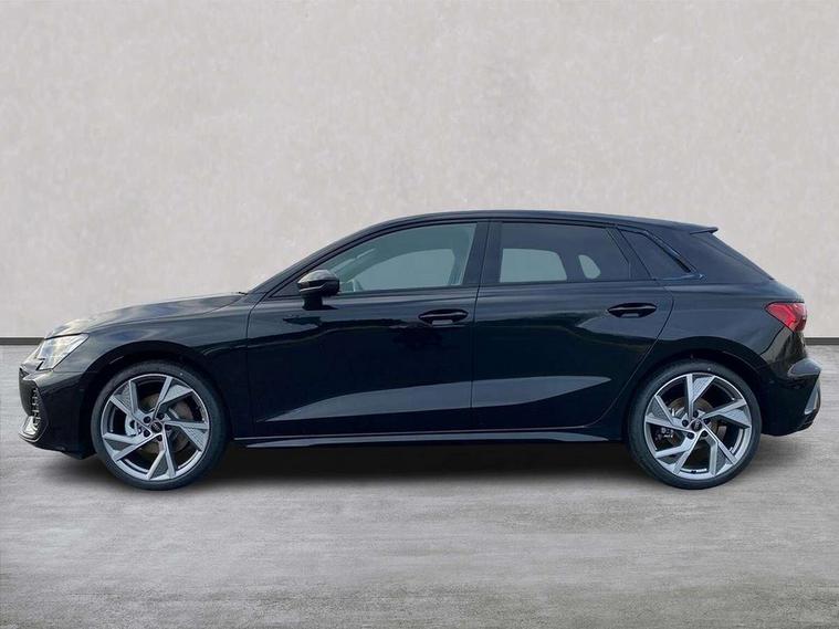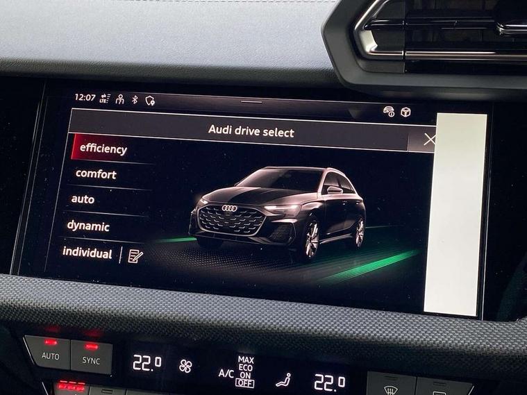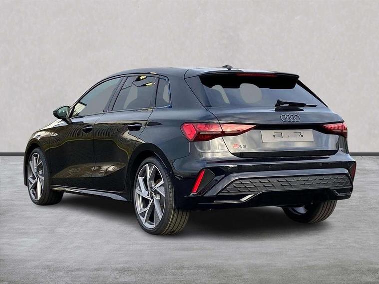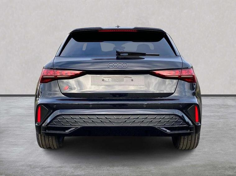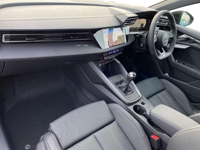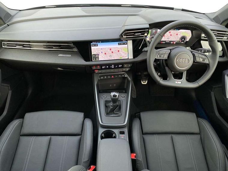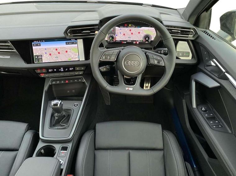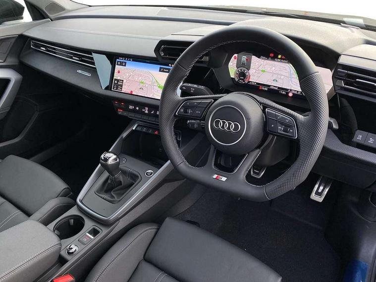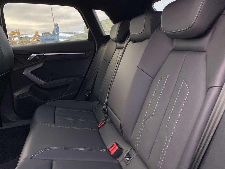 Adjustable speed limiter, Audi drive select, Audi smartphone interface with app store includes wireless Apple carplay, Android auto and Amazon alexa integration, Audi virtual cockpit plus - 12.3" full HD resolution dynamic digital instrument cluster, Automatic start/stop system with recuperation, Bluetooth interface, Camera based traffic sign recognition, Collision avoidance assistant, Cruise control, Distraction and Fatigue warning, e-Call (emergency call), Electromechanical power speed sensitive steering, Lane departure warning system, MMI Navigation Plus with high resolution 10.1" colour touch screen display, Park Assist with parking system Plus, Service indicator, Trip computer, Voice control system with natural language interaction, Sports suspension, Audi Phonebox light with wireless charging, Audi sound system - 10 loudspeakers including centre loudspeaker and subwoofer, DAB Digital radio, USB ports with charging function in the rear, 3rd brake light, Acoustic glass windscreen, Anthracite grey Audi rings (front and rear), Audi beam uses LEDs to project the Audi logo onto the ground as you exit your A3, Auto dimming frameless rear view mirror, Black accents front and rear bumpers, Black accents in the area of the Audi single frame grille, Black accents window trims strips, Electrically adjustable/heated/folding/dimming door mirrors with kerb view includes integrated LED indications + kerb view function for passenger side, Exterior model badging, Front electric windows, Heat insulating glass windscreen, Illuminated door sills with aluminium inserts at the front with S logo, LED daytime running lights, LED headlights with LED rear lights and dynamic rear indicators, Light and rain sensors, Privacy glass - dark tinted rear window, rear door and side windows, Rear electric windows, Rear side wing doors, Rear wiper, S roof spoiler, 12V socket and storage compartment in front centre console, 3 seat bench in 2nd row, 3 spoke flat bottomed leather multifunction sport steering wheel with gear shift paddles, 3-zone deluxe automatic air conditioning, 4 way electrically adjustable lumbar support for driver and front passenger, 40/20/40 split folding rear seat bench, Black cloth headlining, Front and rear centre armrest in artificial leather, Front and rear headrests, Front/rear floor mats, Heated front seats, Height and reach adjustable steering wheel, Manual boot compartment lid, Manually adjustable front seats, S badging on the steering wheel, Seat side bolsters, Single front passenger seat, Stainless steel pedals and front footrest in black, Twin leather upholstery with front sports seats S embossed logo, Aluminium interior elements pack - A3 Sportback, Multi-coloured LED interior lighting pack - A3, 3x3 point rear seat belts, Driver and front passenger airbag with passenger airbag deactivation, Electronic Stabilisation Control (ESC) including ABS, ASR and EDL, First aid kit with warning triangle and 2 safety vests, Front side airbags with head airbags and interaction airbag, Hill hold assist, Pre-sense front with pedestrian and cyclist detection, Seatbelt monitoring, Tyre pressure loss indicator, Anti theft alarm, Anti-theft wheel bolts, Electronically operated child locks, Immobiliser, Remote control central locking, Inlays in black Impressum woven textile,