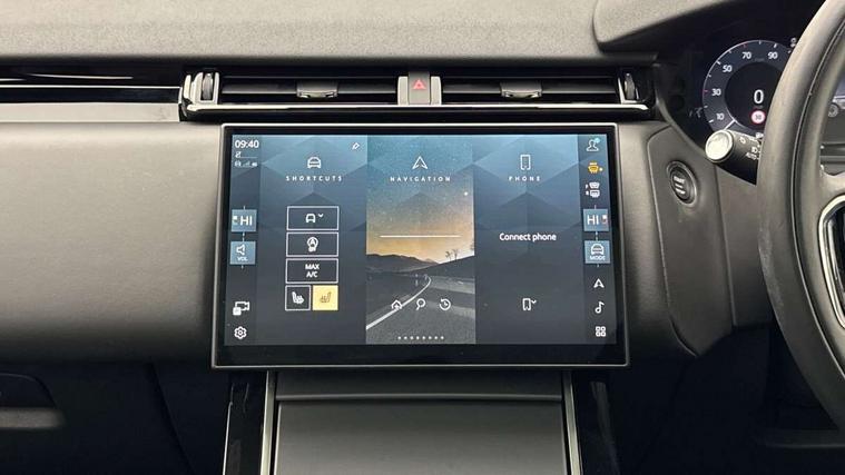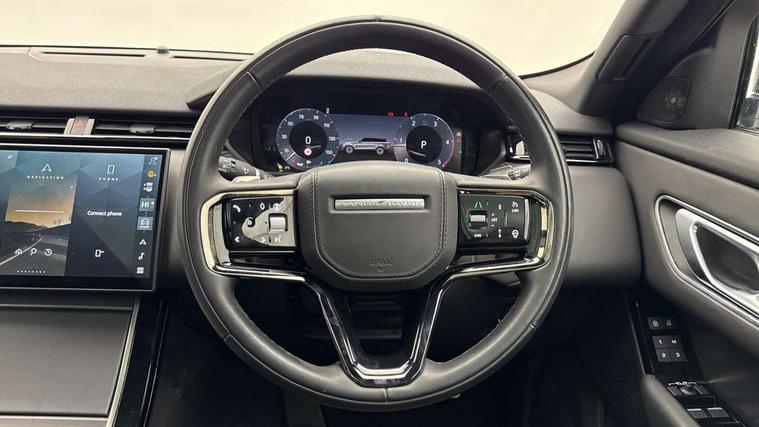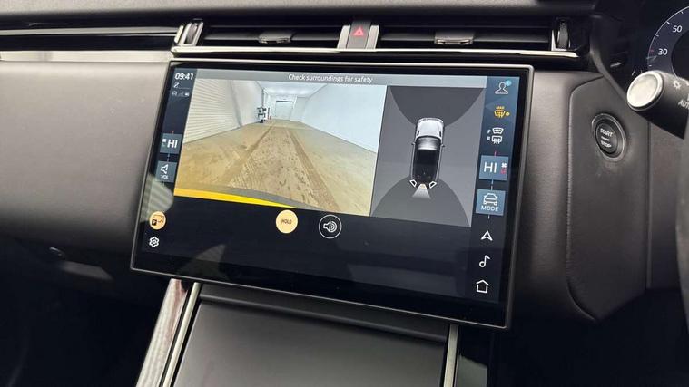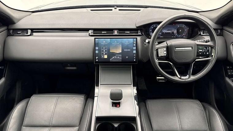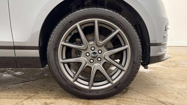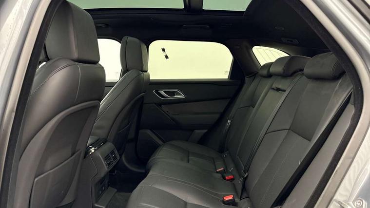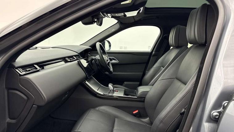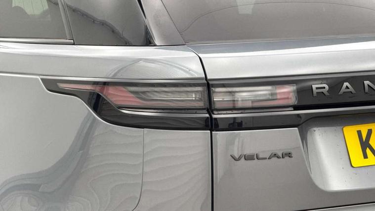 Adaptive cruise control with steering assist, Android Auto, Apple CarPlay, Blind spot assist, Bluetooth connectivity, Brake pad wear indicator warning light, Driver condition monitor, eCall emergency call system, Front and rear parking aid, InControl remote, Land Rover InControl apps, Lane keep assist, Pivi pro with connected navigation, Rear collision monitor, Rear traffic monitor, Service indicator, Speed proportional electronic power assisted steering (EPAS), Traffic sign recognition with adaptive speed limiter, Trip computer, Voice control system, Wireless device charging, 8 speed automatic transmission, Adaptive dynamics, All terrain progress control, Electronic air suspension, Open differential with torque vectoring by braking, Single speed transfer box, DAB radio, Steering wheel mounted controls, 3rd brake light, Acoustic laminated windscreen, Auto dimming interior rear view mirror, Automatic headlamp levelling, Automatic headlights, Body coloured bumpers, Boot protection plate, Electric windows with one touch open/close and anti trap, Flush deployable exterior door handles, Follow me home headlights, Heated rear window with timer, Heated washer jets, Heated windscreen, Metal front tread plates, Metal load space scuff plates, Pixel LED headlights with signature DRL, Power fold, auto-dimming, heated door mirrors with memory and approach lights, Rain sensor windscreen wipers, Rear animated directional indicators, Rear fog lights, Rear side wing doors, Rear wash/wipe, Tailgate/boot lid spoiler, Trailer stability assist, Velar badge, 3 seat bench in 2nd row, Ambient lighting, Bright metal pedals, Carpet mats, Driver/passenger sunvisors with illuminated vanity mirrors, Ebony morzine headlining, Electrically adjustable steering column, Extended leather upgrade, Heated steering wheel, Isofix system on outer rear seats, Loadspace cover, Overhead lighting console, Overhead stowage for sunglasses, Passive front headrests, Rear air vents, Rear centre headrest, Single front passenger seat, Twin front cupholders, Twin sliding front centre armrest, Online pack with data plan - Velar, Power socket pack 2 - Velar, 355mm Front and 325mm Rear brakes, 3x3 point rear seatbelts, Anti-lock braking system (ABS), Cornering brake control, Curtain airbags, Customer configurable autolock, Door side intrusion beams, Driver airbag, DSC - Dynamic Stability Control, Electronic brake force distribution, Electronic parking brake, Electronic traction control, Emergency braking, Front and rear seatbelt reminder, Hill descent control, Hill launch assist, Low traction launch, Passenger airbag, Power operated child locks, Rear airbags, Roll stability control, Side airbags, Tyre pressure monitoring system (TPMS), Global lock and unlock switch on driver door, Immobiliser, Intrusion sensor, Keyless entry, Lock only switch on front passenger door, Locking wheel nuts, Perimetric alarm, Remote central locking, All season tyres,