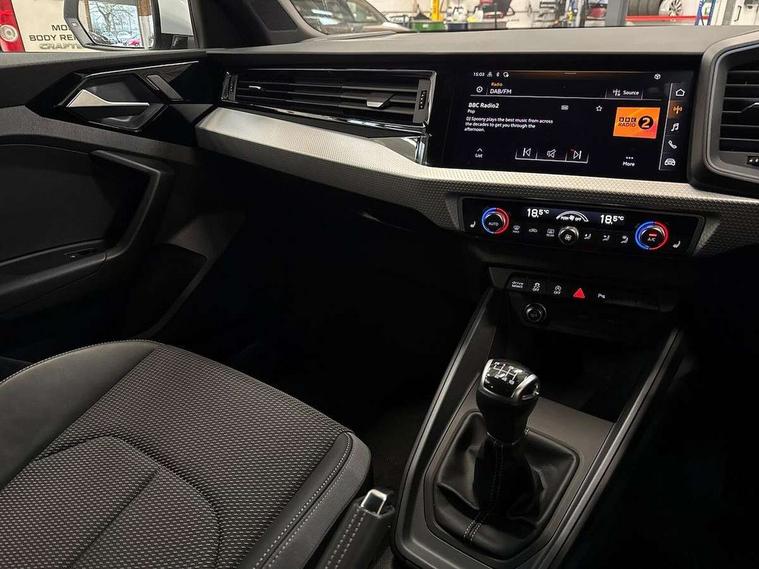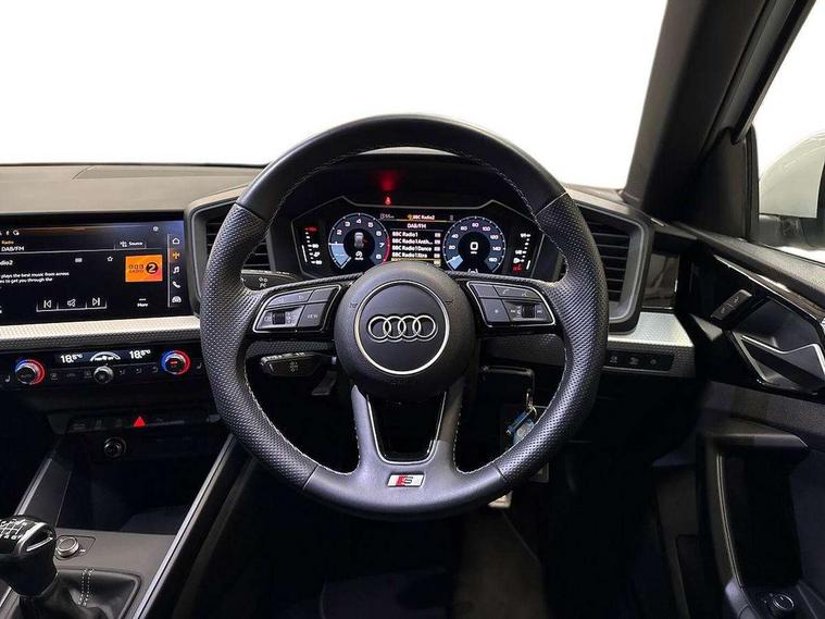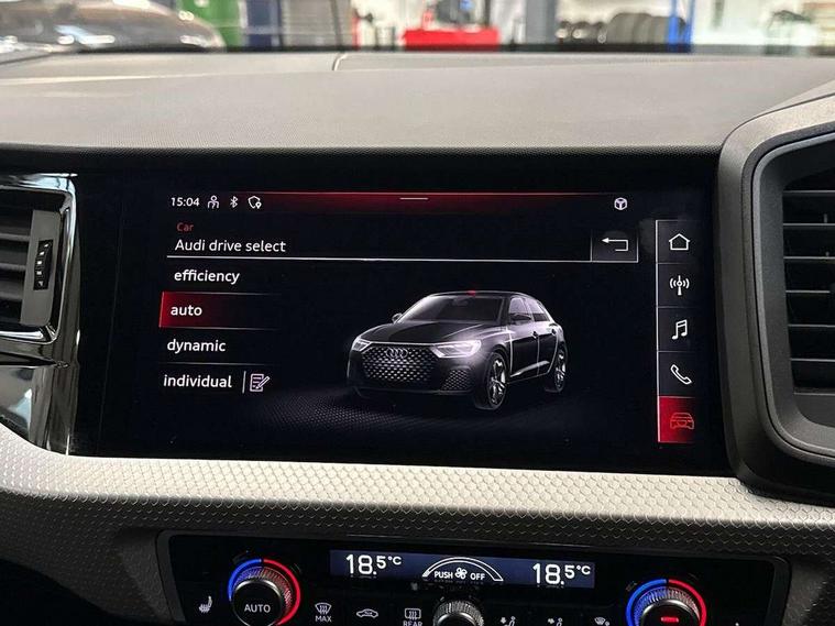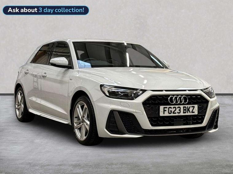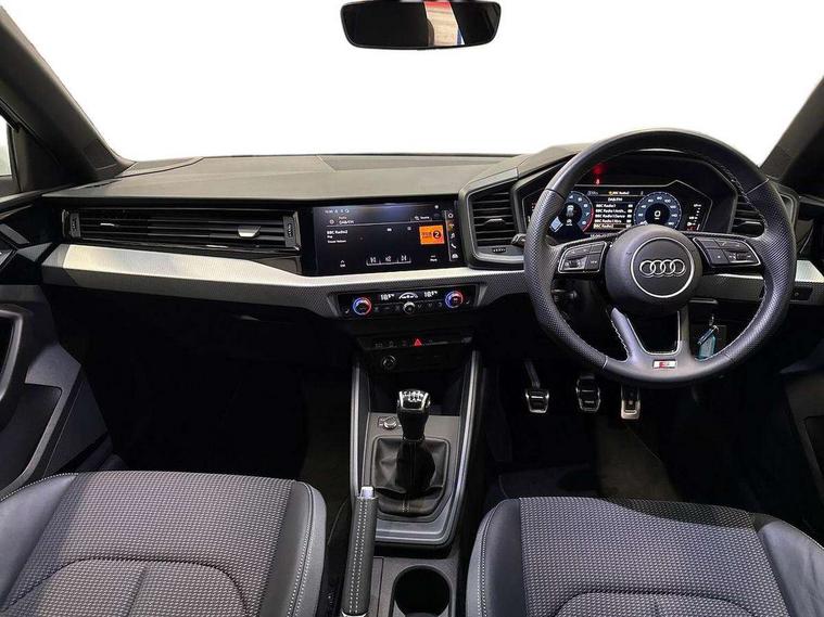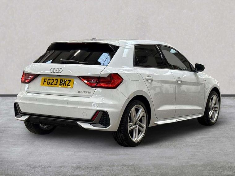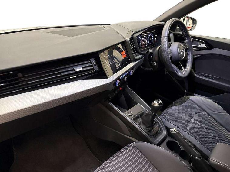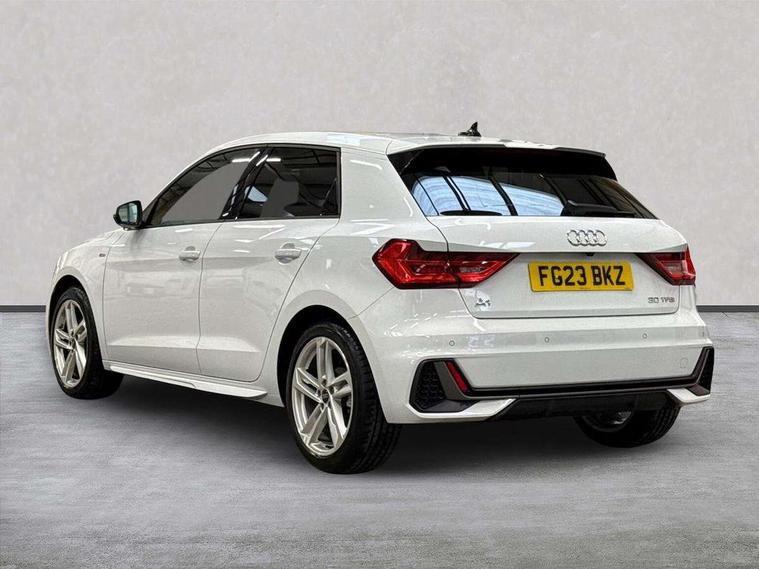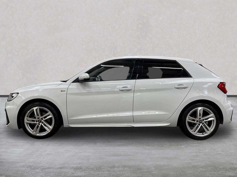 10.25" Digital instrument cluster display classis style instrument dials + speed, odometer, time, outside temperature, telephone menu + fuel level warning, Audi drive select - power steering assistance + engine, Audi smartphone interface with connect compatible smartphone via USB directly MMI display + Nav, music, third party apps controlled via MMI controller, Automatic start/stop system, Bluetooth interface, Cruise control, Driver's information system, Electromechanical power steering, Emergency e-call, Emergency services call system, Lane departure warning system, Service interval indicator, Speed limiter, Voice control system, Washer fluid level indicator, Sports suspension, 1 x SDXC card reader, 2 x USB type C connection points, DAB Digital radio, MMI radio plus with 8.8" colour MMI display screen and MMI touch, Auto dimming rear view mirror, Body coloured door mirrors, Door sills with aluminium inlays and S Line logo, Electric front and rear windows, Electrically adjustable, heated, folding door mirrors with integrated LED side indicator, Front side air inlets in grained matt black and C frame in anthracite black, Heat insulating glass windscreen and side windows, Heated rear windscreen, High level LED brake light, LED headlights with LED rear lights + dynamic rear indicators + headlight adjustment and high beam, turning light + LED daytime running lights, Radiator grille and rear diffuser in matt anthracite black, Radiator protective grille frame in matt aluminium silver, Rain and light sensors, Rear fog lights, Rear side wing doors, Rear wing door, Rear wiper, S line badges on front wings, Side front spoiler lips in grained matt black, 12V socket in centre console with two cup holders, 3 rear seats with headrests, 3 seat bench in 2nd row, 3 spoke leather multi-function plus steering wheel features S badging and grips in perforated leather with contrast stitching, 40:60 Split folding rear seat or folded fully, Black cloth headlining, Driver and passenger seat with manual height adjust with forward and backwards adjustment, Front and rear black floor mats with contrast stitching in fine silver, Front head restraints, Front passenger seat, Height and reach adjustable steering wheel, ISOFIX child seat mounting for front passenger and outer rear seats including top tether attachment point of outer rear seats, Leather gear knob with aluminium trim, Luggage compartment light with front and rear reading lights, Manually adjustable lumbar support in front seats, Stainless steel pedals, LED interior lighting pack - A1, Luggage compartment pack - A1, S line exterior styling pack - A1 Sportback, 3x3 point rear seatbelts, Audi pre-sense front with pedestrain and cyclist recognition, Brake assist function, Driver and front passenger airbag with front side and head airbags, Electronic Stability Control including ABS, EBD, ASR and EDL, Front passenger airbag deactivation switch, Hill hold assist, Manual rear child locks, Seatbelt height adjustment for front seats, Seatbelt monitoring, Tyre pressure warning light, Warning triangle and first aid kit, Anti theft alarm, Anti theft wheel bolts and loose wheel warning, Immobiliser, Remote central locking with 2 foldaway keys, Aluminium trim for control switches, air vents and digital instrument cluster, Silver grey inlays polygon structure in diamond paint finish, Structured grey accent areas including air vents, door handle recesses and centre console in quartz paint finish,
