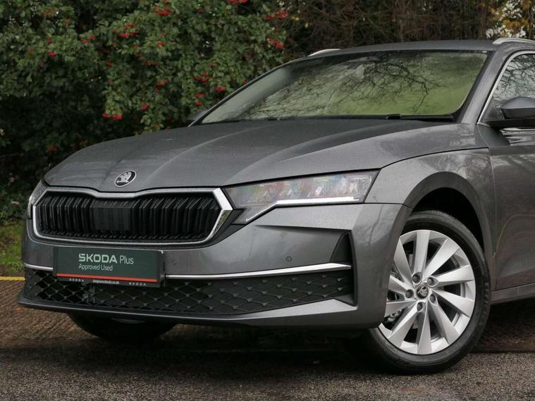 1x USB Typc C port in rear view mirror, 4x USB Type C ports - 2x in front centre console and 2x in rear (45W), Drive mode selection, Driver fatigue sensor, eCall emergency system, Electro-mechanical power steering, Front assist system, Traffic sign recognition, Turn Assist, Virtual Cockpit - 10.25" digital display, Voice control system, Wireless charging (15W) with cooling function, Wireless SmartLink for Apple CarPlay and Android Auto, 13" touchscreen display with navigation, DAB Digital radio, Aero front windscreen wipers with intermittent function, Auto dimming rear view mirror, Body colour bumpers, Body colour door mirrors and handles, Chrome grille surround, Chrome roof rails, Chrome strip in lower front bumper, Chrome window surrounds, Electric front and rear windows, Electrically adjustable, heated, folding and driver side auto-dimming door mirrors, Heated rear windscreen, High level third brake light, Ice scraper in fuel cap, LED daytime running lights, LED Headlights, Logo projection in front doors, Rain and light sensors, Rear fog light on one side and reversing lights on both sides, Rear privacy glass, Rear side wing doors, Rear spoiler, Rear window wiper, 12 volt socket in boot, 3 rear headrests, 3 seat bench in 2nd row, 4 foldable roof handles, Front head restraints, Heated front seats, Illuminated glovebox, Interior door handles in dark chrome, Jumbo Box storage, Luggage compartment lighting x2 lights, Mechanical rear seat release from boot, Single front passenger seat, Steering wheel in black leather with black stitching, Storage compartments in left and right of boot, Sun visors with mirrors, Sunglasses storage, Ticket holder, Two-spoke leather multi function steering wheel with paddles, Umbrella in door panel, Unsplit rear bench seat, split folding backrest with centre armrest with cupholder, Comfort package - Octavia Estate, Simply clever package premium - Octavia, 3x3 point rear seat belts, Alarm with interior monitoring, tilt sensor and back up horn, Curtain airbags and front side airbags, Driver and front passenger airbags, Drivers knee airbag, Electronic parking brake, ESC including ABS, EBV, MSR, ASR, EDS, HBA, DSR, Front central airbag, Hill hold assist, ISOFIX on front passenger seat and outer rear seats, Passenger airbag deactivate switch, Three point seat belts in front and rear, Two tone horn, Tyre pressure monitor, Visual and acoustic seat belt reminder, Warning reflectors in front door, Anti-theft wheel bolts, Keyless entry and start/stop, Remote central locking, Chrome air vent surrounds,