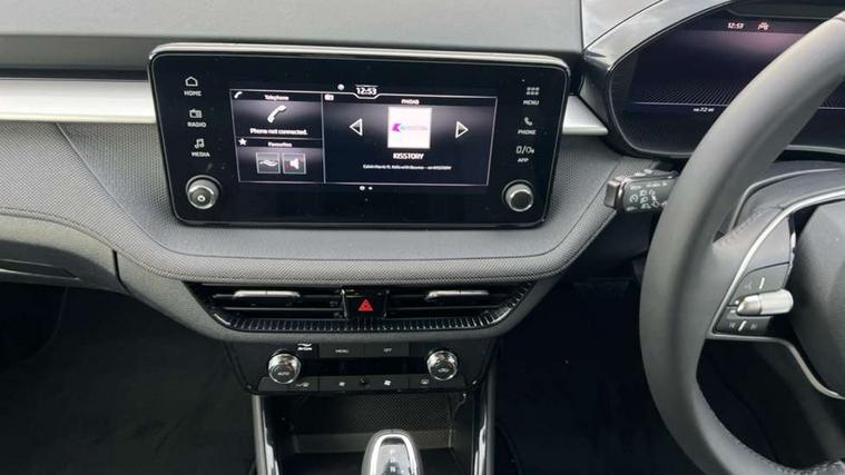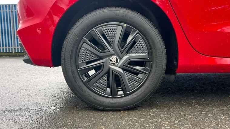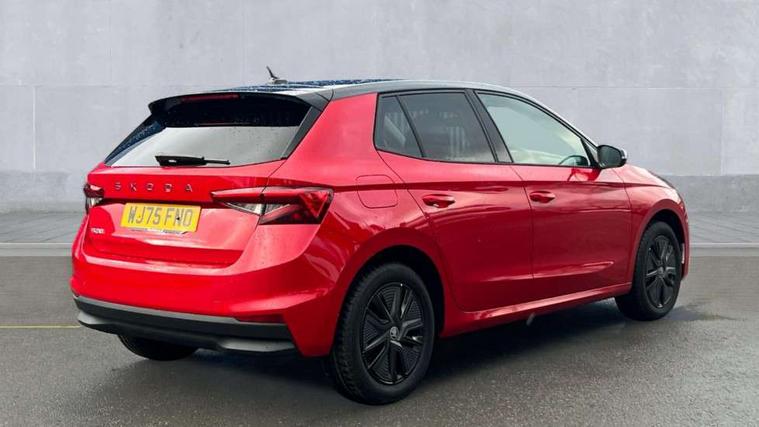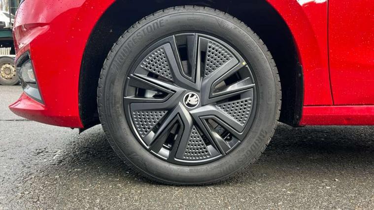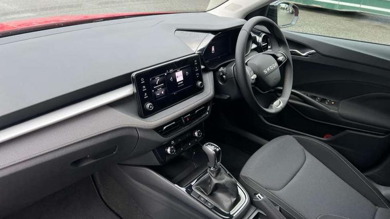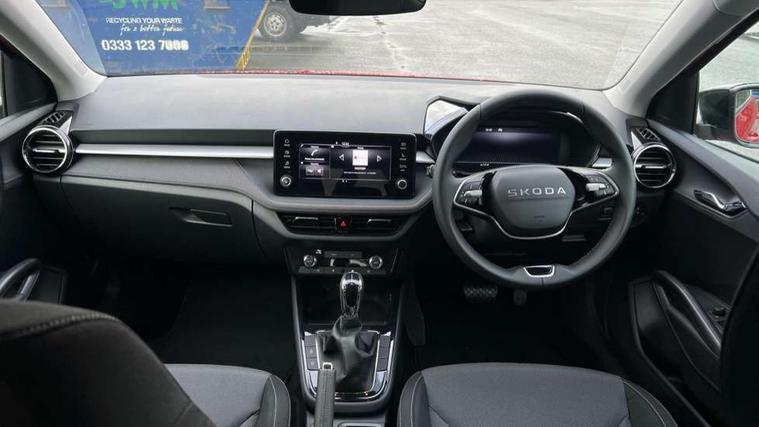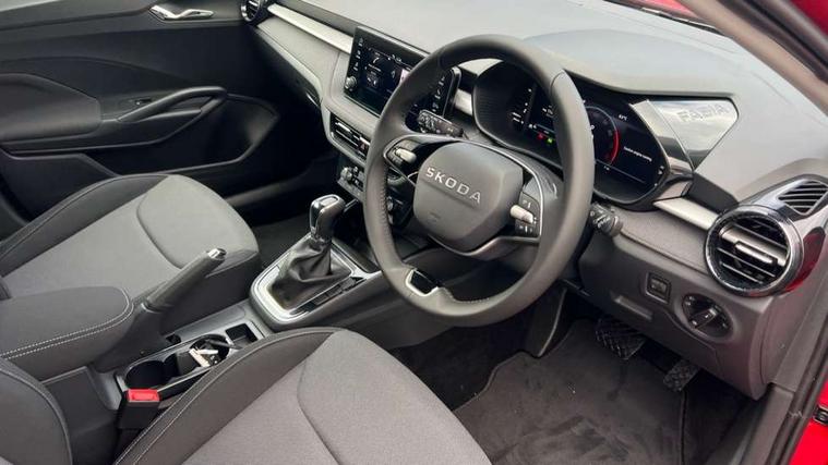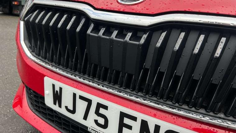 Advanced driver attention and drowsiness monitor, Bluetooth connection, Driver alert system, Electromechanical power steering, Exterior temperature gauge, Service interval indicator, Traffic sign recognition, Virtual cockpit with 10.25" colour display, Wireless SmartLink for Apple CarPlay and Android Auto, 6 Speakers (4 in front and 2 in rear), Auxiliary socket for external MP3 player, DAB digital radio reception, Auto dimming rear view mirror, Body coloured bumpers, Door mirror integrated indicators, Front and rear electric windows, Front window wiper intermittent control, Headlight range control - Automatic, Ice scraper in fuel cap, LED 3rd brake light, LED daytime running lights with coming and leaving home feature, LED rear lights, Privacy glass, Rear LED fog light, Rear side wing doors, Rear window wiper with washing nozzles, Roof mounted spoiler, SKODA tailgate lettering in chrome, Unique dark chrome design logo on alloy wheels, 2 reading lights in front and 2 reading lights in rear, 3 rear headrests, Backrest split and folding, Central console with removable cup holder and storage box, Chrome handbrake release button, Dual zone air conditioning with climatronic electronic control, Fabric upholstery, Front centre armrest, Gearshift knob/handle in leather, Grain satin black interior door handles, Hand brake lever handle in leather, Height adjustable front headrests, Height adjustable front seats, Height adjustable steering wheel, ISOFIX and TopTether anchorage points to the outer rear seats, ISOFIX and TopTether on the front passenger seat, Luggage compartment lighting, Manually adjustable lumbar support in front seats, Pollen filter, Rear seat bench unsplit, Single front passenger seat, Skoda lettering on steering wheel, Storm grey headlining, Sun visors with mirror and airbag label on passenger side, Textile floor mats, Ticket holder, Ambient lighting pack - Fabia Hatchback, 3-point height adjustable front seats belts with pretensioner and force limiter, Automatic warning lights in case of crash, Driver and passengers airbag with switch off function, e-Call+, ESC including ABS, MSR, ASR, EDS, HBA and XDS, Front and rear seat belt warning, FRONT ASSIST (AEB City and AEB Inter Urban), Front side airbags, Head airbags, Hill hold control, One tone horn, Pedestrian protection, Three rear 3-points safety seat belts with pretensioner and force limiter including stop function for outer rear seat belts, Tyre pressure monitoring system, Anti-theft alarm system including immobiliser, interior monitoring, backup horn, and towing protection, Central locking with radio remote control, interior controls, SAFE function and 2 foldable keys, Colour Edition air vents, Grain satin black central console cover, Metallic grey upper decorative trim, Satin black door and side trim panel in front, Textile Kota grey lower decorative inserts, Anti-theft wheel bolts protection, Super-low rolling resistance tyres,