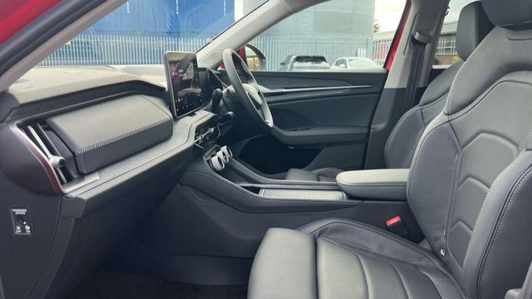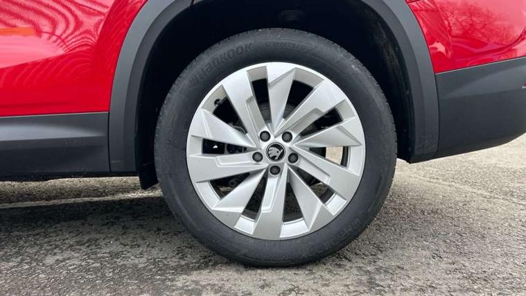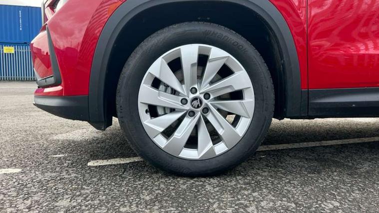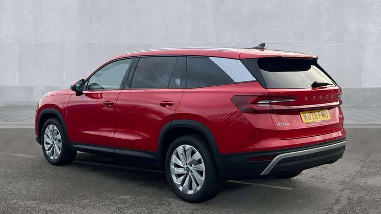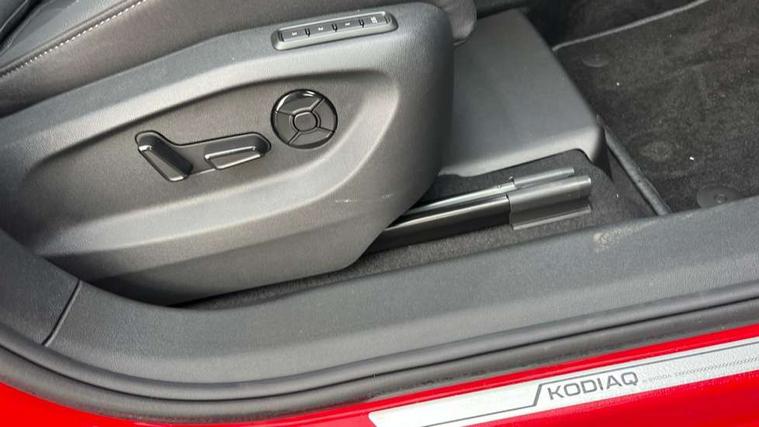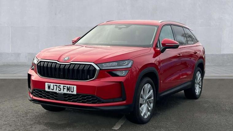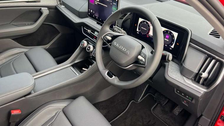 13" satellite navigation touchscreen display, Blind spot detection with door exit warning, Bluetooth system, ChatGPT functionality, Driver alert - Fatigue and drowsiness monitor, Dry display cleaner, Emergency call, Front and rear parking sensors, Front cross traffic assist, Lane assist, PAS, Rear traffic assist, Tailgate unlocking from outside, Traffic sign recognition, USB C Port x 2 in front centre console, Virtual Cockpit - 10.25" digital display, Voice control system, Wireless charging for two smartphones (15W) with cooling function, Wireless SmartLink for Apple CarPlay and Android Auto, Stop/start function, 2x USB-C in the rear, DAB Digital radio, Aero front windscreen wipers with intermittent function, Auto dimming rear view mirror, AWL (all weather lighting) and all weather light with cornering function, Black wheel arch surrounds, Body colour bumpers, Body colour door mirrors and handles, Cornering light and poor weather light, Electric folding /adjustable/separted heated/folding door mirrors, auto dimming with boarding sports and memory function, Electric front and rear windows, Exterior black decorative trims, Front grille with horizontal light strip, Heat insulating glass in windshield, Heated rear window, Ice scraper in fuel tank cap, Invisible tailpipe, LED daytime running lights, LED matrix headlights with AFS and LED fog lights, LED rear light with welcome effect and dynamic turn signals, LED third brake light in rear spoiler, Light assistant with automatic headlight control and coming home feature, Logo projection in door mirrors, Multiple matrix beam, Privacy glass, Rear roof spoiler, Rear side wing doors, Rear window wiper, Red decorative strip between rear LED lights, Safety reflectors on front and rear doors, Unique dark chrome design logo on alloy wheels, Window control switches with black trim, Windscreen wipers with rain sensor, Without engine designation, 1.5l bottle holder points in all door, 1x centre rear reading light, 2 seat bench in 3rd row, 2 spoke multi-function leather heated steering wheel with paddle shift, 3 configurable smart dials with 32mm coloured display, 3 seat bench in 2nd row, 4 foldable roof handles with rear coat hooks, Ambient interior lighting - Dashboard, front-door stowage compartments, front and rear door panels and footwell lighting, Automatic gear selector on steering column, Chrome interior door handles, Driver/front passenger reading lights, Fabric headlining, Fixed bench 40:60:40 split folding backrests, Front and rear floor mats, Front centre armrest with jumbo box storage compartment, cup holder and 12V socket, Height adjustable front headrests, Isofix child seat fittings in outer middle row rear seats and front passenger with top tether, Manually adjustable steering column, Pollen filter, Rear centre armrest with cupholders, Rear seat boot backrest release, Single front passenger seat, Skoda lettering on steering wheel, Storage pocket including mobile phone pockets on the backs of the front seats, Sunvisors with illuminated vanity mirrors, Three rear height adjustable headrests, Ticket holder on A Pillar, Tri zone climate control, Umbrella in door panel x1 made from sustainable materials, Upper and lower glovebox with card holder and coin compartment, USB C port by rear view mirror for charging only (15W), Exterior styling pack - Kodiaq, Auto door release and activation of warning lights in the event of an accident, Driver and front passenger airbag with knee airbag and front passenger airbag deactivation, Electric child locks, Electronic parking brake, ESC (incl. ABS+EMD+MSR+ASR+EDL+HBA+DSR+RBS+ESBS+MCB+TSA+XDS), Front assist with braking reaction to vehicles, pedestrians and cyclists, Front disc brakes, Fuel cut off safety device, Height adjustable front 3 point seatbelts + pretensioners, Hill hold assist, Junction assist with automatic emergency braking, Rear disc brakes, Safety vest holder in door, Seat belt reminder for all seats, Three point rear seat belts, Two tone horn, Tyre pressure monitor, Anti-theft wheel bolts, Immobiliser, Remote central locking with 2 keys,